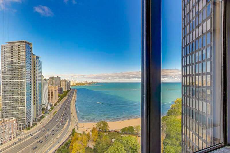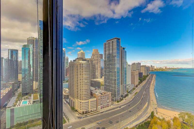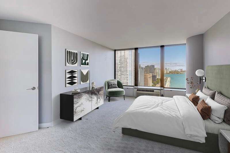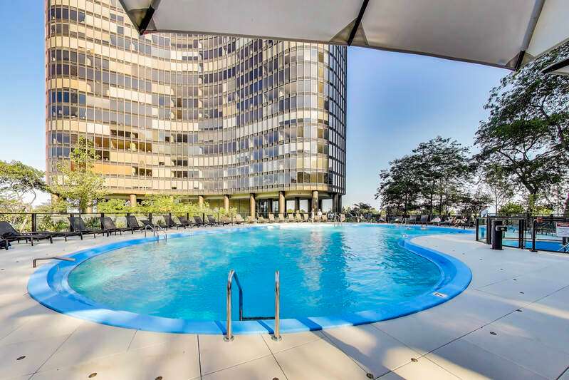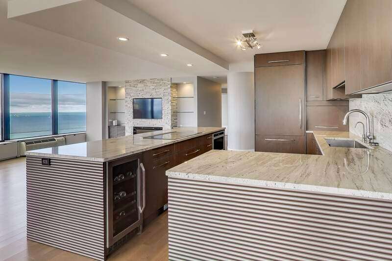 Stunning Corner Residence at Lake Point Tower. Experience breathtaking panoramic views of Chicago's skyline, Soldier Field, the Chicago River, and Lake Michigan from this highly desirable corner home at Lake Point Tower. Completely remodeled in 2014, this exquisite two-bedroom, two-bathroom residence combines timeless luxury with modern sophistication. Enjoy custom Neff cabinetry, granite countertops, a sleek island, and top-of-the-line Thermador appliances. The open living room is perfect for entertaining, featuring a custom stone media wall, Neff cabinetry, and a modern fireplace - all framed by floor-to-ceiling windows overlooking the city and lake. The primary suite offers lake views, a spa-inspired bath with double Carrara marble sinks, and a jetted shower. Lake Point Tower offers world-class amenities including 24-hour door staff, indoor and outdoor pools, fitness center, racquetball court, business center, and a private 2.5-acre park with lagoon, waterfall, grills, and children's play area. Live steps from the Magnificent Mile, Navy Pier, and Ohio Street Beach in one of Chicago's most iconic addresses.
