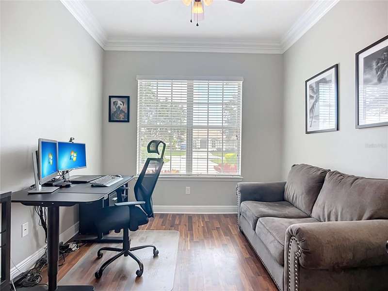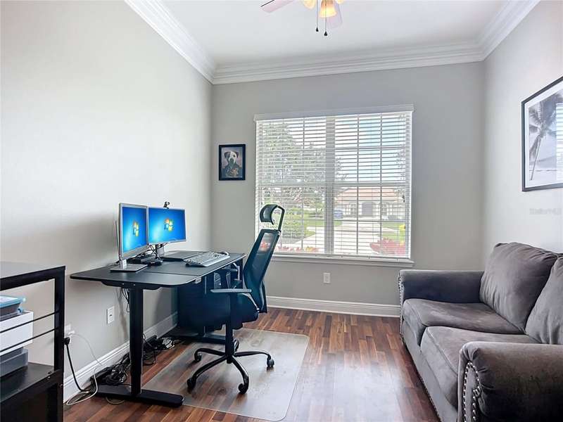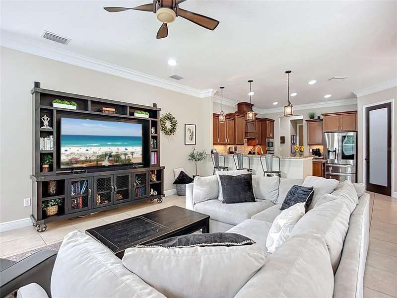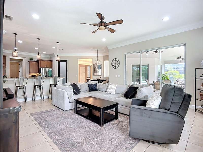 Welcome to Rye Wilderness Estates! Set on a spacious half-acre homesite, this stunning residence offers over 3,100 square feet of living space with four bedrooms, three full bathrooms, a dedicated office, and a versatile bonus room-perfectly designed to meet today's lifestyle with both comfort and style!A gracious foyer introduces the home and opens to a bright dining room, while triple eight-foot sliding glass doors extend the living space outdoors to the expansive lanai and caged pool. With room for both a dining area and outdoor living room, this space is ideal for entertaining. The sparkling saltwater pool with a contemporary water feature with integrated deck jets completes the setting, and recent updates include pool cage bolts and bracket hardware replaced in 2024, ensuring added durability and peace of mind. The rear yard is fenced and is ready for all of your outdoor fun and games!The kitchen serves as the heart of the home, highlighted by a large working island with breakfast bar, granite countertops, stainless steel appliances, a cooktop with vented hood, built-in double oven and microwave, staggered 43-inch upper cabinets, and a spacious walk-in pantry. An adjacent dinette framed by a bay window provides a perfect spot for casual meals.The expansive primary suite is a private retreat, offering a tray ceiling with double crown molding, dual walk-in closets, and a luxurious ensuite bath with a walk-in shower, garden soaking tub, dual vanities, and a makeup counter. The split-bedroom design ensures privacy for guests, making the layout ideal for multi-generational living! Additional highlights include a three-car garage with a bonus bay, effectively providing four-car capacity with ample room for a workshop or storage. The garage also includes a dedicated charging station for electric vehicles. The laundry room is huge with additional workspace built in! Recent upgrades add even more value, including a new AC system in 2024 and an 80-gallon water heater replaced in 2024 and Exterior Repaint as well. Additional upgraded finishes include: trey ceilings, crown molding, decorative lighting. This home truly combines sophistication with everyday comfort.Rye Wilderness Estates is celebrated for its estate-sized lots, low HOA fees, and NO CDD!! Residents enjoy The Wilderness Park, complete with a soccer field, basketball court, dog park, playground, and pavilion-perfect for recreation, neighborhood gatherings, and lasting memories.
