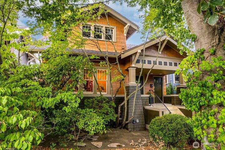 Beautifully renovated 1914 Arts & Crafts home on quiet tree-lined street. Original charm preserved & adorned in (2017/2018) w/new custom cabinetry, Viking/Miele, roof, heating/plumbing & full electrical upgrades + bath renovation (2025). Chef’s kitchen opens to a covered porch leading to a private backyard oasis w/brick planters/fountain; perfect for hosting or relaxing. A block to Rocket Taco, Zeeks, Macrina, Fuel, Hello Robin & local grocer. Ample resident street pkg; nearby shop activity mostly 12–6pm. 2-level/2-bed/2-ba+bonus rms on main & lower + charming upper 1bd/1ba apt (leased, subj. to tenant rights). Enjoy $2K/mo of income, or reconnect all 3-levels at a later date by adding a doorway in the foyer. Ask your broker for #B photos.