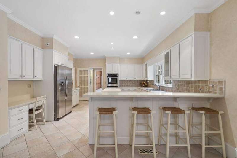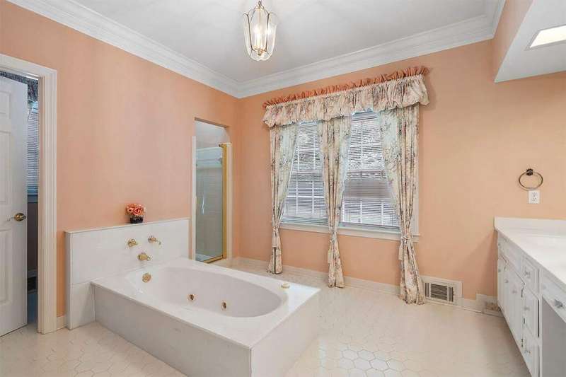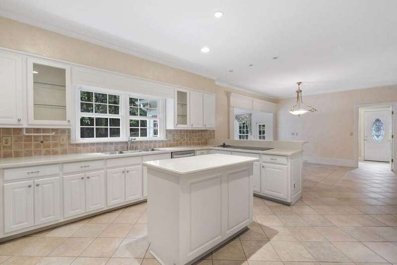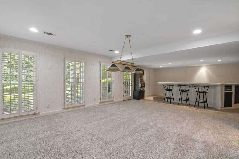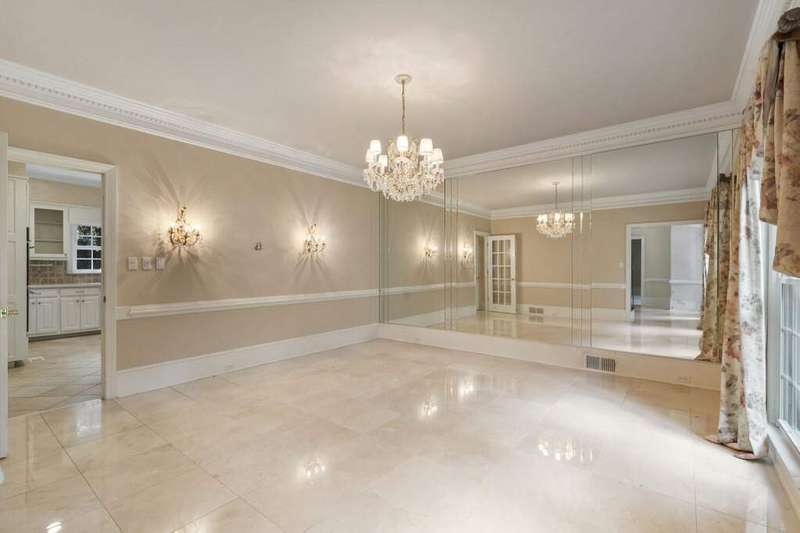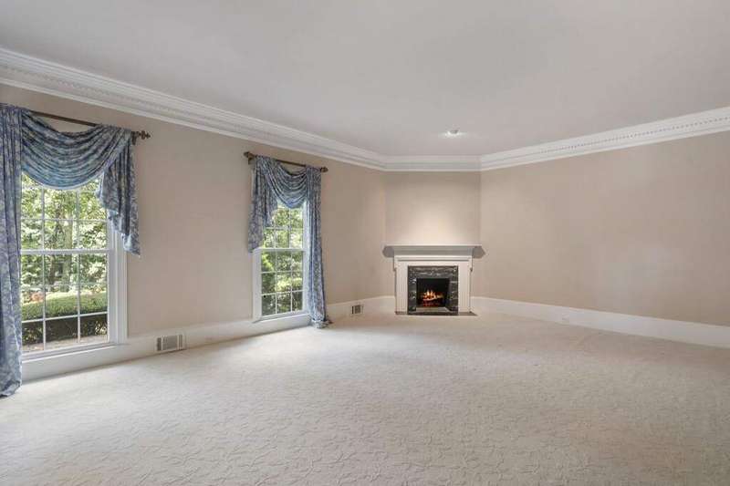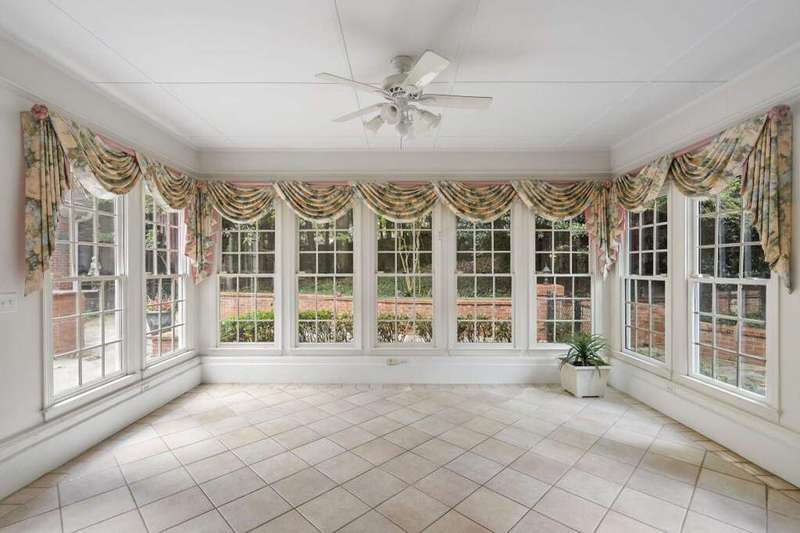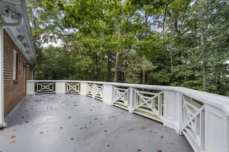 This elegant gated estate rests on 2.23 manicured acres in the heart of Sandy Springs, offering exceptional privacy, architectural sophistication, and an abundance of living space both inside and out. A long, landscaped driveway leads to a grand brick facade with classic columns. The grand double doors welcome you into a breathtaking two-story foyer featuring polished marble floors and a sweeping staircase. To the left, the formal living room invites conversation with its fireplace and abundant natural light, while across the foyer the formal dining room exudes elegance with marble flooring and a mirrored feature wall. The richly paneled den, accented by coffered ceilings and a fireplace, offers a warm and refined space for quiet reading or intimate gatherings. Nearby, a solarium with floor-to-ceiling windows and an antique fountain opens into an expansive media and entertainment room, complete with built-in cabinetry, a retractable awning, surround sound, and dramatic Palladian-style windows that flood the space with light. The heart of the home lies in the gourmet kitchen, with white custom cabinetry, porcelain tile flooring, stainless steel appliances including a built-in steamer, tile backsplash, and off-white Corian countertops. A spacious breakfast room and adjacent sunroom provide stunning views of the backyard, creating a peaceful setting for daily living. The main level also features a large primary suite with dual oversized closets and a private en suite bath, ideal for guests. Upstairs, the luxurious secondary primary suite is a true retreat, highlighted by a lighted double tray ceiling, spa-inspired bath with dual vanities, a jacuzzi tub, and a custom-designed oversized closet. Additional upstairs bedrooms are generously sized and share well-appointed baths, offering comfort and privacy for family and guests. The finished terrace level expands the home's living space with a versatile layout that includes a home office, a full bath, a wet bar, a game area, and direct access to a covered patio. Just off the terrace level, there's ample space to add a custom pool, allowing seamless indoor-outdoor entertaining. On the opposite side of the storage building, there's room for a tennis court or handball court, adding even more recreational possibilities to the estate. Several levels throughout the home and grounds can comfortably host mixed indoor-outdoor gatherings of over 100 people, making it ideal for entertaining on a grand scale. The grounds are equally impressive, featuring brick paver pathways, manicured lawns, classical statues, multiple fountains, and a built-in gas grill-perfect for al fresco entertaining. The guest house features its own three-car garage, providing private accommodations that include a living space with a kitchen, a full bathroom, and a bedroom. This arrangement increases the total garage capacity to five cars. This one-of-a-kind estate offers timeless craftsmanship, thoughtful updates, and premier amenities in one of Sandy Springs' most sought-after neighborhoods.