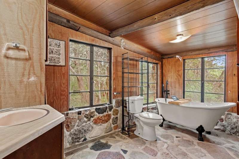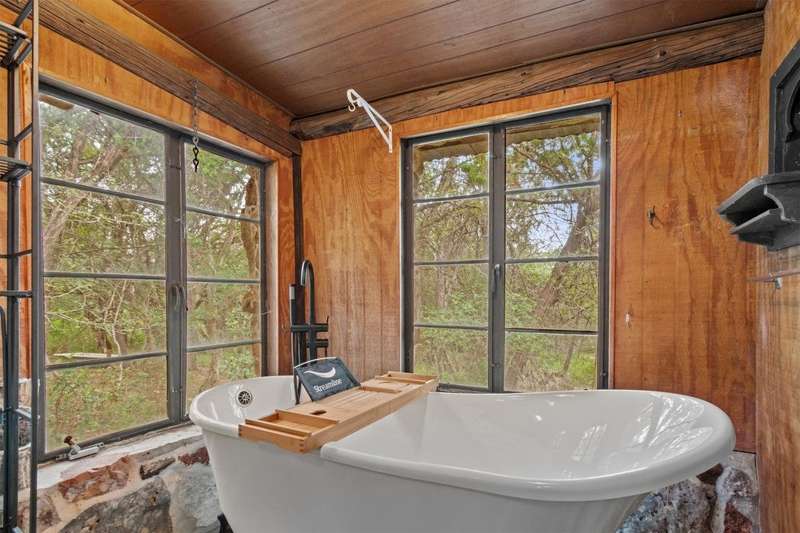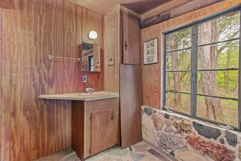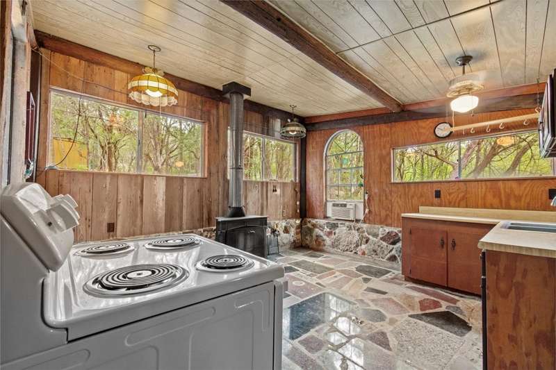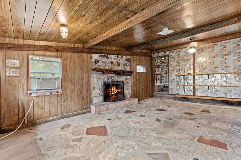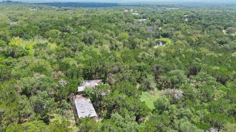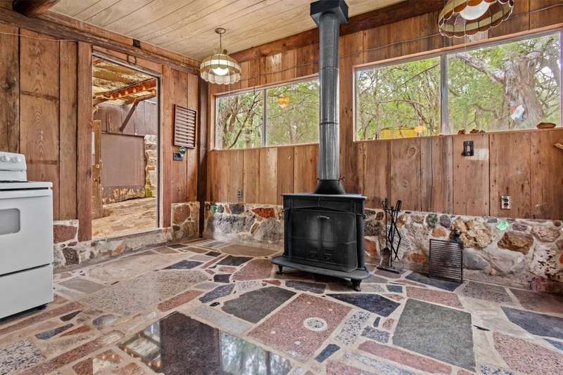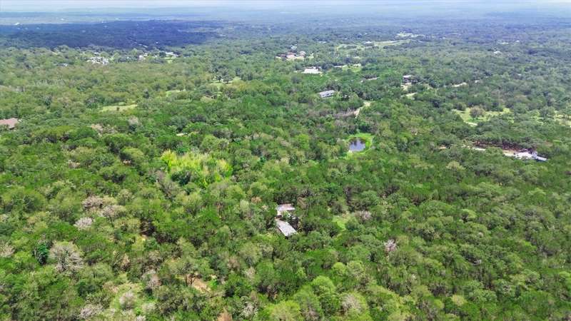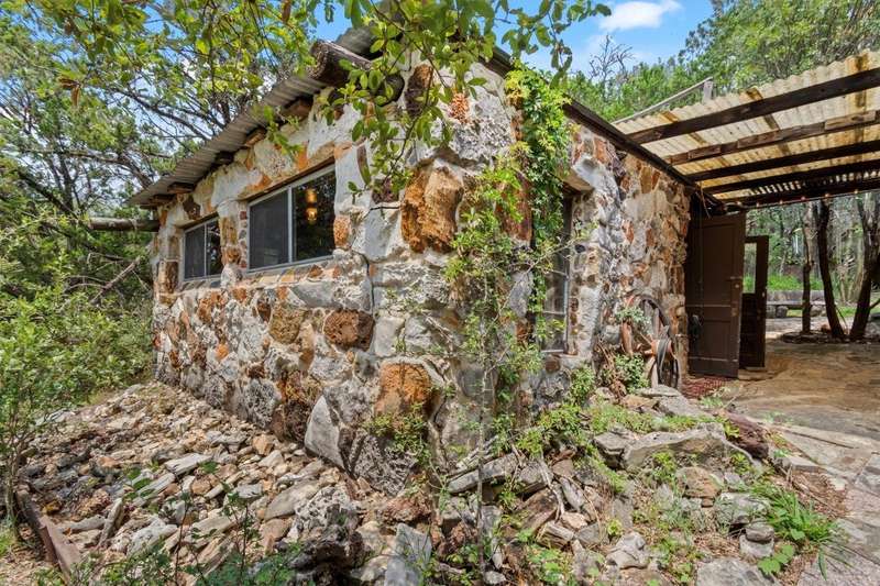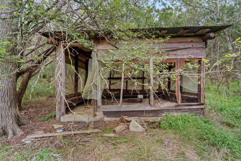 Scenic solitude meets city convenience in the heart of the Hill Country! This 12.027 acre parcel with all utilities, located just 15 minutes from Texas State University and I-35, has limitless potential as a hunter's retreat, event venue, "glampground," tiny home community or whatever you can dream it into being! The front of the property features two entrances that lead to the crown jewel: the rustic, hand-built stone cabin. This unique structure incorporates granite, petrified wood, natural crystals, fossils and stones sourced from throughout Texas. Its two buildings connected by a breezeway feature stone fireplaces, a vintage Franklin heating stove, window AC, full bathroom with a new freestanding tub and full kitchen. Spend days exploring the native flora and fauna and evenings soaking up the stars from the built-in outdoor seating or rooftop deck. Past the cabin, the lot slopes down towards dry creek and shares a small pond with the neighboring lot. Included with the property are multiple sheds, a small screened-in pavilion and a foundation for a mobile home. This special property truly must be seen to be understood. Escape the noise and bustle of the city at your own Hill Country haven while keeping its comforts a short drive away!