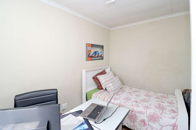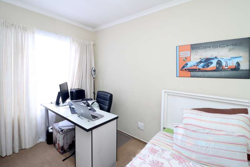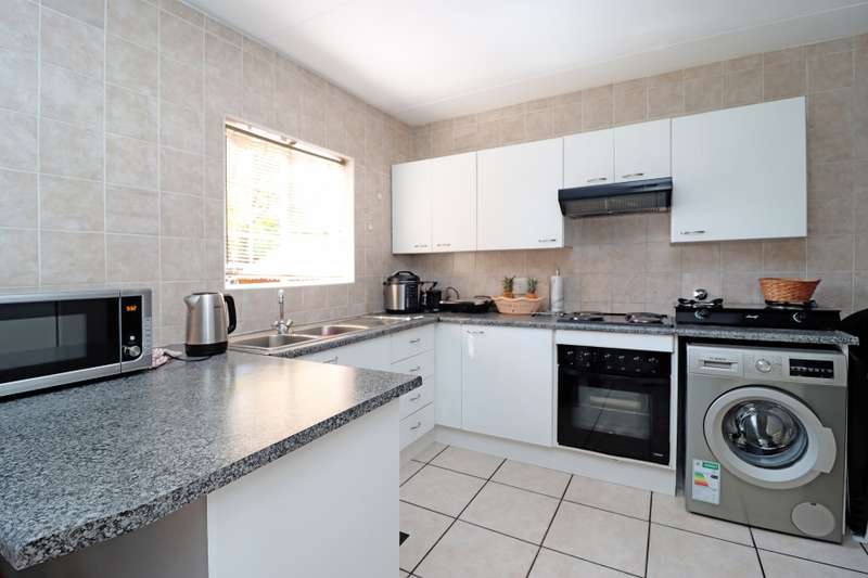Stunning freestanding townhouse is secure guarded complex with low levies! 2 good sized North facing bedrooms with a full bathroom and a spacious landing (fits a desk and linen cupboard upstairs. Open plan sunny lounge and dining room with spacious eat in kitchen - space of 2 appliances. Wrap around garden - pet friendly with 2 covered parking's and lots of visitor parking