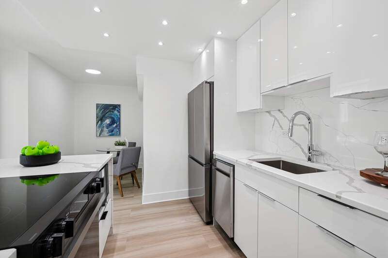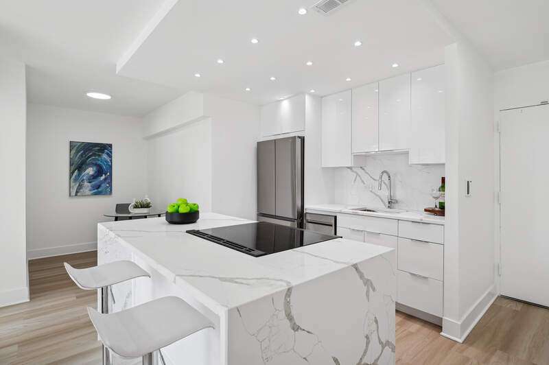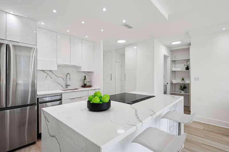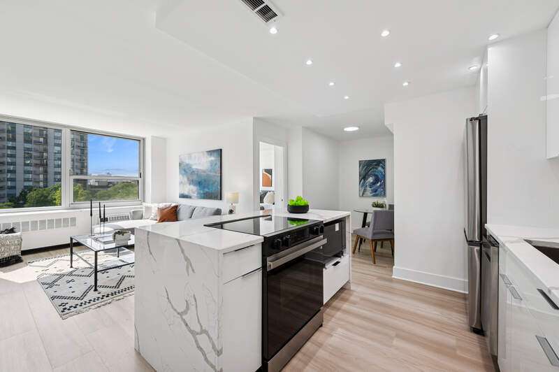 Stunning New 2 Bed 1 Bath home w/Spectacular City & Sunset Views. Beautiful Solid Surface floors throughout. Open Kitchen w/Flat Panel White Cabinetry, High End Appliances, Quartz Counters, Back Splash and Waterfall Island w/Seating. The Huge Primary Bedroom features a Walk-In closet. The Bathroom has a Luxurious Walk-in with Rain Shower Head, Handheld Marble Tile. The Second Bedroom is configured to fit today's lifestyle and your needs as a guest bedroom or home office Building has Newer Windows, a New Roof Top Deck and New Lobby. All this in a Full Amenity Bldg./Community w/24/7 Door Staff, 2 Olympic Pools, 4 Court Tennis & Pickle Ball (additional fees). Walk to the Lake, Lincoln Park, Old Town, Michigan Ave. Public transit at your door or leased indoor pkg. available(maybe a wait list).