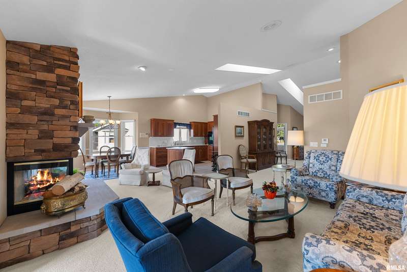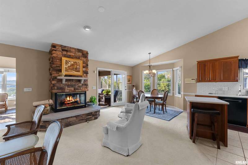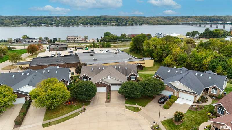 Great opportunity! These attached single family homes are rarely for sale! Breathtaking Mississippi River views the moment you walk in the front door, continue enjoying the view from your 4-season room and screened in porch! Open concept floor plan, great for entertaining! Formal and informal dining areas. 4 Skylights, vaulted ceilings. Stone fireplace is the focal point of the great room. The beautifully designed kitchen features granite counter tops, a functional layout, island ideal for meal prep and casual dining. All appliances included. Has everything the home cook needs within easy reach! 1st floor laundry room includes utility sink and drop-down folding table. Primary bedroom has large bathroom and walk-in closet. Finished basement with rec room, walk-out to covered patio area with additional river views! 3rd bedroom with day light windows and full bath + lots of storage space.
