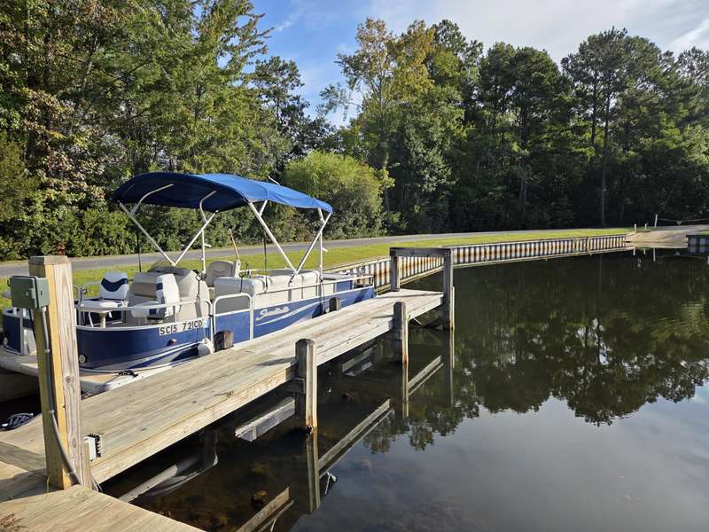Beautiful custom-built home on the #12 fairway of The Players Course in the scenic gated, waterside community of Wyboo Plantation. This home comes w/ boat slip #20 in Lake Arbu marina, providing easy Lake Marion access for all your watersport activities. Curb appeal abounds w/ the spacious front porch, perfect for relaxing & enjoying Lake Marion views across the street or Pine Lake views behind the home, across the fairway. Inside, you'll find 3BR/2BA, plus a dedicated office; fresh paint throughout; new laminate flooring throughout; vaulted GR w/ cozy gas log FP; open kitchen w/ sold surface countertops & attractive backsplash; spacious owners suite w/ oversized closet, jacuzzi tub, separate shower & dual sinks w/ quartz countertops; enclosed 3 season sunroom overlooking the golf course; 24 x 26 garage; 2021 roof & 2022 HVAC. Wyboo Plantation offers endless activities like swimming, golfing, tennis, pickleball, kayaking, fishing, boating, biking, gardening & much more!