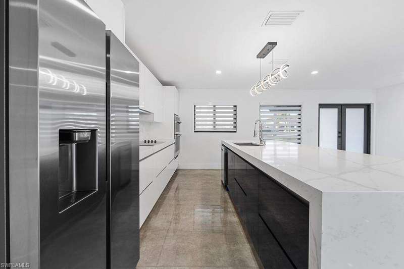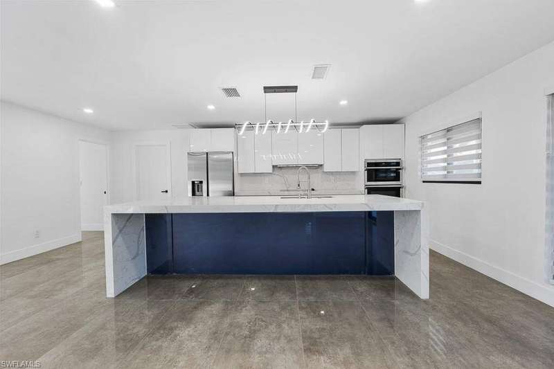 Welcome to 112 Bayshore Drive, a beautifully renovated single-family home located in one of Cape Coral's most desirable neighborhoods. This spacious three-bedroom, two-bathroom residence offers 1,681 square feet of living space and features a split-bedroom floor plan for added privacy and comfort. Inside, you'll find a bright and open great room layout with modern finishes throughout. The home has been thoughtfully updated with new flooring, fresh paint, and contemporary fixtures. The kitchen is equipped with a sleek cooktop, wall oven, microwave, dishwasher, and plenty of built-in cabinetry, making it ideal for everyday living and entertaining. Step outside and enjoy the ultimate Florida lifestyle with your own private. The backyard provides ample space for relaxing or hosting guests, and the southern rear exposure ensures all-day sunshine by the pool. Additional features include a two-car attached garage, laundry area in the garage, ceiling fans, and central electric cooling. This home is also pet-friendly with approval, making it perfect for the whole family. Located just minutes from the Cape Coral Yacht Club and Cape Harbour, this property offers convenient access to waterfront dining, boating, and entertainment. It's also close to shopping, restaurants, and provides easy access to Cape Coral Parkway and the Cape Coral Bridge for quick trips to Fort Myers and the nearby beaches.