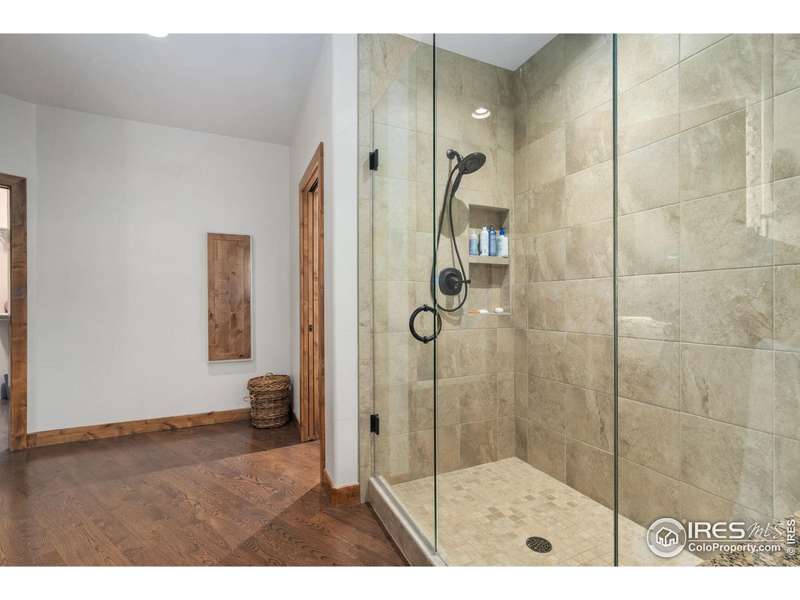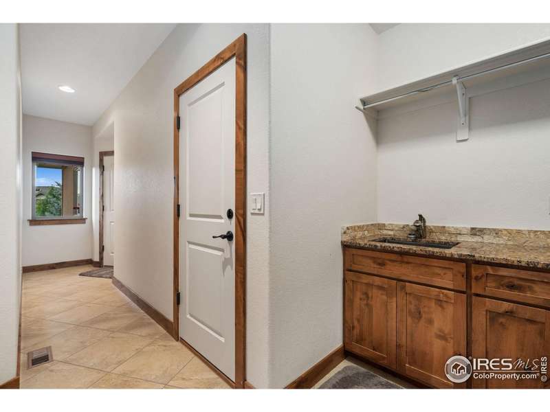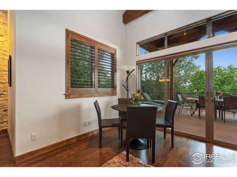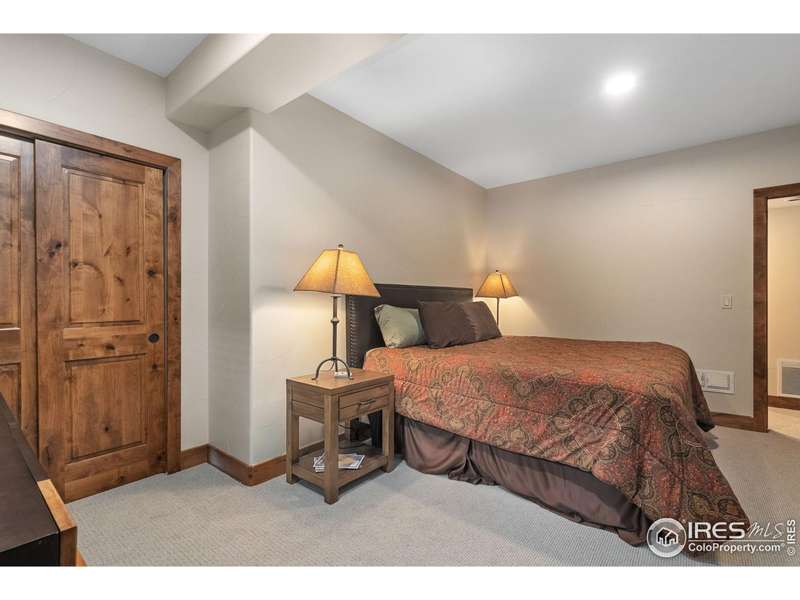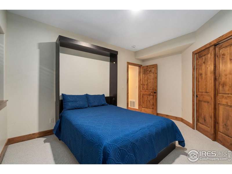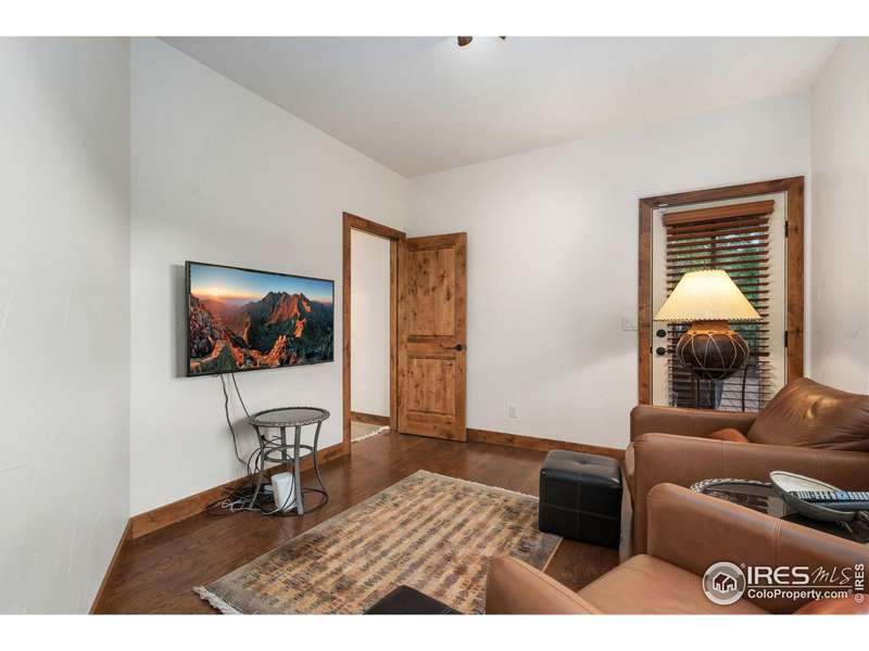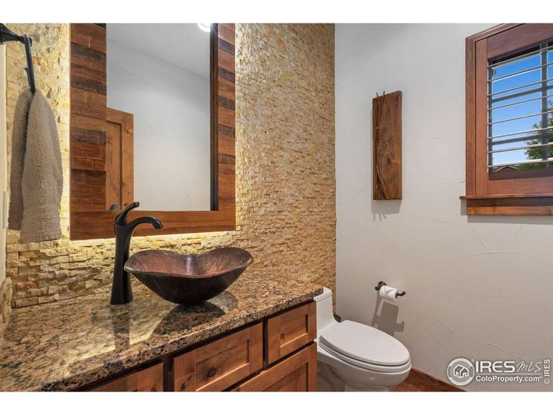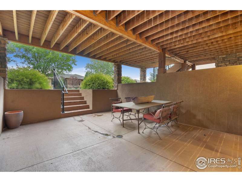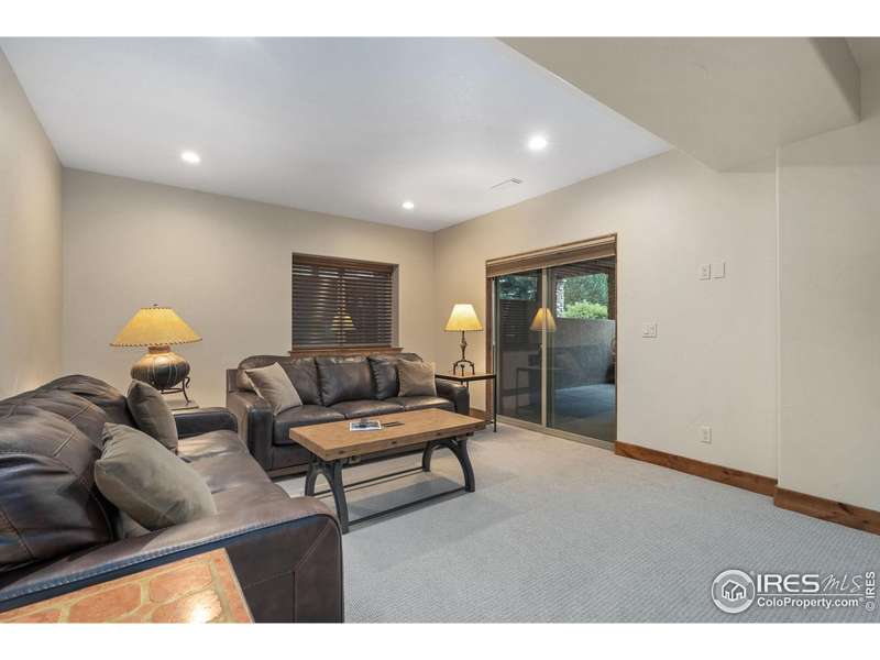 This beautifully crafted 4-bedroom home blends timeless architecture with high-end finishes. A covered front porch is ideal to enjoy mountain views. The floor-to-ceiling dual-sided stone fireplace separates the living rm from the spacious kitchen + dining areas. The gourmet kitchen features Thermador appliances, including a 5-burner range, convection oven, microwave, and refrigerator, with a tall eating bar ideal for casual dining +easy access to covered deck w auto shade. The primary suite offers spa-like amenities w/ dual glass vessel sinks, backlit mirrors, and walk-in closet. Additional main-level office / TV room adds flexibility, while laundry area has custom cabinetry, sink, +closet. Beautiful steel rod railing leads to walkout lower level w/ 3 bedrooms, full bath, family room w/wet bar, a workout area, + extra storage. One bedroom includes a built-in Murphy bed. The side-entry heated two-car garage offers bonus space currently used as a rec/sports area, with potential for a third bay or studio... 265 sq ft. Lot backs to private open space, but close to trails and Boedecker Lake. New carpet + paint and some lighting in lower level, new Lennox furnace installed 2024, new smoke alarms, radon mitigation complete, Pre-inspected and 5 year Roof Cert in place