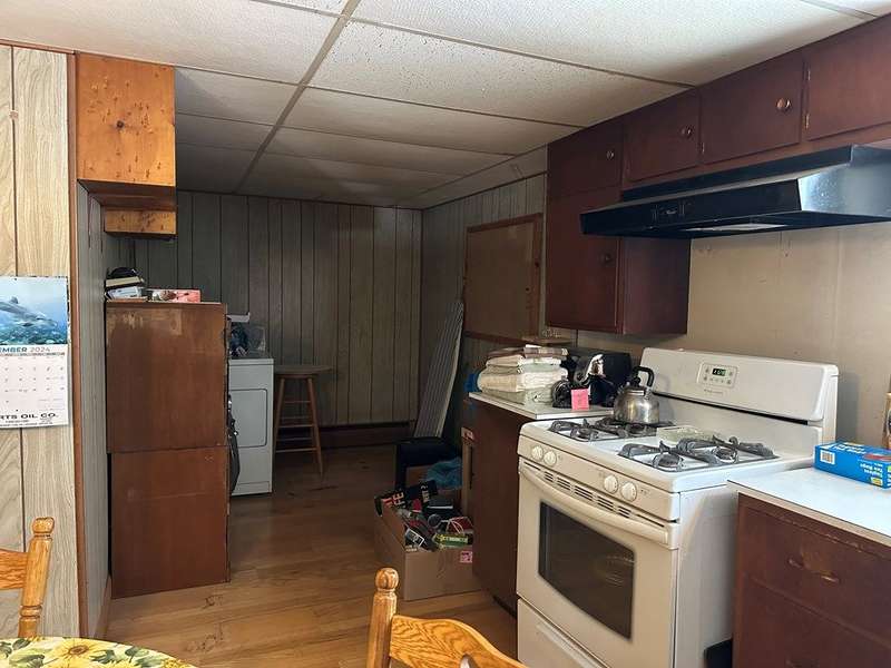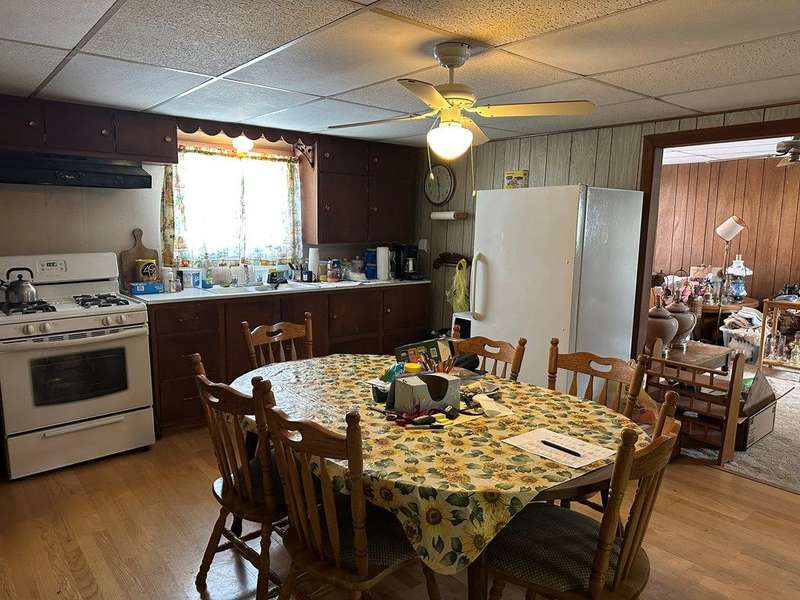 Charming 1 1/2-Story Home with Expansive Garage, Workshop, and Streamside Views. Nestled on a level lot, this charming 1 1/2-story older home offers a perfect blend of vintage character and modern convenience. Featuring 3 spacious bedrooms on the upper floor, the home provides a cozy and inviting atmosphere throughout. The main floor includes a well-sized living room, a utility room, and a combined kitchen/dining area, ideal for family gatherings or entertaining. Outside, enjoy the benefits of a 2-car, 2-story oversized garage, complete with ample workshop space for all your hobbies and projects. A serene outdoor pavilion adds to the appeal of the backyard, which also boasts a large side yard bordered by a peaceful stream, creating a picturesque setting.
