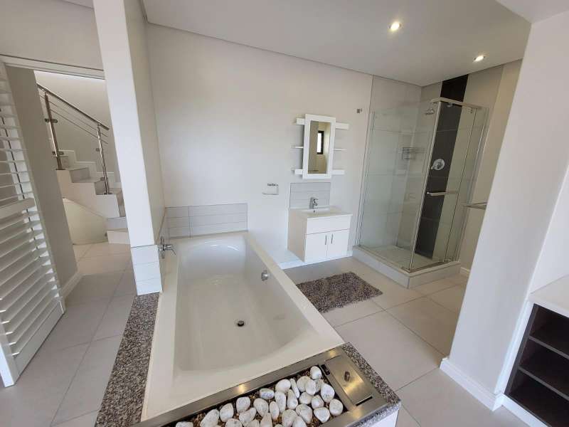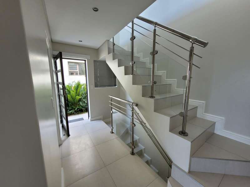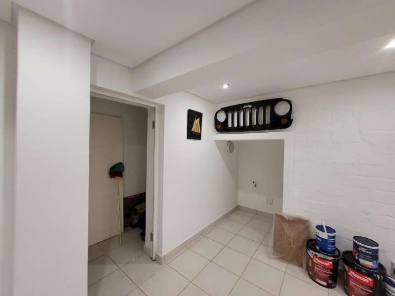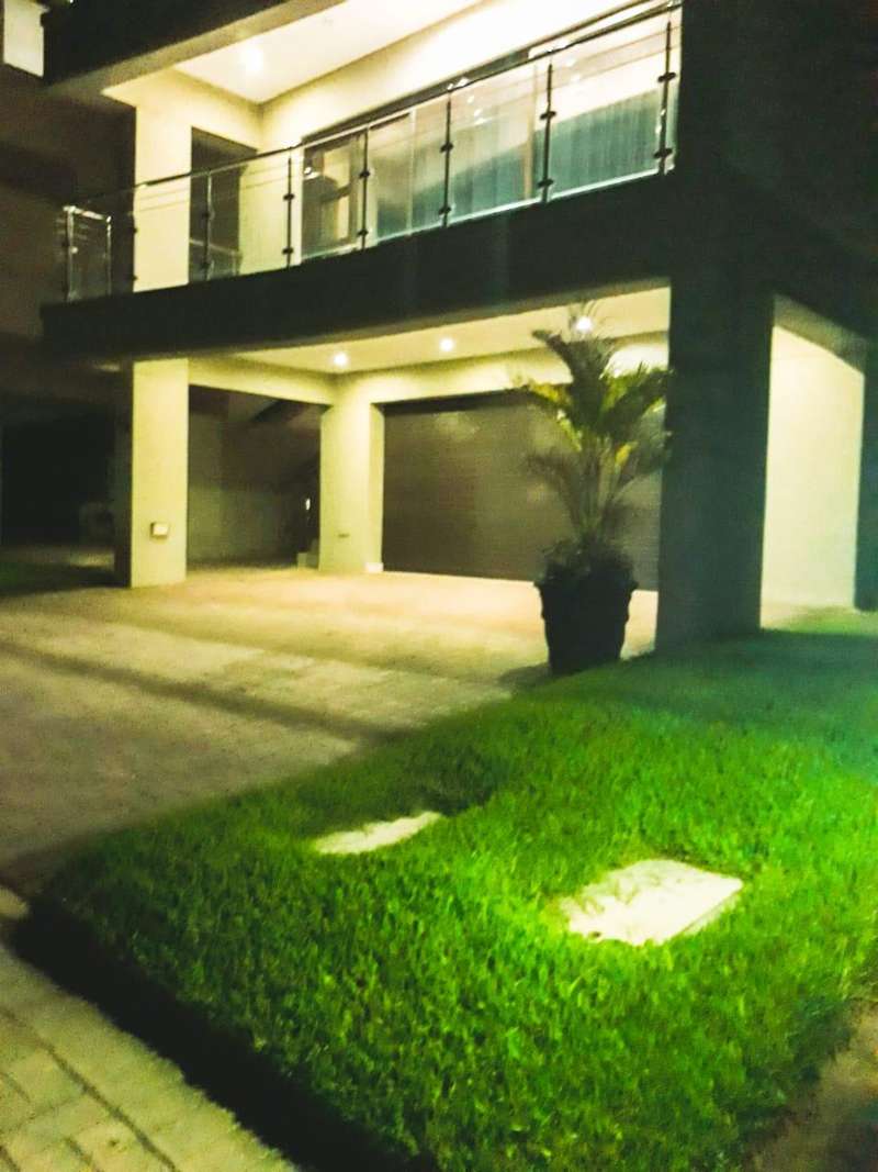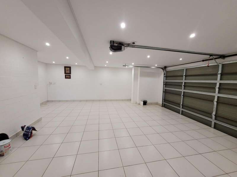 Downstairs is the double garage/ used as a mancave with tv points. Separate laundry nook. Additional there are clear view burglar bars on all the windows and a security door on the main door for extra security. Solar panel and solar geyser provided for all homes. There is a beautiful, landscaped garden which needs little maintenance. Only 15mins drive to the airport and IDZ