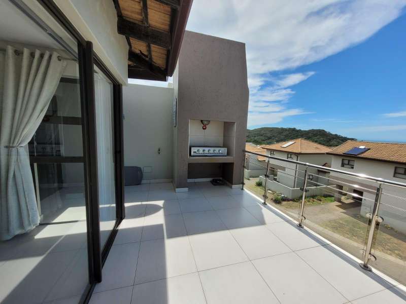 This exquisite 2 bedroom 2 bathroom home is situated in Coral Beach estate, within walking distance to the beach. The beautifully designed open-plan living areas are spacious and provide an easy living interactive social space to live in and entertain. With an additional gas fireplace for the chilly evenings. Modern fitted kitchen with granite tops, gas hob and a built-in oven, double door fridge. With ample workspace. Sliders leading out to a spacious balcony with built in gas braai to magnificent ocean views.