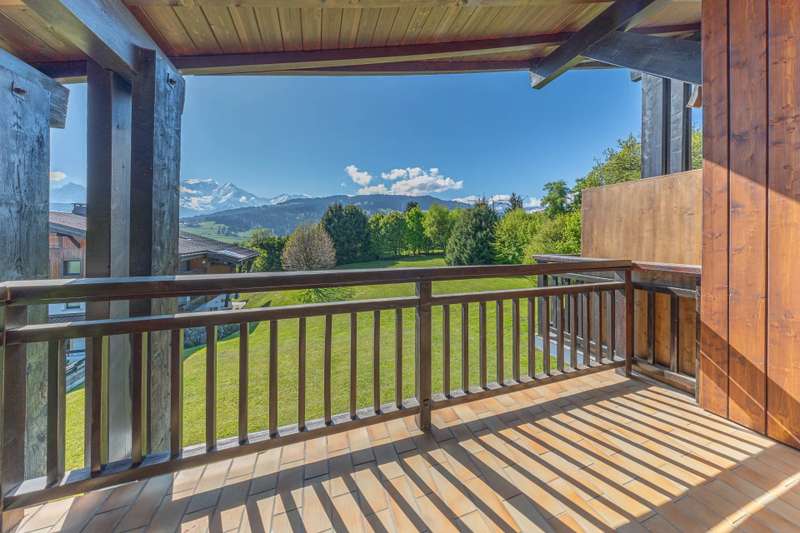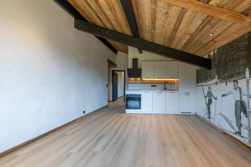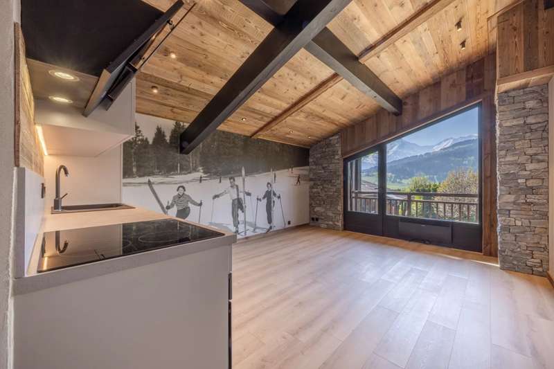 Situated on the second and top floor of a carefully maintained condominium, this fully renovated flat enjoys a privileged location in Combloux, right on the border with Demi-Quartier, with quick access to Megève. With a surface area of 49 m² and high cathedral ceilings, it comprises an entrance hall with storage space, a bright living room with open-plan kitchen, opening onto a south-east-facing balcony with stunning views of Mont Blanc. The sleeping area comprises a large double bedroom and a smaller bedroom, both with access to a second balcony, a shower room and a separate toilet. Underground parking, cellar and ski locker.