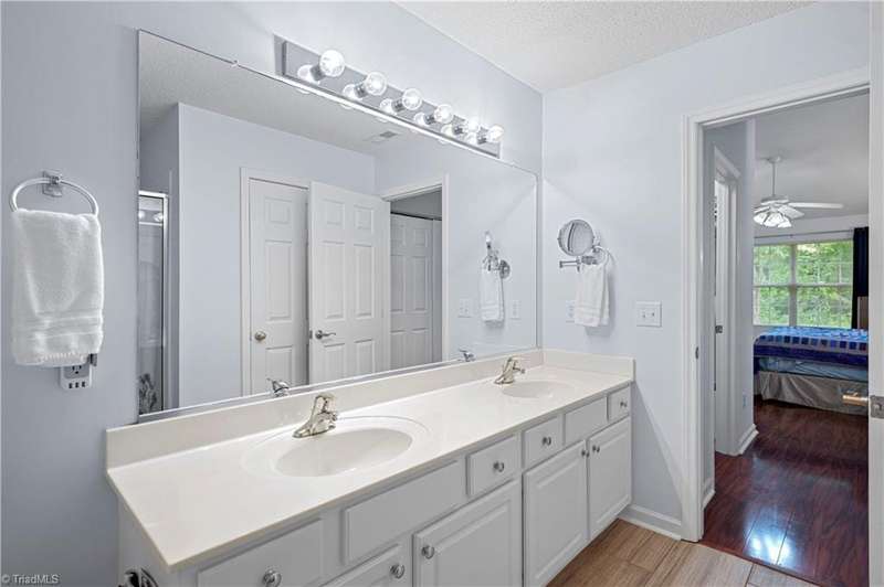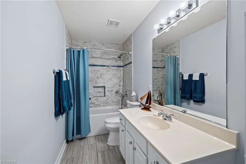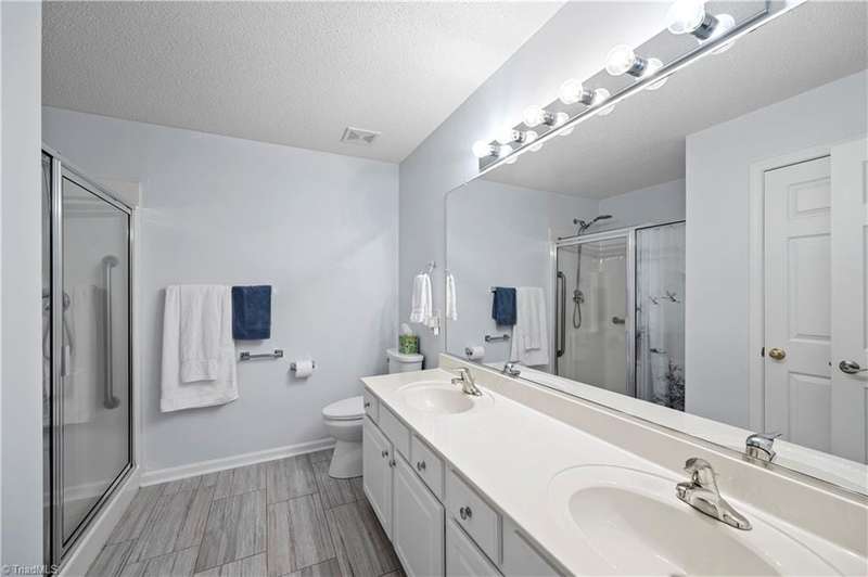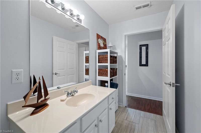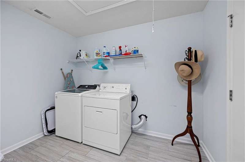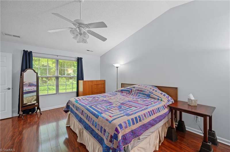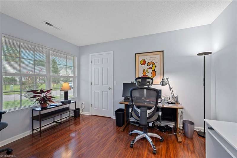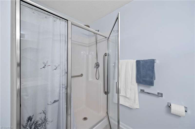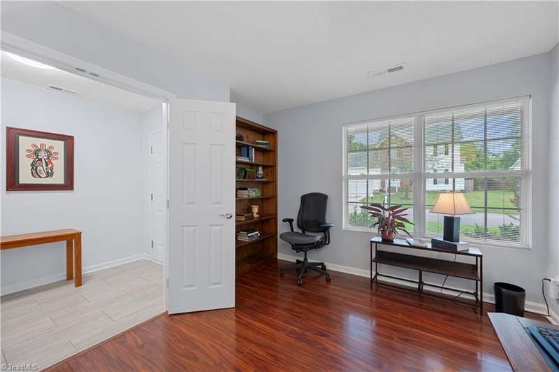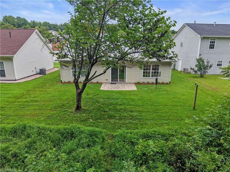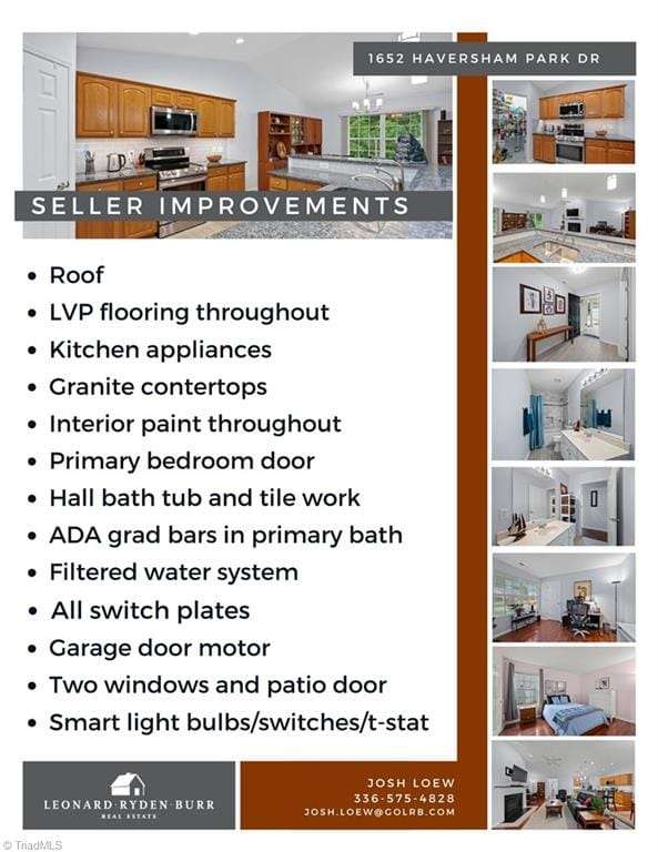 Step into this beautifully updated 3BR/2BA ranch in Olivers Crossing, offering nearly 1,800 sq ft of comfortable, single-level living. Sunlight fills the open floor plan with vaulted ceilings and a cozy fireplace, creating a warm, inviting atmosphere. The primary suite is thoughtfully separated, while the guest bedroom, office, and full bath sit on the opposite side of the home, offering privacy and quiet. Recent updates include a new roof (2024), flooring throughout, fresh paint, granite kitchen countertops and mantel, stainless steel appliances, lighting, and a filtered water system. Bathrooms are refreshed, with ADA compliant hardware in the primary and new tile and soaking tub in the hall bath. Two new windows, a patio door, smart switches/thermostat, and a new garage motor add convenience. Enjoy the tiled back patio overlooking a serene, level, wooded lot - all just minutes from shopping, dining, schools, and I-40. Schedule your showing today!