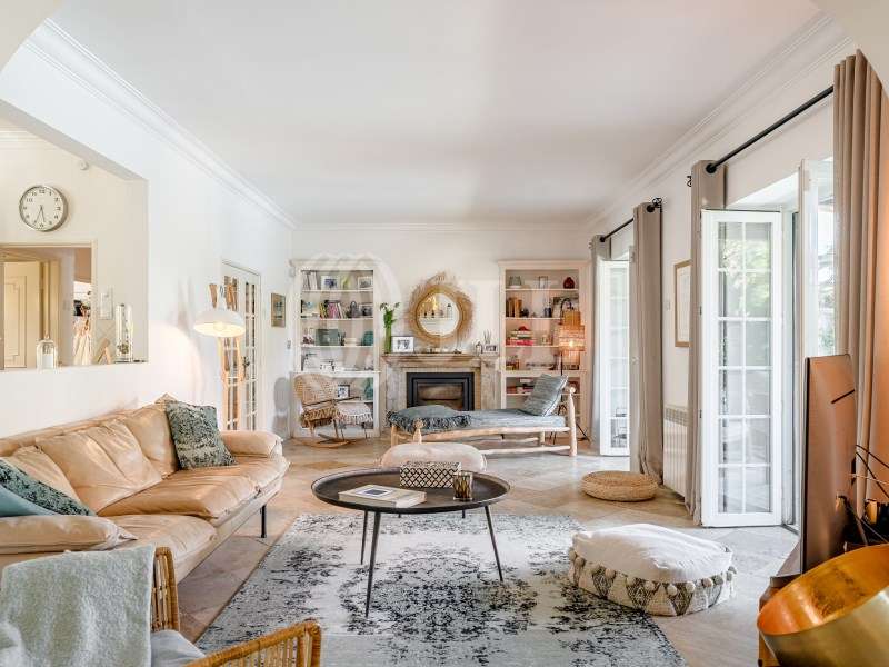 O CORAÇÃO DA MINHA CASA É A COZINHA. Moradia T7 com 332 m² de área bruta de construção, com jardim, piscina e garagem em box, implantada num lote de 840 m² no centro de Cascais. A moradia desenvolve-se em dois pisos: piso térreo com hall de entrada, escritório, casa de banho social, sala de estar com recuperador de calor, sala de jantar com lareira e acesso ao alpendre (equipado com toldos retrácteis elétricos), cozinha equipada com zona de refeições e despensa, roupeiro para têxteis de casa, master suite com roupeiros e lareira com acesso ao jardim, e uma suite com roupeiros. Piso superior com dois quartos com roupeiros que partilham uma casa de banho, master suite com closet, quarto adicional com roupeiros, mezzanine luminosa e área de arrumação. Moradia com lavandaria, garagem box para um veículo, estacionamento exterior, jardim e piscina com total privacidade, aquecimento central e sistema de alarme. Beneficia de uma localização privilegiada no Centro Histórico de Cascais, walking distance da Baía de Cascais, Hipódromo e Parque Marechal Carmona, a 8 minutos da Marina de Cascais e a 10 minutos do Mercado da Vila. A moradia situa-se a 7 minutos driving distance do Kings College School, a 9 minutos da Escola Salesiana do Estoril, Santo António International School e Colégio Amor de Deus. A 9 minutos de carro do Golf da Quinta da Marinha, Oitavos Dunes e Centro Hípico, e a 10 minutos do Golf do Estoril e Clube de Ténis do Estoril. Na mesma proximidade encontram-se o Hospital CUF Cascais e Hospital de Cascais. Com excelentes acessos, a propriedade localiza-se a 9 minutos da entrada para a A5, a 3 minutos da Avenida Marginal, a 18 minutos das escolas internacionais St. Julian's School, TASIS e CAISL, a 20 minutos de Sintra e a apenas 30 minutos de Lisboa e do Aeroporto Humberto Delgado. Categoria Energética: D #ref:89425