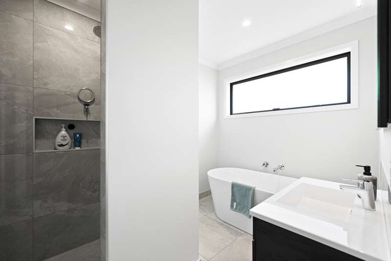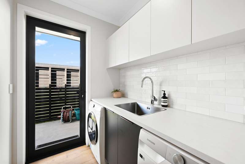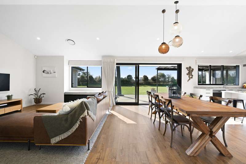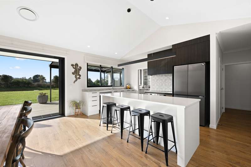 At the heart of the home, cathedral ceilings frame the sun-filled open-plan family, dining, and kitchen zone. The kitchen and scullery make nourishing your family and entertaining guests a breeze, with a double oven, induction cooktop and loads of storage and bench space. A second lounge provides a quiet escape, while an office nook caters for modern work-from-home living.