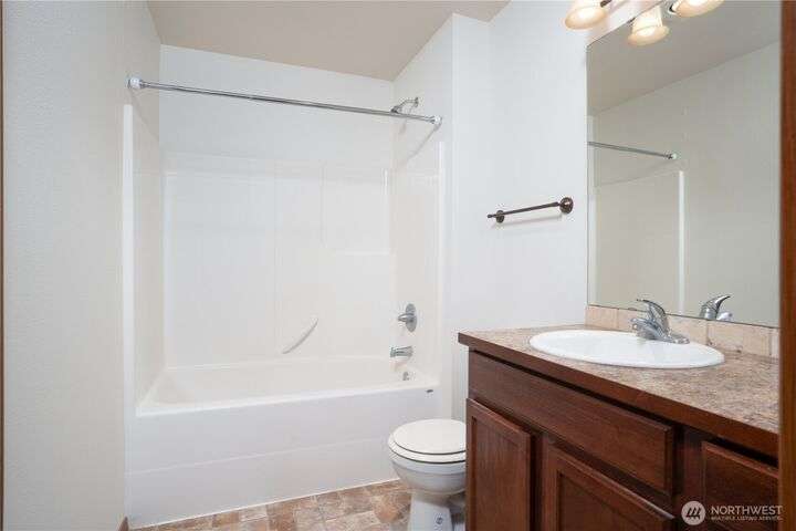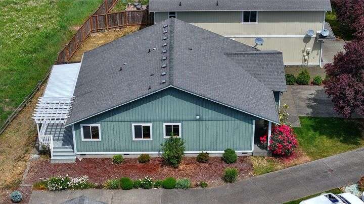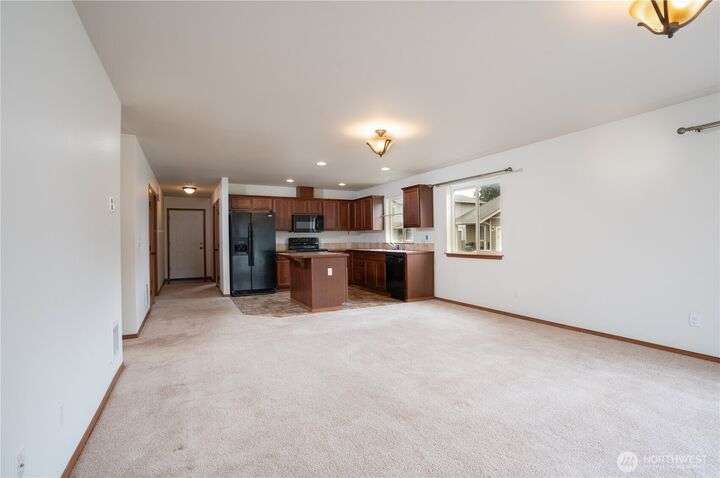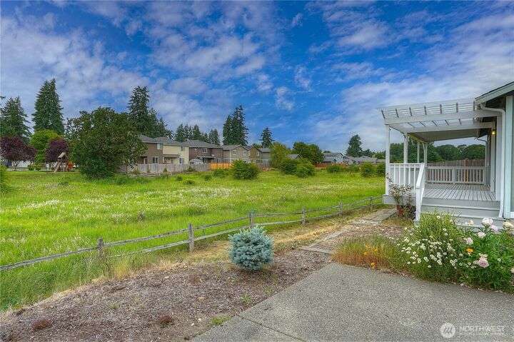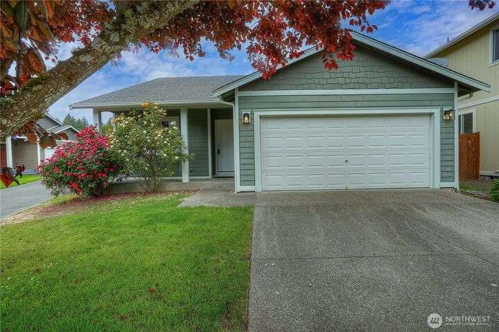 From your own partially covered back patio enjoy watching birds in the open space behind this ready to move in Rambler with open great room open concept living, dining, kitchen with eating space, 3 bedrooms, 2 full baths, utility room & two car garage...Pre-listing Inspection work completed in crawlspace, freshly painted throughout, carpets cleaned & ready for move-in. There is a basketball court & small play ground & lots of food shopping fast food locations nearby...easy access to the JBLM East Gate Entrance...!
