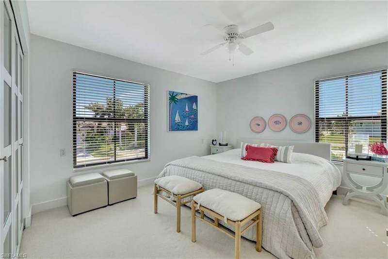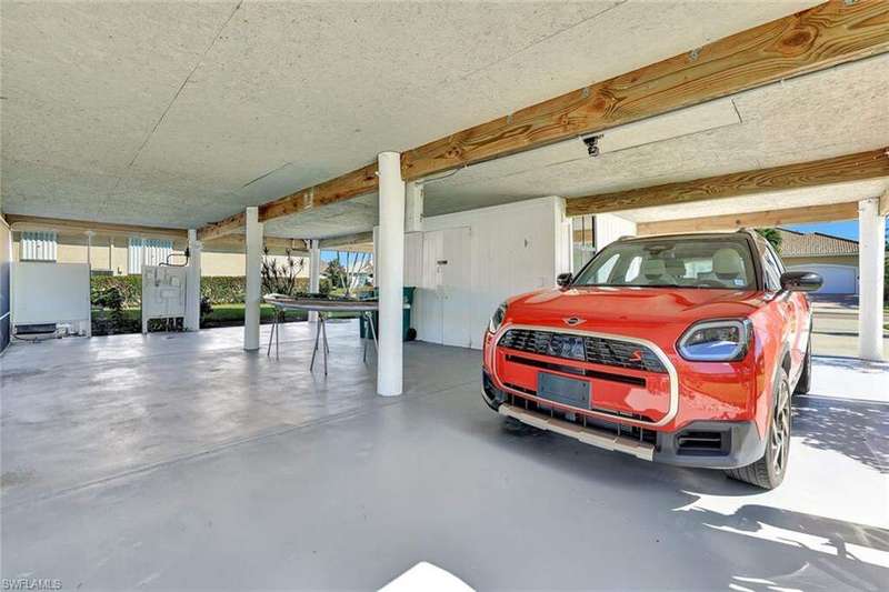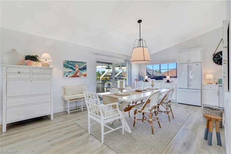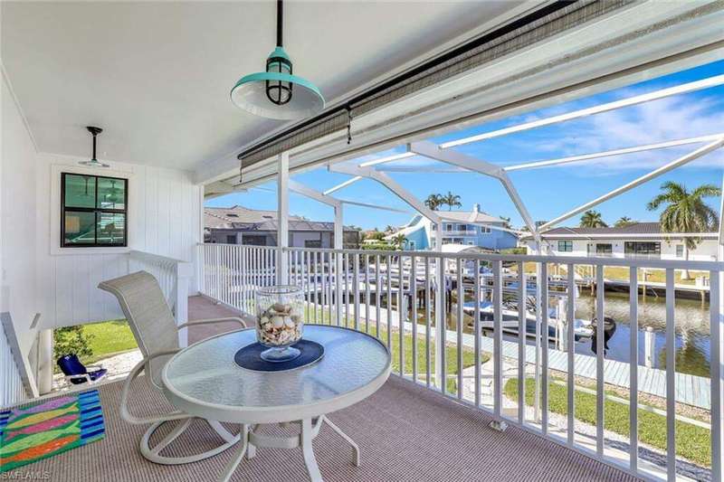 Enjoy waterfront living in this beautifully updated 2-bedroom plus den, 2-bath home on Marco Island. Located on an indirect Gulf-access canal with 100' on the water, the property features a private dock with boat lift, perfect for boating and fishing. Relax by the screened-in pool or take in the water views from the upper-level lanai. The light and airy interior offers an open floor plan with coastal-inspired finishes. The updated kitchen includes shaker cabinetry, solid surface counters, tile backsplash, farmhouse sink, and modern appliances. The den provides flexible space for a home office or guest room, while the primary suite offers comfort and style. Designed for the Florida lifestyle, this home offers multiple outdoor living spaces, impact windows, and a beautifully landscaped yard. Ideally located near Marco Island's beaches, shopping, and dining.