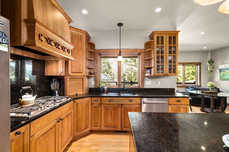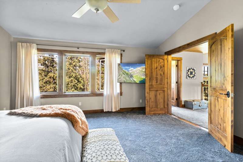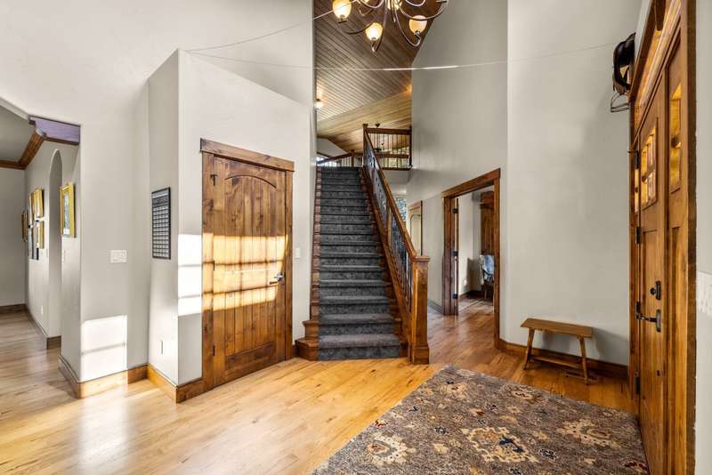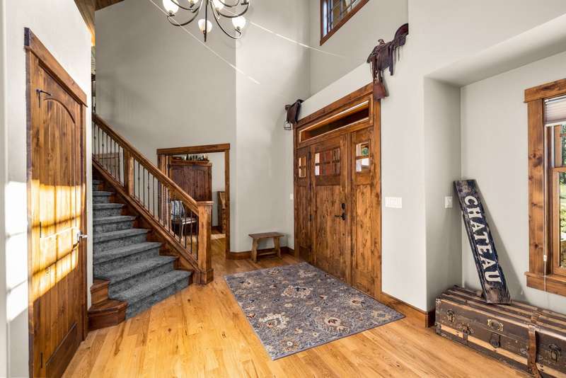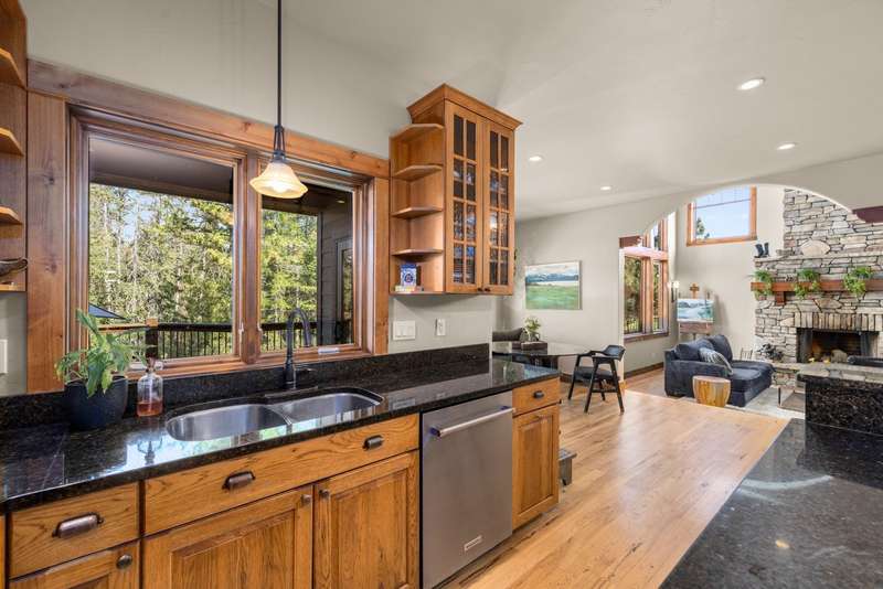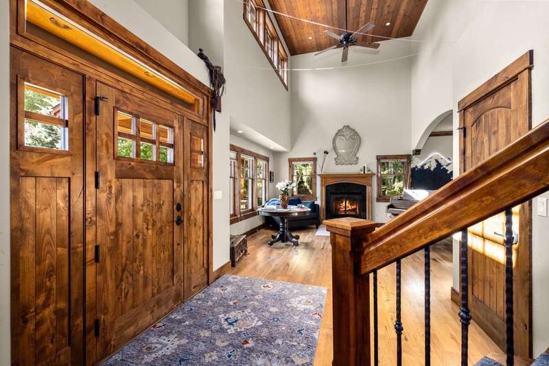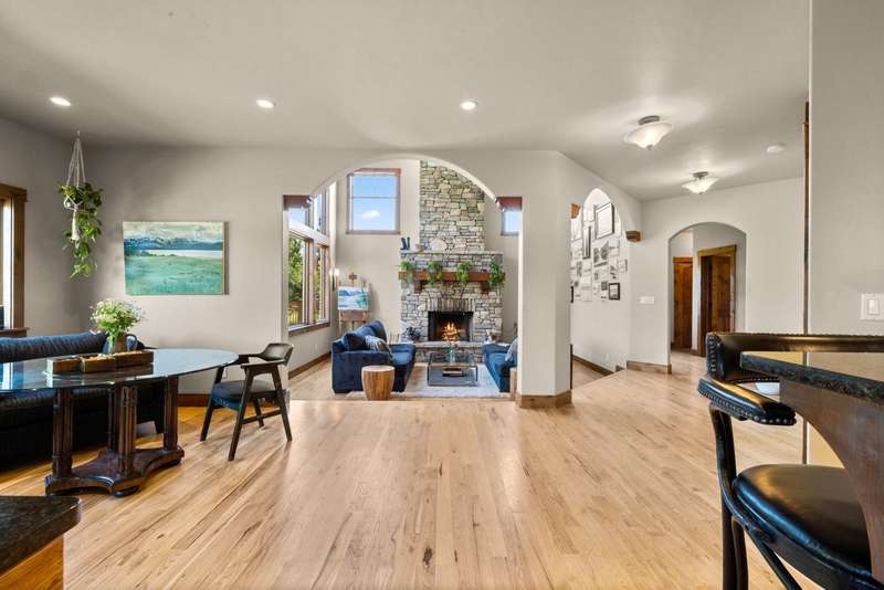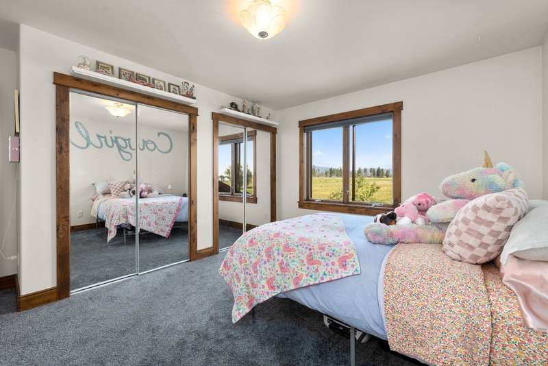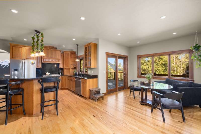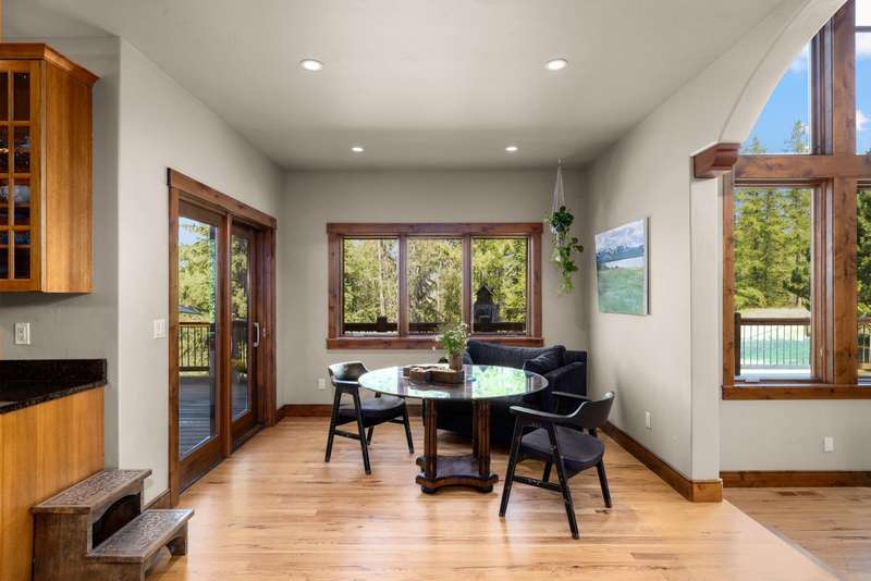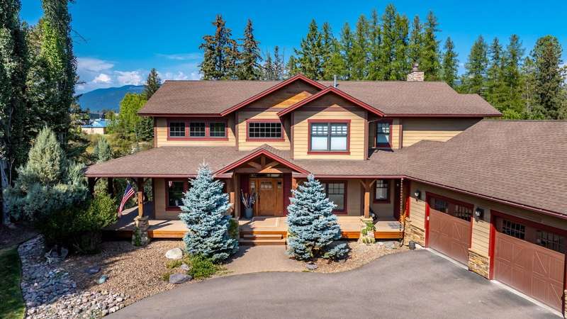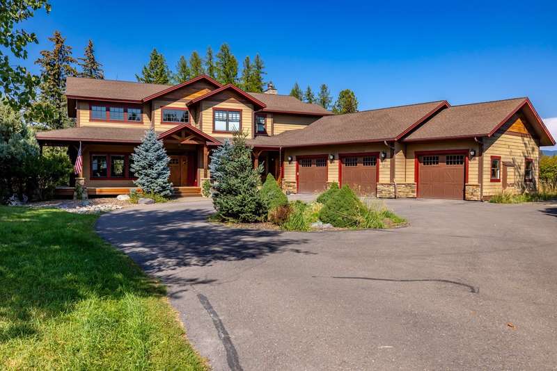 Creekwood Comfort! Experience the best of Whitefish in this beautifully crafted home, ideally located just minutes from downtown, Whitefish Mountain Resort, Whitefish Lake, and only 30 minutes from Glacier National Park. This spacious 6-bedroom, 4-bath home sits on nearly an acre in the sought-after Creekwood neighborhood. Large windows fill the home with natural light, offering stunning views of the surrounding forest, mountains, and open meadow. The inviting family room showcases a vaulted ceiling, a two-story stone fireplace, and warm wood detailing. Hickory hardwood floors run throughout the main level, complemented by two fireplaces, adding to the charm and warmth. The fully finished walk-out basement features two bedrooms, a full bathroom, and a versatile flex space, ideal for a guest suite, home gym, office, or media room. The generous back deck and spacious backyard provide peaceful privacy, perfect for entertaining or relaxing, all while being conveniently located in town. The oversized 3-car garage provides ample storage for all your gear, with additional space for RV or boat parking. Where comfort meets location, and the views steal the show!