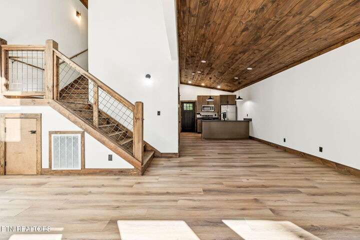 Lake Lovers - Escape to Your Dream Cabin Retreat, Steps to the Lake! Imagine waking up to the sound of singing birds, stepping onto your private deck with a steaming cup of coffee, and feeling as though you're perched in the trees. This newly built contemporary cabin is nestled on a wooded lot in Big Creek, offering the perfect blend of modern comfort and peaceful nature. With its open floor plan, vaulted ceilings, and warm natural light, this cabin invites you to slow down and savor every moment. Two spacious king suites provide the perfect retreat for family and friends, while the stylish kitchen—complete with granite countertops, stainless steel appliances, and luxury vinyl flooring—makes entertaining a joy. Evenings are made for relaxing on the deck, watching the sun filter through the trees, and feeling the calm of your own private sanctuary. Whether you're dreaming of a romantic getaway, a short term or long-term rental investment, a family escape, or a forever home near the water, this cabin offers the ideal setting to create lasting memories. Want more room to dream? Consider the two adjacent properties as well—689 and 733 Country Oaks Lane are also for sale, 733 offers lakefront living with a dock permit already in place, giving you the ultimate lake life experience or investment portfolio. **Video shows all three properties, only 733 Country Oaks Lane has lake access, stairs and dock permit.