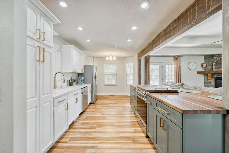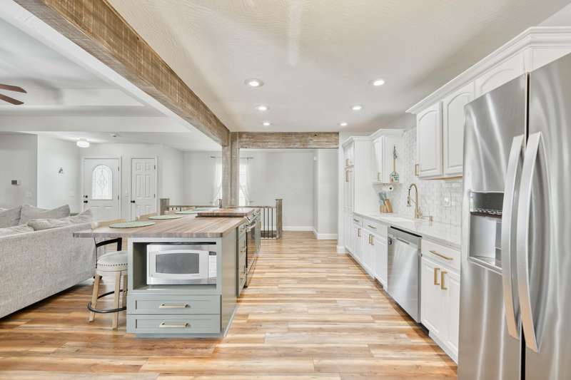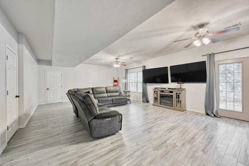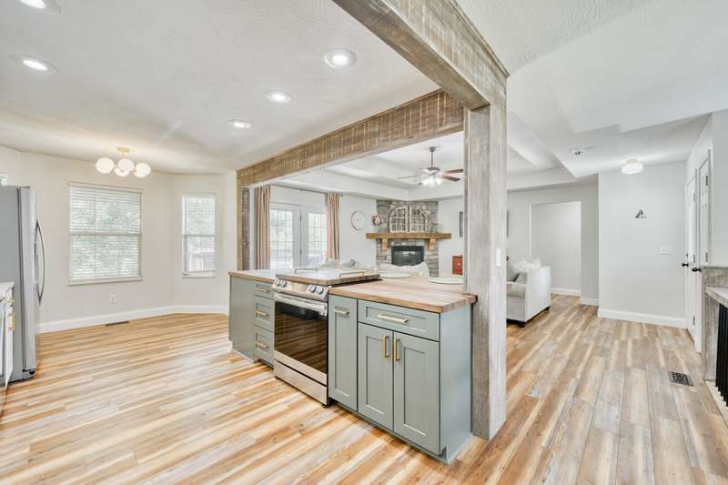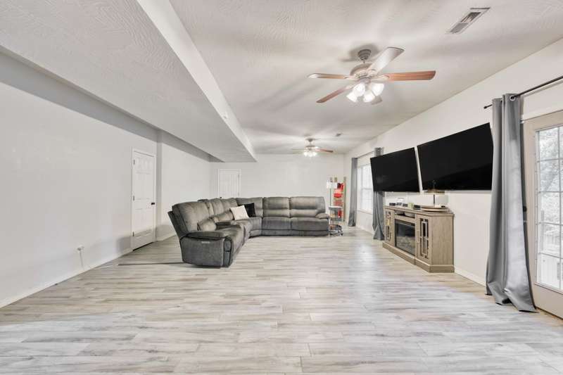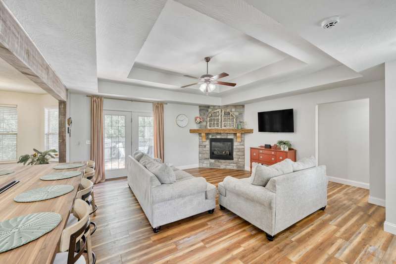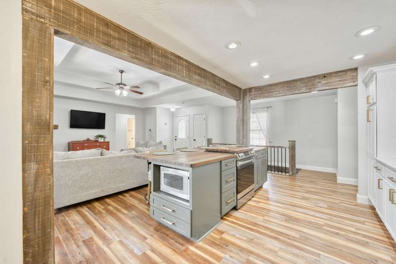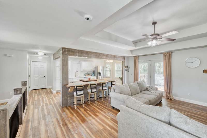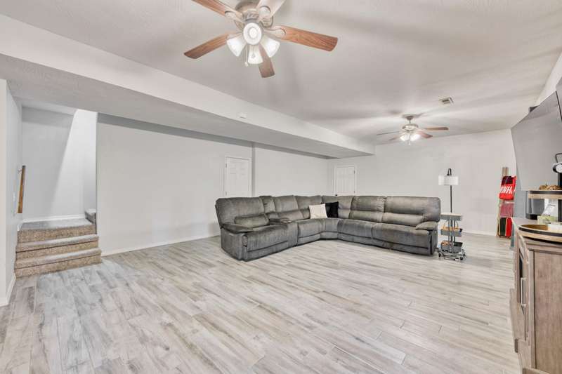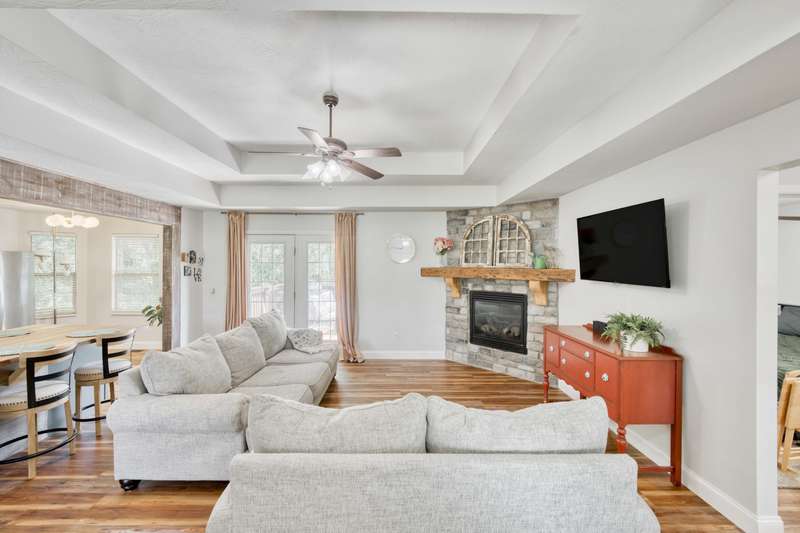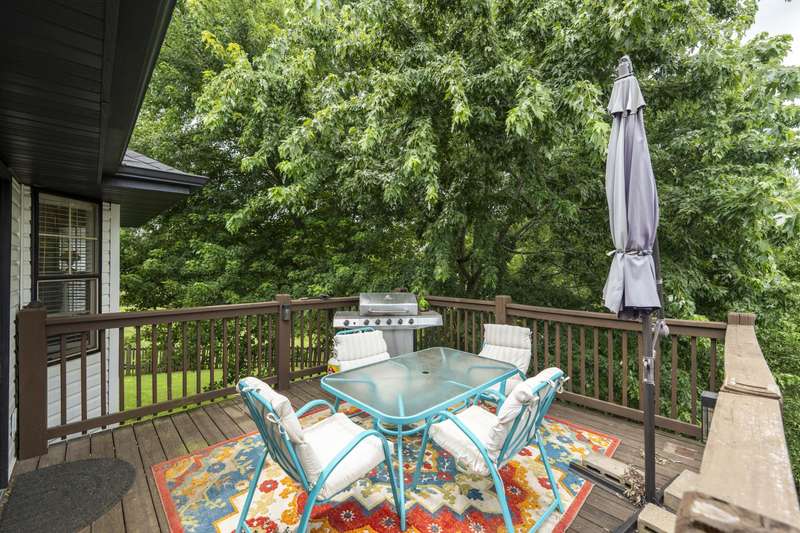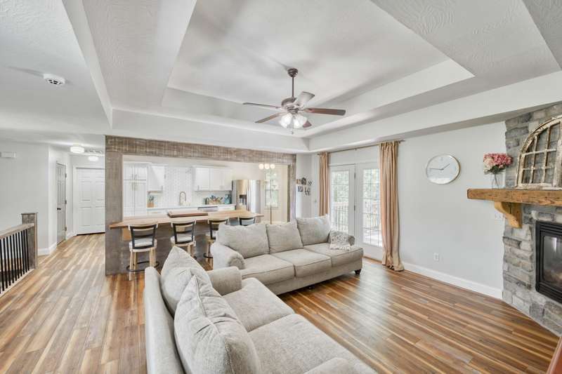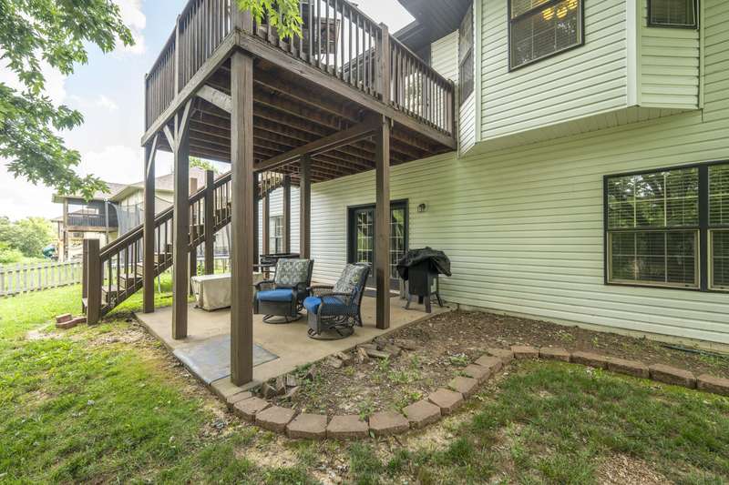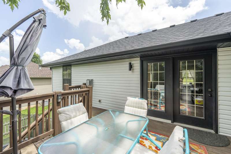 Gorgeous Walk-Out Basement Home in Sought-After Nixa!This spacious 5-bedroom, 3-bathroom home features an open floor plan with two large living areas--perfect for entertaining or relaxing. The main level offers three bedrooms, including a primary suite with an en suite bath and a walk-in closet. Wood beams and a cozy fireplace add charm and character to the upstairs kitchen and living space.Downstairs, you'll find two additional bedrooms, a full bath, a second living area with hard surface flooring, and a versatile John Deere room for storage or hobbies.The large backyard is dotted with mature trees, providing both beauty and privacy. This well-maintained home has the space, style, and layout to fit your lifestyle in one of Nixa's most desirable neighborhoods.