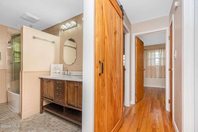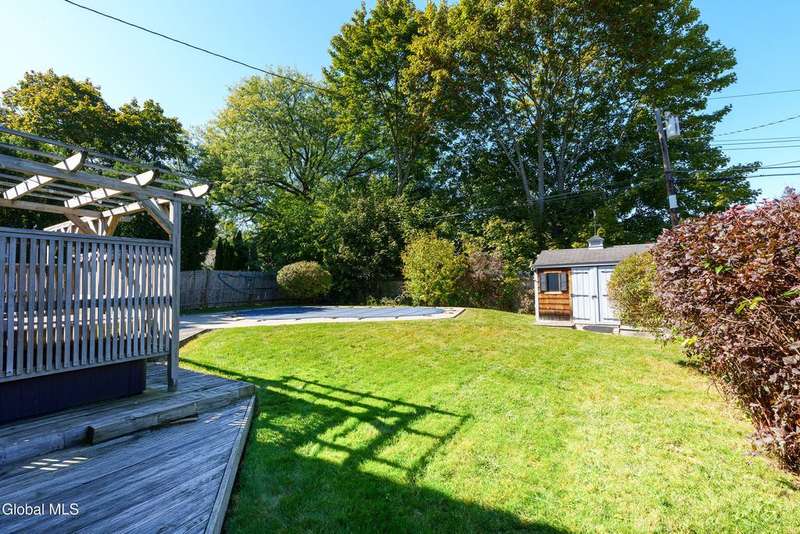 This home blends comfort style and a prime location on a quiet no-through street. Main level features spacious living room, gleaming hardwoods, kitchen with a large working island blended with glass door cabinets. An inviting dining area centered around a cozy gas fireplace. Upstairs you'll find hardwoods and a completed updated bathroom, walk-in shower, dual vanities, recessed along with generous lighting and the barn door that adds a nice touch. Lower level offers a recreation/family room plus an additional den that can serve as a bedroom and door access to the rear yard. A tastefully updated bath/Petal stool sink/walk-in shower. An unfinished basement provides extra storage and a laundry/utility room. Splash your way into the warmer months with this in-ground pool with a new liner. Upgrades also include some Andersen windows, new carpeting, new HAVC system. Washer & Dryer. Minutes to all highways, thruway, shopping. Make your appointment today!