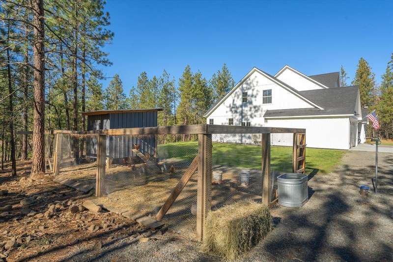 Built in 2022, this beautiful 4-bedroom, 3.5-bath home plus an office sits on 5 private acres and offers a perfect blend of modern comfort and country living. With just over 3,000 sq. ft. of thoughtfully designed space, you'll love the open great room with soaring 17-ft ceilings, granite countertops, and stainless steel appliances in the kitchen. The main floor features a dedicated office, perfect for remote work or make it a game room. Outside offers room for a shop and includes a chicken coop—The attached garage is equipped with a 50-amp welder plug and a generator hookup for added functionality. Enjoy peace and privacy just 15 minutes from Davenport and under an hour to downtown Spokane. A rare opportunity to own a nearly new home with acreage, space to grow, and all the modern amenities.