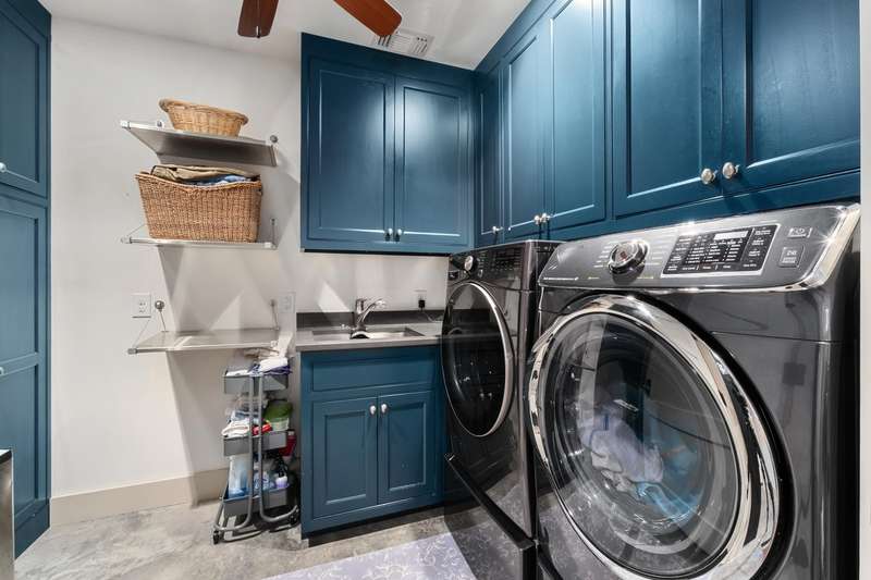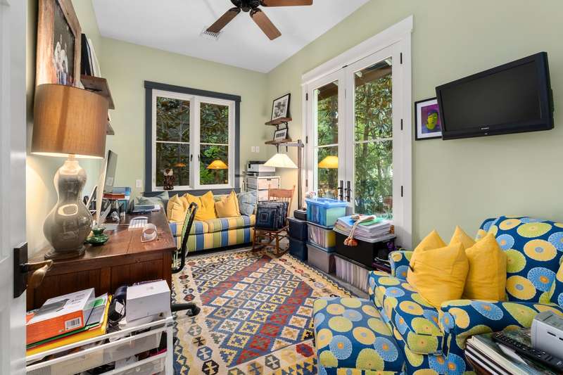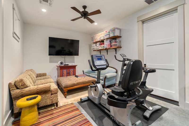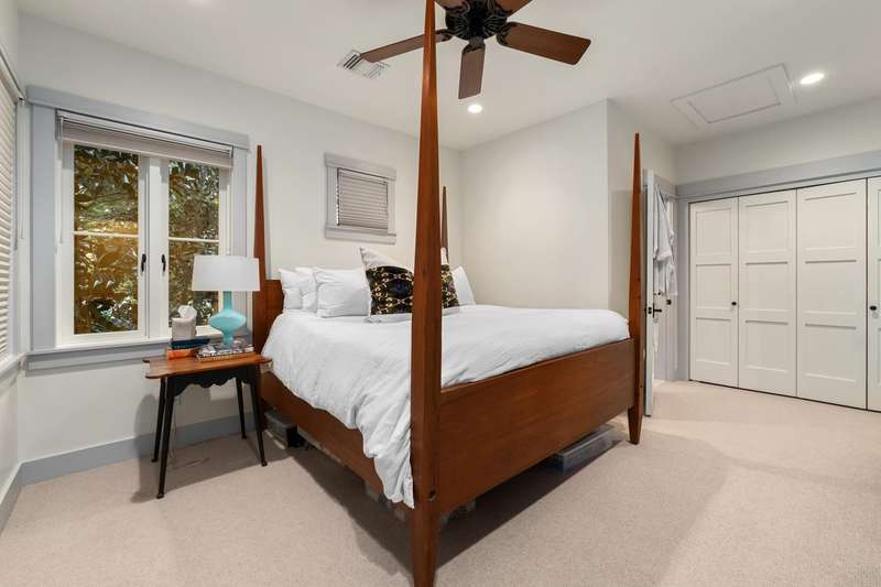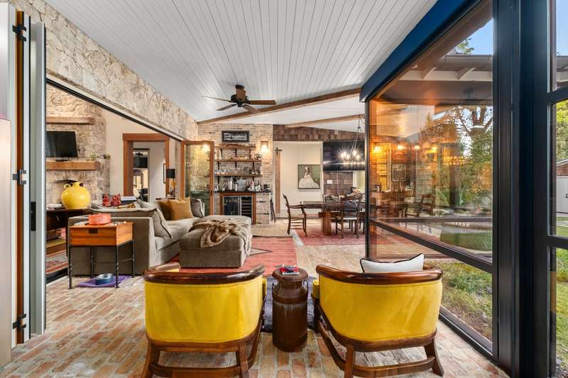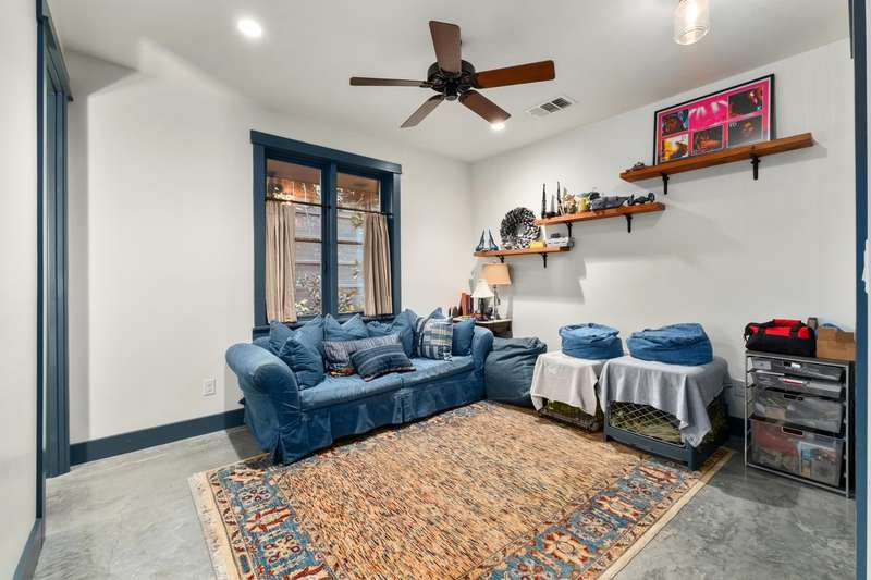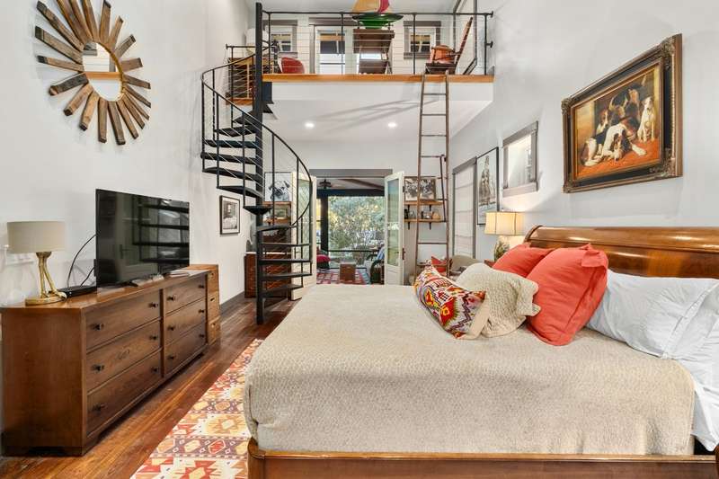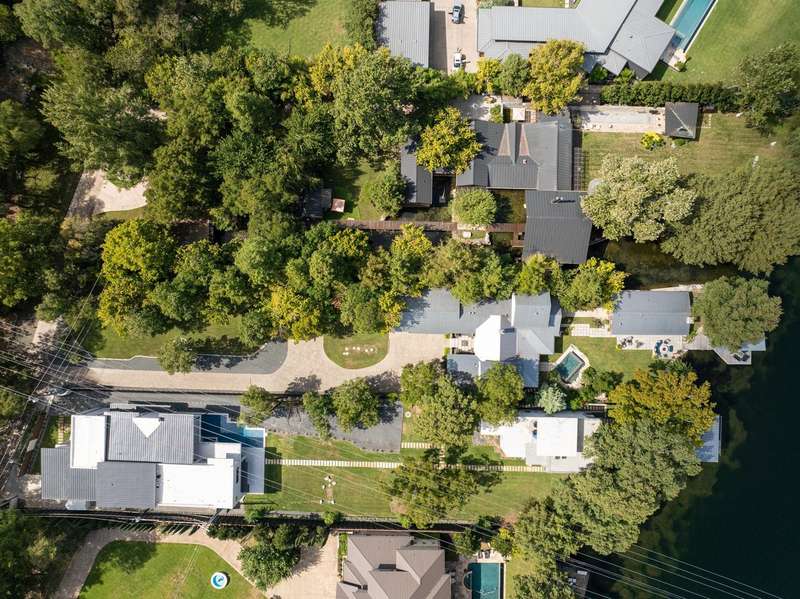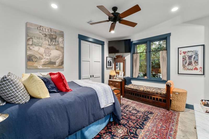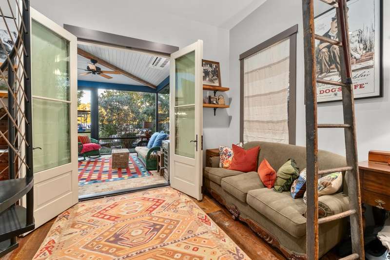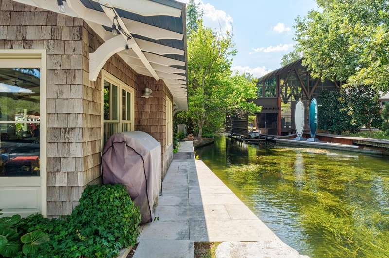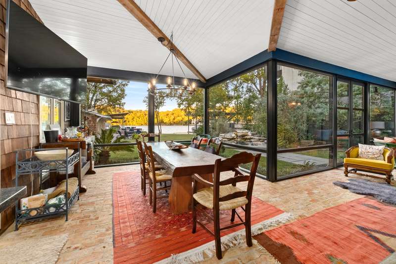 In the main residence, the living area, with a bar, full kitchen, and wood-burning fireplace, creates an inviting gathering space that opens to a glassed-in porch, where sweeping views of Lake Austin steal the spotlight. Retreat to the primary suite with a spiral staircase to an office nook overlooking the lake. The guest bedrooms have windows to a quiet canal, offering tranquil water views from nearly every room. Just off the garage, an air-conditioned gym provides a climate-controlled space for wellness and recreation.