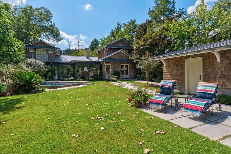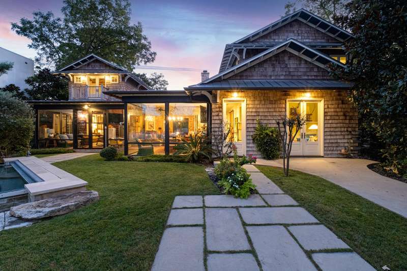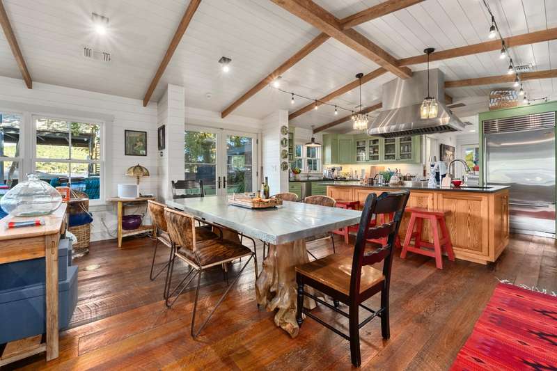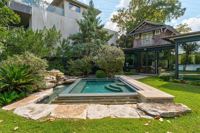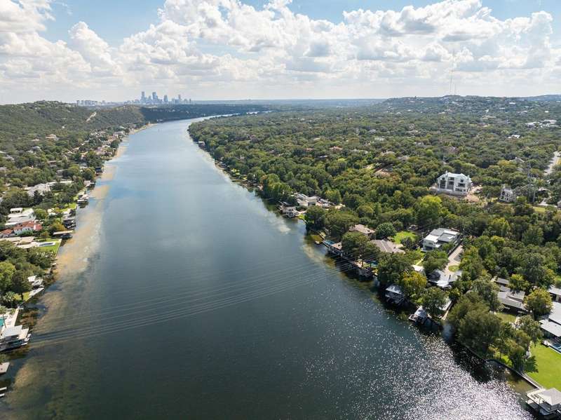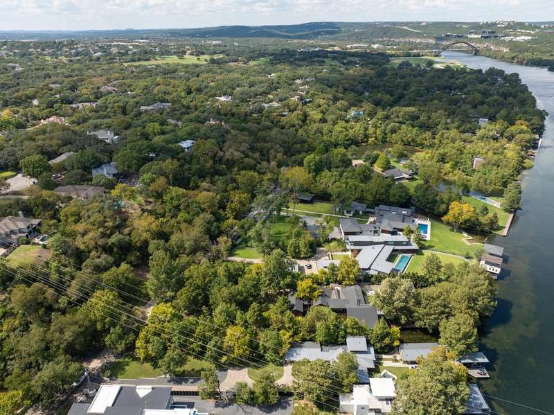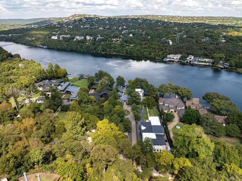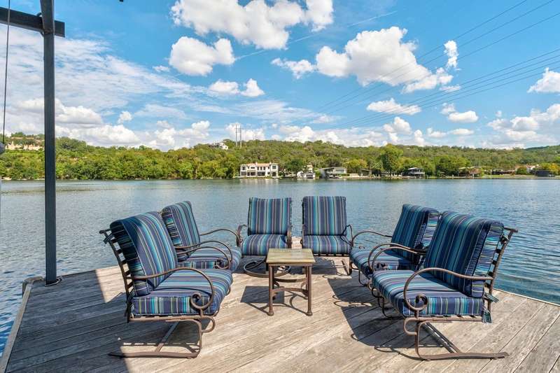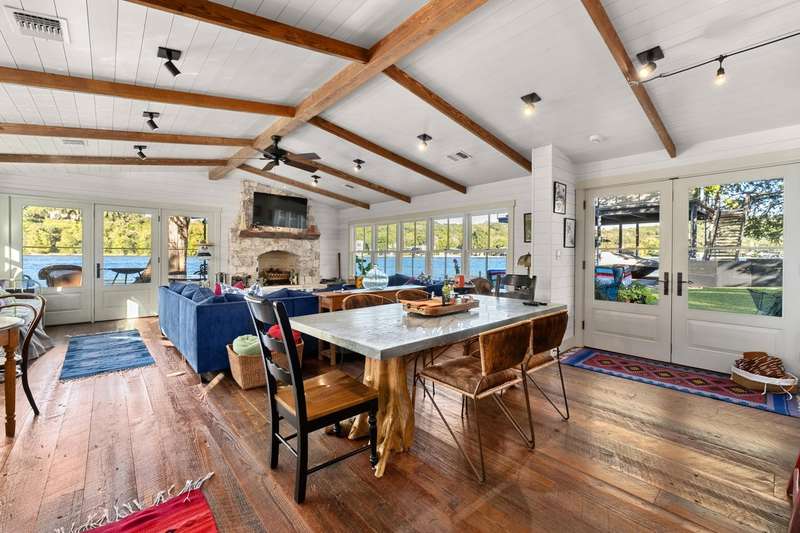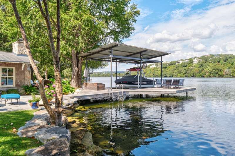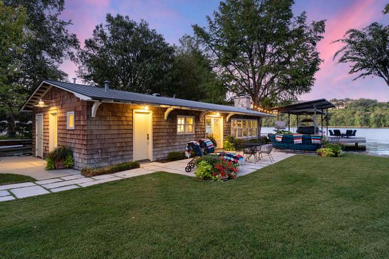 Outside, enjoy the serenity of the lushly landscaped yard, a private sanctuary wrapped in natural vegetation that ensures seclusion and peace as you soak in the expansive waterside hot tub. Perhaps the most extraordinary feature of the property is the grandfathered lakeside cottage, a privilege no longer allowed under current regulations. This beautifully preserved structure sits close to the water and features a full kitchen and walls of windows that frame the shimmering lake. The cottage's wallaba shingle exterior is crafted from a durable and fire-resistant African wood once used for railroad ties, adding both beauty and resilience to its timeless design. Take in the stunning panoramic views or unwind on your private dock with a boat lift beneath the shade of a majestic Cypress tree. At every turn, 1406 Rockcliff Road captures the unparalleled magic of authentic Austin lakefront living.