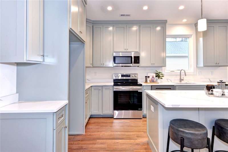 This Custom one-level Home offers a open floor plan that combines contemporary with traditional functionality. This 3-bed, 2-ba utilizes its 1,547 square feet of space to maximize livable area. The interior has 9-foot ceilings & wide doorways. The primary BR features a glass-enclosed shower, while both bathrooms have beautiful mirrors, ceramic floors, quartz tops & linen closets. The flooring is low-maintenance, high-scratch-resistance Luxury Vinyl Tiles. An inviting large covered front porch is complete with custom locally made railings. The kitchen is a highlight, featuring custom made cabinets, an island with quartz countertops, & all SS appliances. Efficiency is enhanced by quality PELLA windows & an 8-foot sliding door that leads to the covered porch.The 3 spacious bedrooms come with ample closet space. For outdoor living, the foot rear covered porch offers a perfect space to enjoy the outdoors. Additionally, the 2 car insulated and finished provides versatile space featuring an insulated high-end garage door. Convenient underground electricity, town water, & sewer services. between Williamsburg & Richmond.
