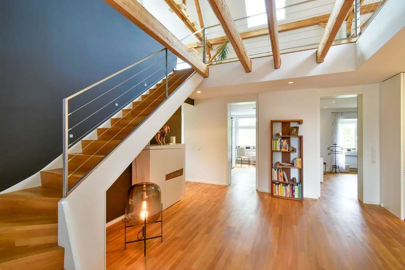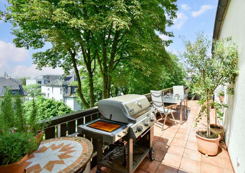 Discover an extraordinary maisonette apartment in the heart of Rüttenscheid that impresses with its spacious layout and first-class furnishings. The approximately 227 m² apartment, located in a charming villa dating back to 1913, offers everything your heart desires - and much more. A centerpiece to fall in love with Enter the apartment and find yourself in the impressive hallway with an open-plan cooking and dining area. Here you will find a kitchen made to measure by a carpenter, equipped with high-quality materials and modern appliances that will make your culinary dreams come true. Whether cooking together or socializing in the evening - this room invites you to linger. Versatile rooms for your needs Three adjoining rooms offer flexible usage options: Whether as a bedroom, children's room, guest room or study - the choice is yours. The elegant master bathroom and an additional guest bathroom with shower and WC can be reached via the hallway. The large balcony, accessible from both the hallway and the hallway, extends your living space to the outside. Luxury and relaxation The modern bathroom impresses with its design and functionality. With a bathtub, a separate shower and an integrated sauna, your personal wellness experience is perfect. Here you can enjoy luxurious moments of relaxation within your own four walls. Unique living ambience A staircase leads you to the highlight of the apartment: the open attic with exposed wooden beams and an inviting fireplace. This area lends the apartment a special charm and creates a unique living ambience. From here you have access to the spacious roof terrace, your private outdoor retreat. Exclusivity in every detail From the first-class workmanship to the high-quality materials - this apartment offers exclusivity at a high level. Every detail has been carefully selected and perfectly staged to create a high-quality and harmonious living experience. Perfect location This charming apartment offers plenty of space for discerning buyers. Thanks to its excellent infrastructure and convenient location, this apartment is particularly sought-after. Essen-Rüttenscheid is one of the most popular and attractive districts in Essen for good reason. This is where urban life meets green recreation - a perfect combination for people of all ages. The apartment has 3 cellar rooms with a total usable area of 50 m². There is an underground garage in the immediate vicinity where parking spaces can be rented. The owner's existing tenancy agreement can probably be taken over. If we have aroused your interest, we will be happy to provide you with further information and arrange a viewing. We look forward to showing you your new home!
