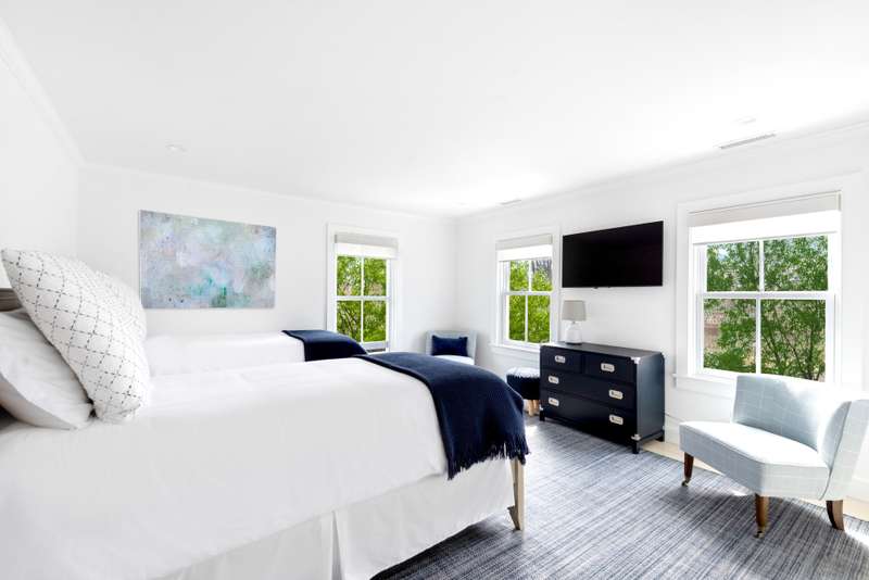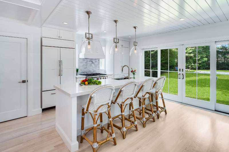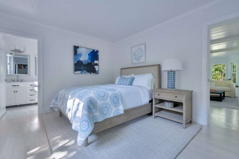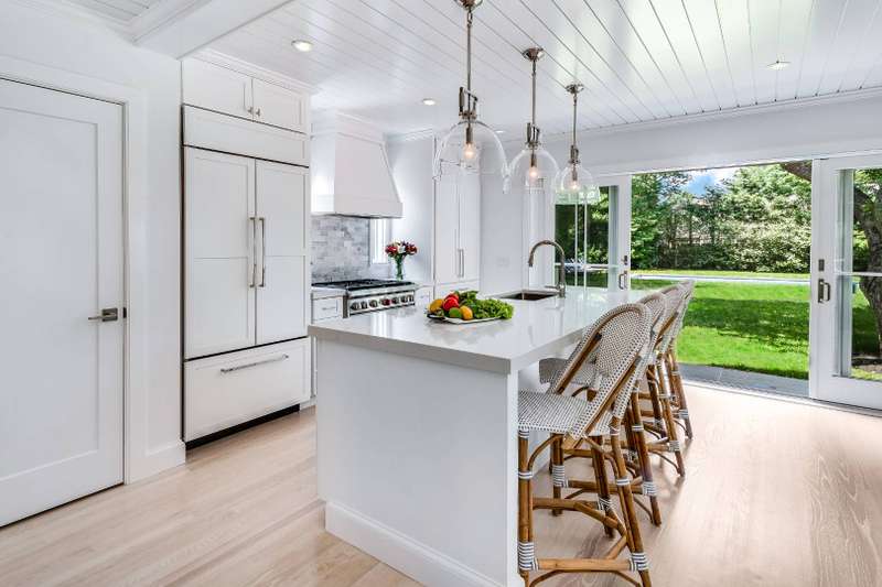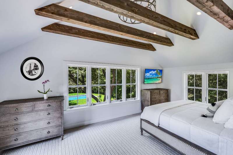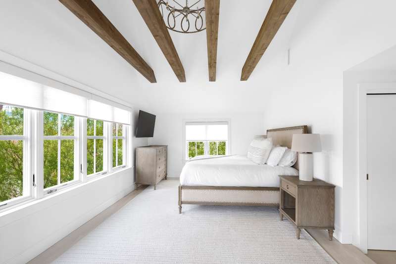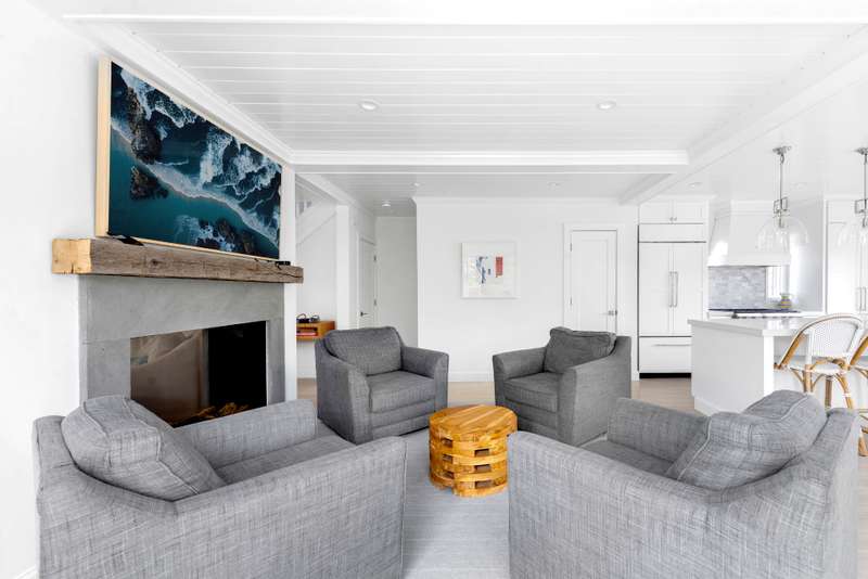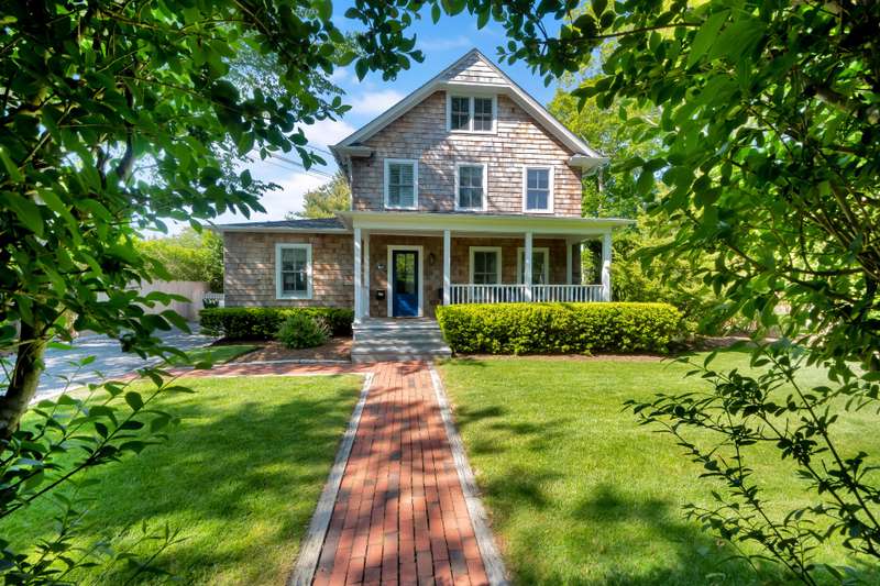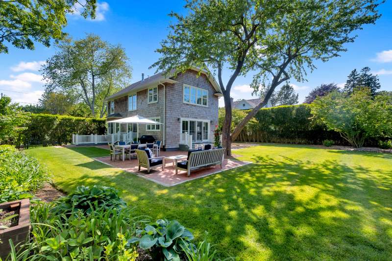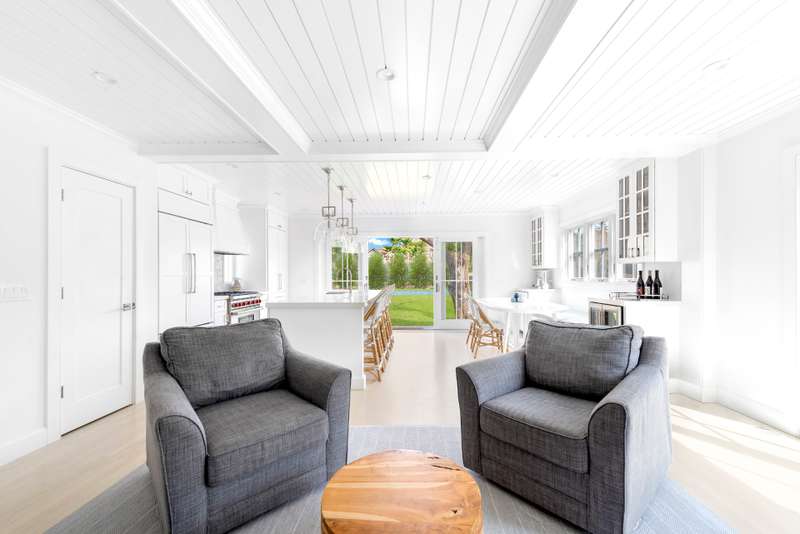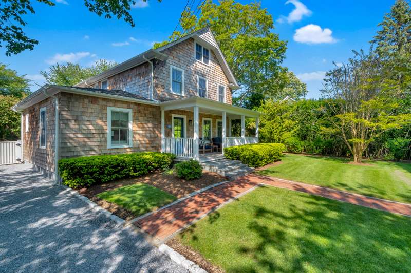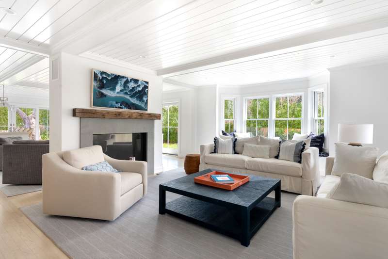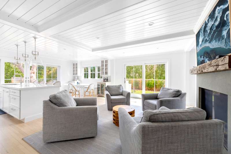 This stunning East Hampton Village classic features a large open floor plan with chic living room and cozy den space divided by a double-sided gas fireplace. A sun-filled custom kitchen is outfitted with a social center island and inviting dining spot. Glass sliders open bring you to the back and side yard lounging and dining areas. Meticulously landscaped gardens and lush lawn lead to a glorious heated pool. A gracious junior primary guest room and powder room finish the main floor. The second level contains the primary suite with vaulted beamed ceiling overlooking the backyard as well as two additional guest rooms and a full bath. The lower level entertainment space boasts a large screen TV, relaxing sectional sofa and regulation sized pink pong table. Within a few steps of renowned shopping, restaurants, the East Hampton train station and Hampton Jitney stop, this chic oasis of privacy awards you the perfect time in East Hampton Village.