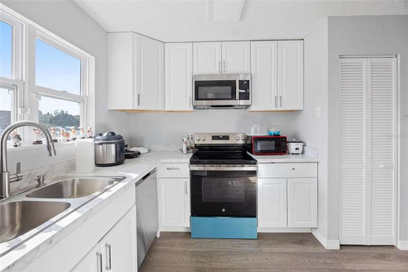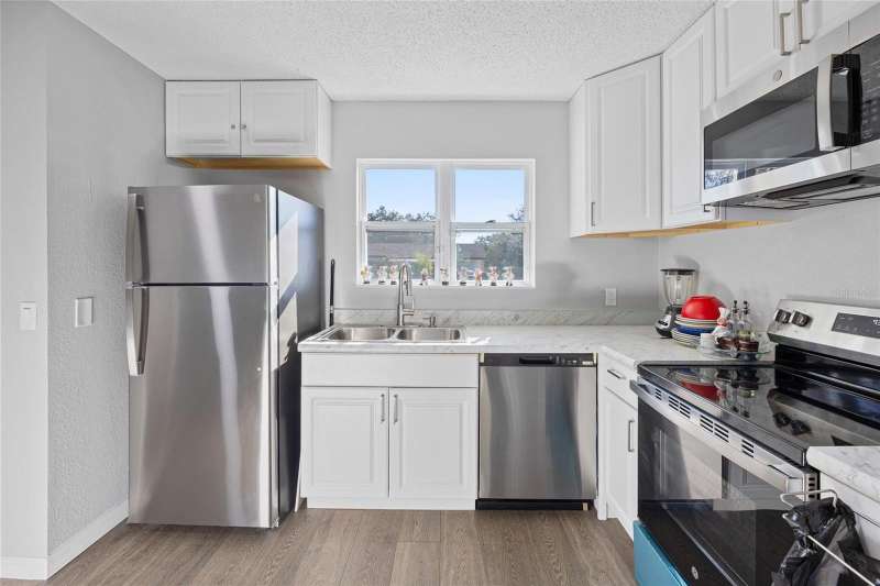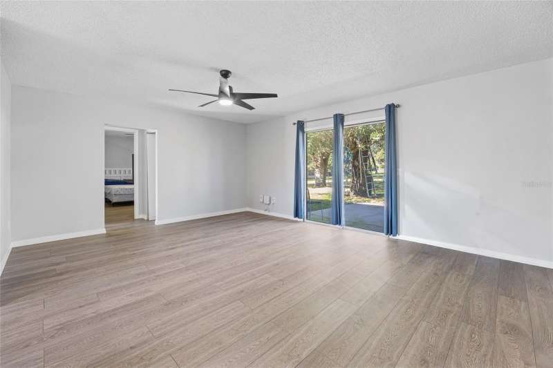 Welcome home! This beautifully updated 2-bedroonl. 2-bathroom residence perfectly combines modern upgrades with cozy charm. Step into the kitchen featuring brand-new cabinetry and sleek stainless-steel appliances. Both bathrooms have been fully renovated from top to bottom. showcasing contemporary finishes and stylish fixtures. Throughout the h01ne, modern vinyl flooring flows seamlessly—no carpet anywhere! Set on an oversized corner lot with mature trees. The open living area extends through sliding doors to a fenced backyard and inviting patio. offering both privacy and plenty of space for outdoor enjoyment. Major updates provide peace of mind. including a neve roof (April 2025). new A/C system, and all-neve ductwork'. Beyond the home itself. You’ll appreciate its prime location near local parks, walking trails, and nature areas—perfect for recreation and relaxation. Don't miss your chance to own this ready gem!