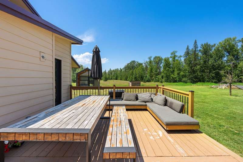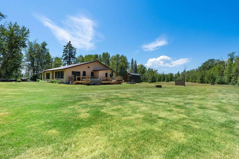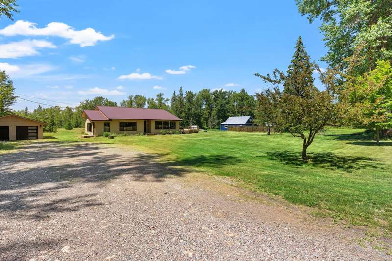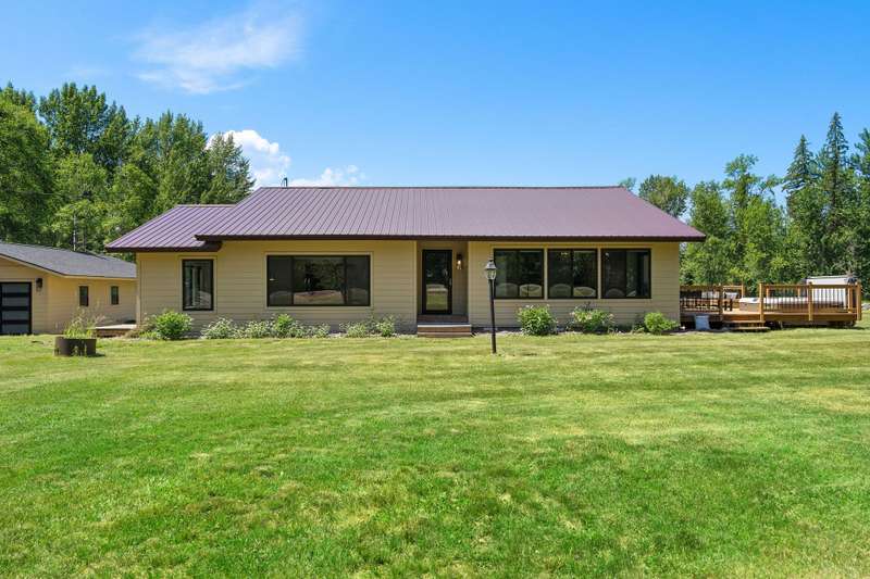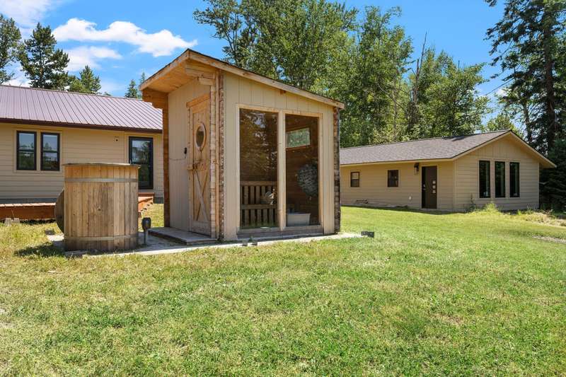 An unbeatable location and stunning remodel await you! This property offers the perfect blend of convenience and tranquility, located just minutes from town while maintaining a peaceful, out-of-town atmosphere. Spanning over 4 level acres, this home features 3 bedrooms, 2.5 bathrooms, and a spacious detached temperature-controlled garage with a gym. The entire home has been tastefully renovated, including high-end chefs' kitchen, all new: plumbing, HVAC, furnace, water heater, added central AC, fresh siding (primed and ready for paint), and stylish finishes throughout. Unwind in the hot tub or take in serene views from the sauna and cool off in the cold plunge! Additionally, there's a bonus outbuilding perfect for an office or bunk house. Enjoy the freedom of no zoning and no covenants. A short drive to the airport, Glacier National Park, and Whitefish provides easy access to year round recreation.