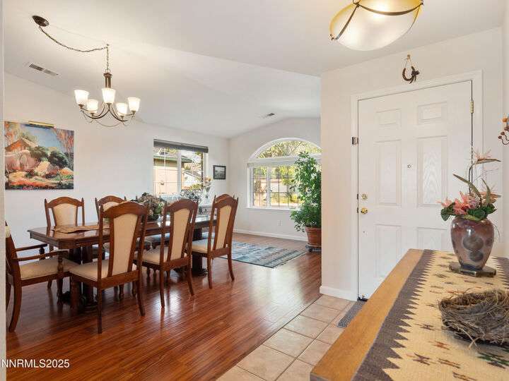 Breathtaking Sierra views set the stage for this stunning home in Valley Vista Estates! Featuring 3 bedrooms and 2 bathrooms, this property offers exceptional curb appeal with a slate walkway, fresh interior and exterior paint, and beautifully landscaped yards complete with a pergola for outdoor enjoyment. Inside, you'll find an inviting floor plan with newer appliances, dual-pane windows, laminate flooring, cozy carpeting, and a gas log fireplace in the great room. The double gate on the west side also provides convenient RV or boat parking, making this home as functional as it is beautiful.