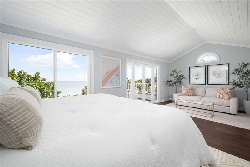 Experience oceanfront living at its finest! This beautifully reimagined residence combines timeless elegance with modern comfort. The expansive primary suite offers panoramic ocean vistas, private balcony, sitting area & walk-in closet. Entertain with ease in the gourmet kitchen with Thermador appliances, induction cooktop & oversized island. A fireplace-adorned living room and sunlit family room flow to the oceanside patio just steps from the sand. Impact glass, new plumbing/pipes, 2023 A/C's, whole home water filtration system complete this retreat. Sizes approx./subj. to error.
