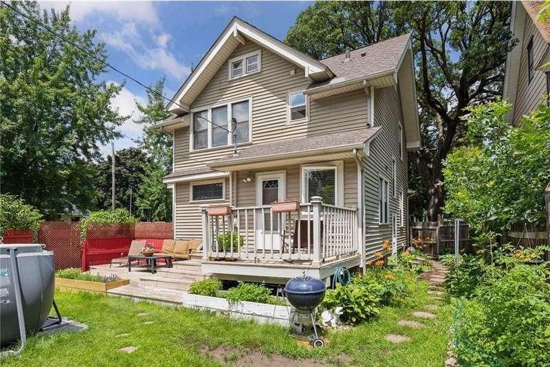 Welcome home! You will find throughout an abundance of classic charm but also fantastic modern updates. You will enjoy the inviting living room with the gas fireplace and a great three season porch perfect for relaxing whether it's your morning cup of coffee or entertaining family and friends. Upstairs you will find three bedrooms with a beautiful built-in linen closet that brings out so much character along with a full bath along with a fourth bedroom in the third level loft. The private backyard includes a spacious deck, a fully fenced yard, a gardening shed next to vegetable, fruit, and herb gardens, and a rare 3-car garage perfect for storage, hobbies, and more. The basement provides extra storage rarely found in this size from this era and also includes an additional half bath. This home is a MUST SEE!