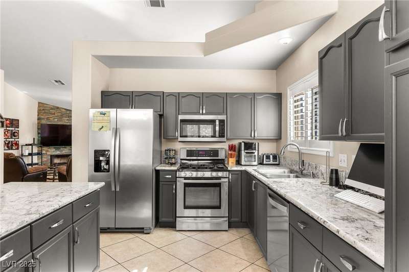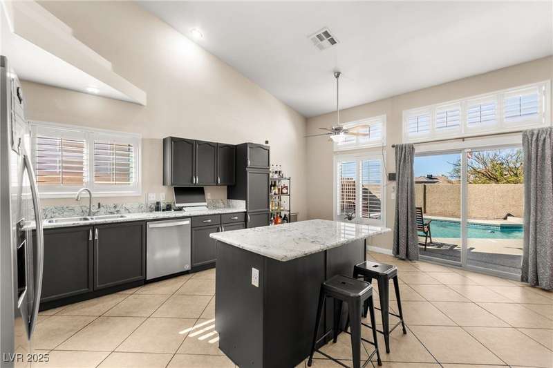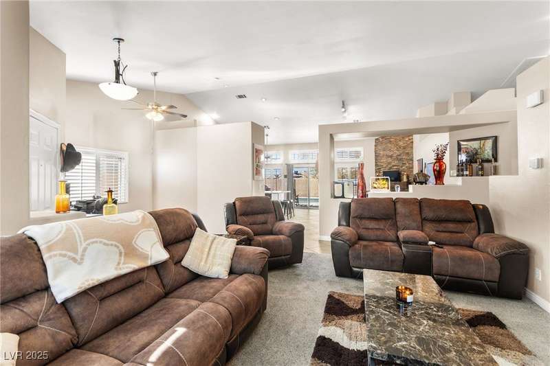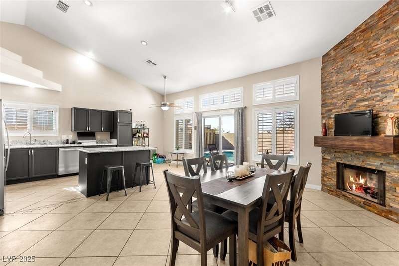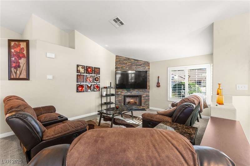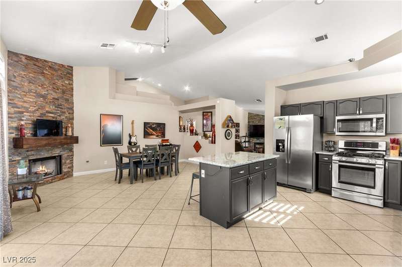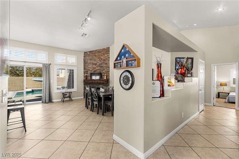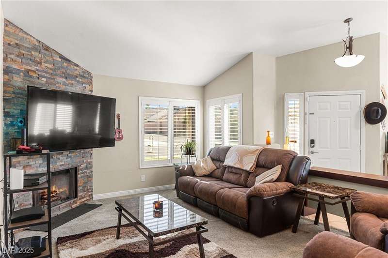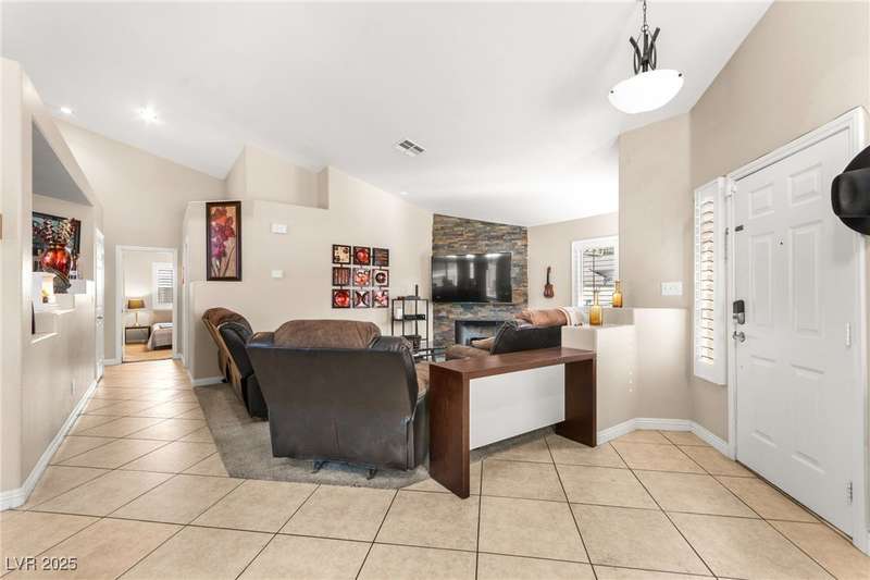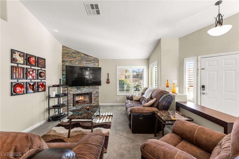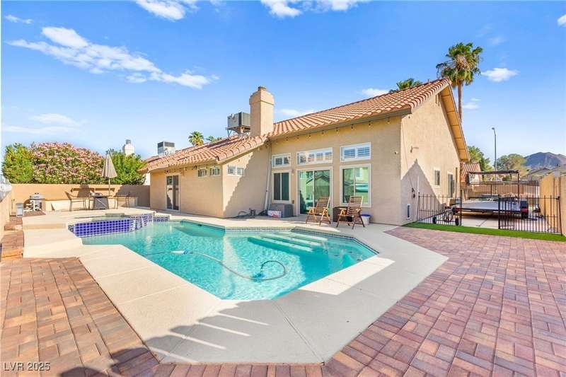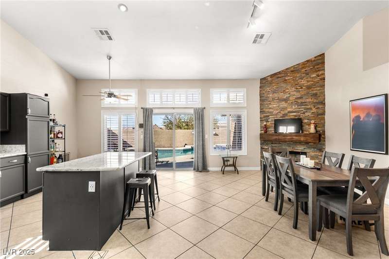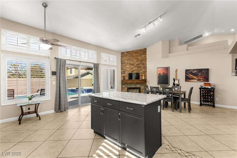 Charming single-story home featuring 3 bedrooms and 2 bathrooms. The backyard offers a private retreat with a pool and spa, all with a low HOA. The primary suite includes direct access to the backyard, while the open-plan kitchen and dining area create a perfect space for gathering. Vaulted ceilings and ceiling fans enhance the home’s comfort and spacious feel. Additional highlights include a dedicated laundry room and two fireplaces for added warmth and character.