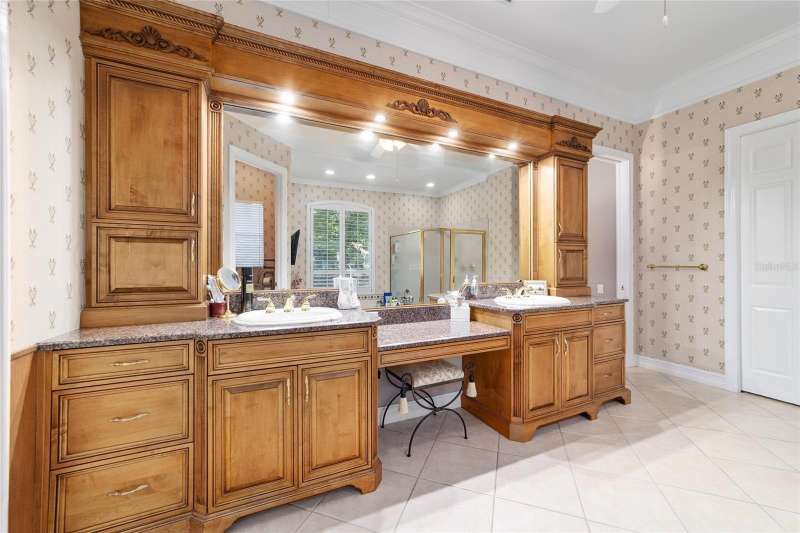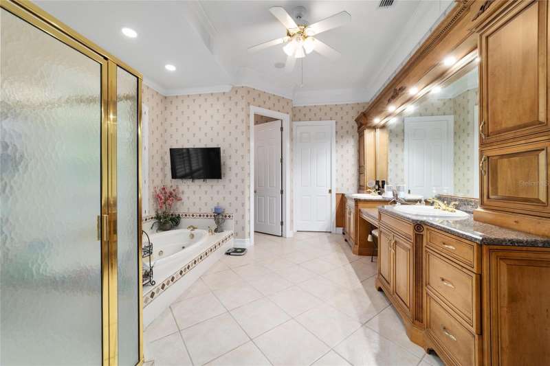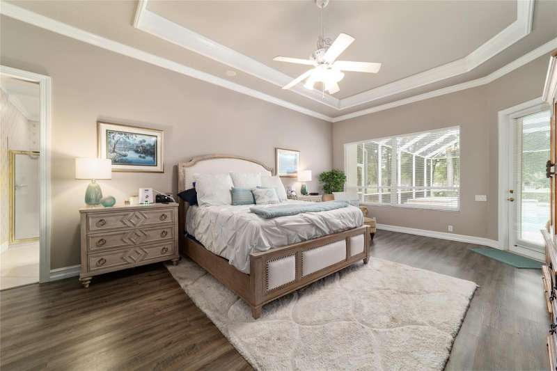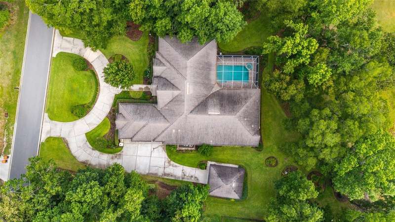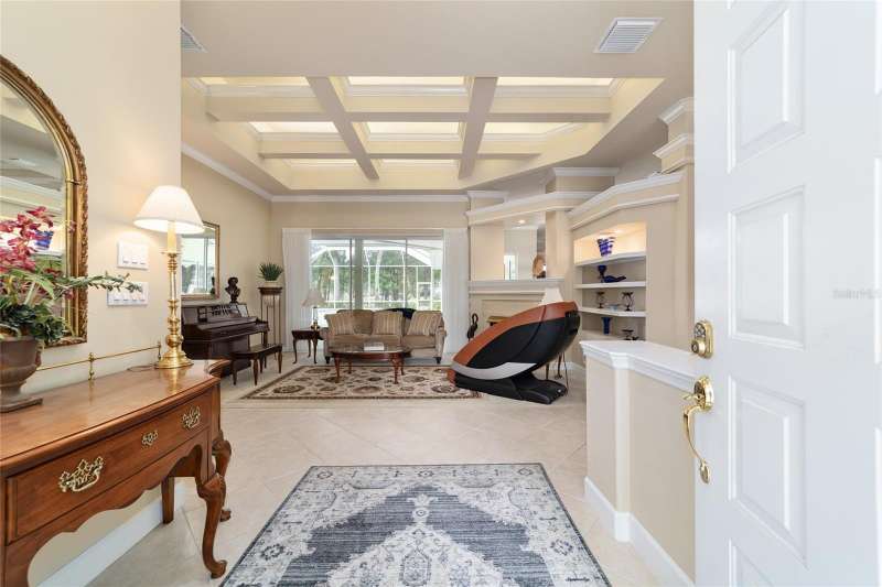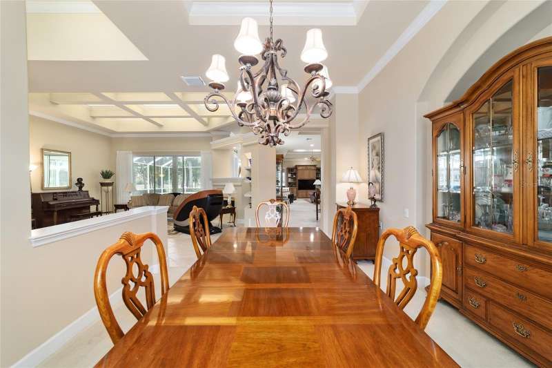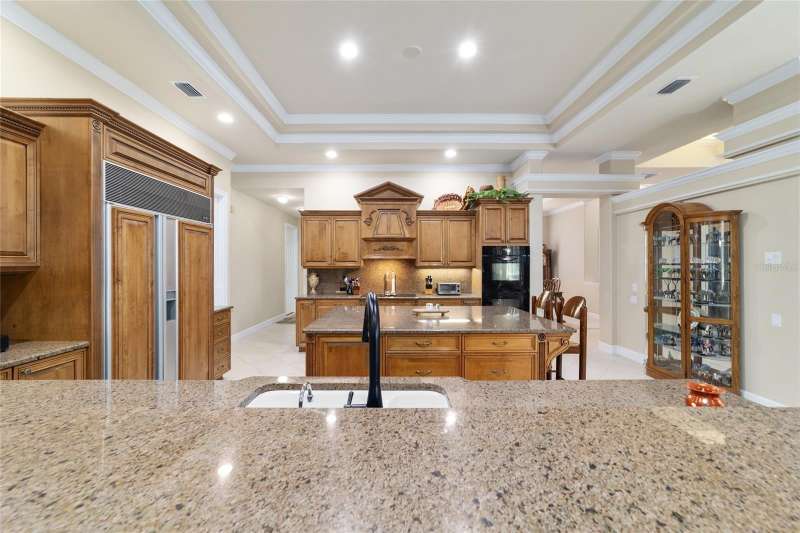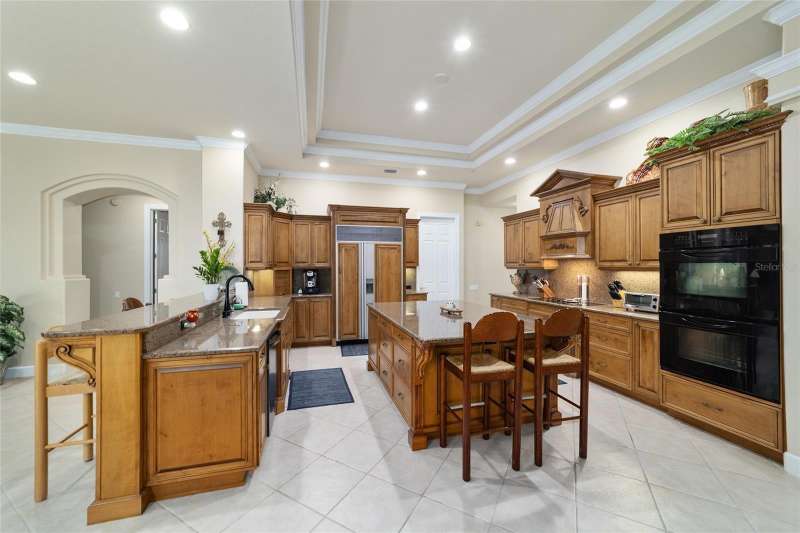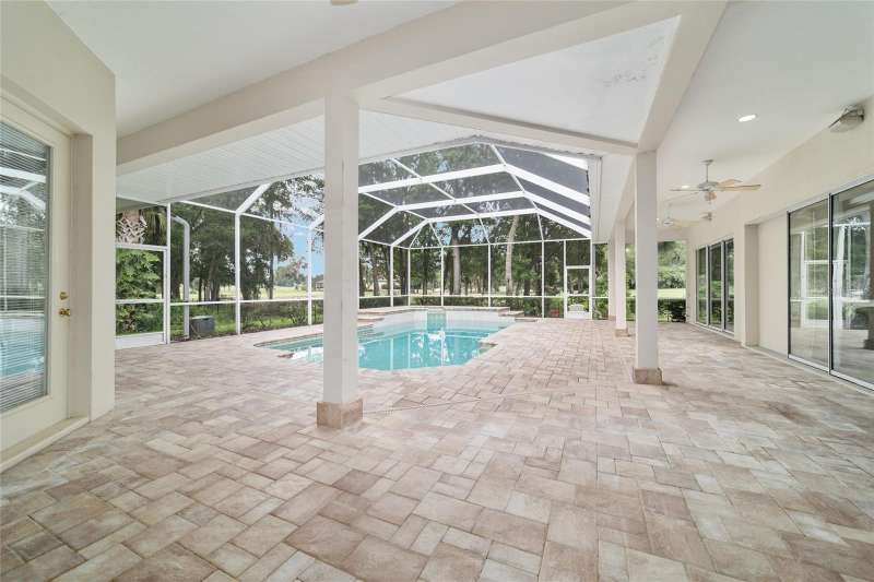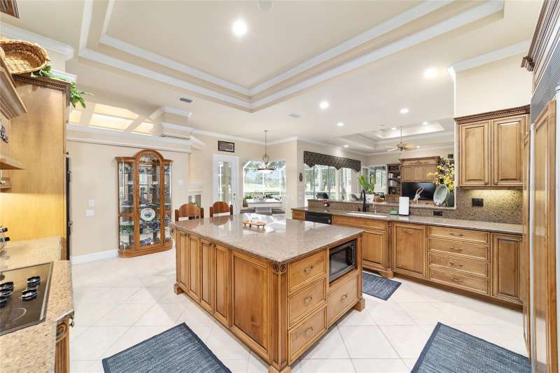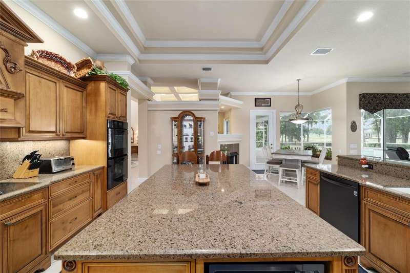 Welcome to this stunning 4 bedroom/3 bath Rutenberg-built home, with 4,614 sq ft of living square footage and situated in a gated golf community with beautiful views of the 18th hole. Step inside to find a well-planned triple split floor plan that includes formal living and dining rooms, a private office, and a spacious bonus/game room with sliders that open out to the pool. Enjoy movie nights in your very own theater room—perfect for entertaining guests or relaxing with family. The heart of the home is the expansive kitchen, featuring abundant cabinetry and a large center island complete with granite countertops. A cozy breakfast room shares double sided fireplace with formal living room and has a mitered glass window overlooking the pool and lanai. The family room, with built-ins also opens to the pool area with sliding glass doors, creating a seamless indoor-outdoor flow. The spacious primary suite has large walk-in closets and a spa-like bath. Bedroom 2 has its own private bath, while Bedrooms 3 and 4 share a convenient Jack and Jill layout. Step outside to your private backyard oasis! The screen-enclosed covered lanai offers a shaded retreat, while the saltwater pool is surrounded by a beautiful pavered deck—perfect for soaking up the sun or entertaining friends and family. Additional features include a spacious laundry room, an attached 3-car garage, and a detached garage for extra storage or hobbies. With its spacious layout and unbeatable golf course views, you won’t want to miss this one!!
