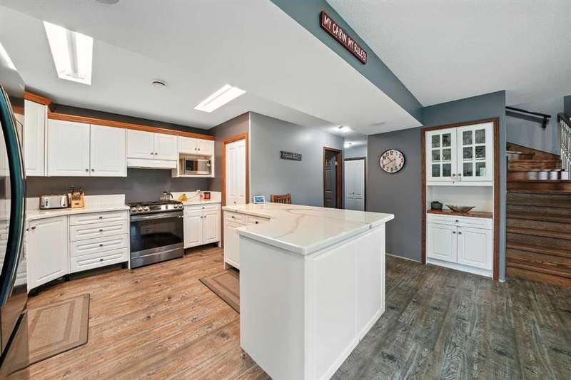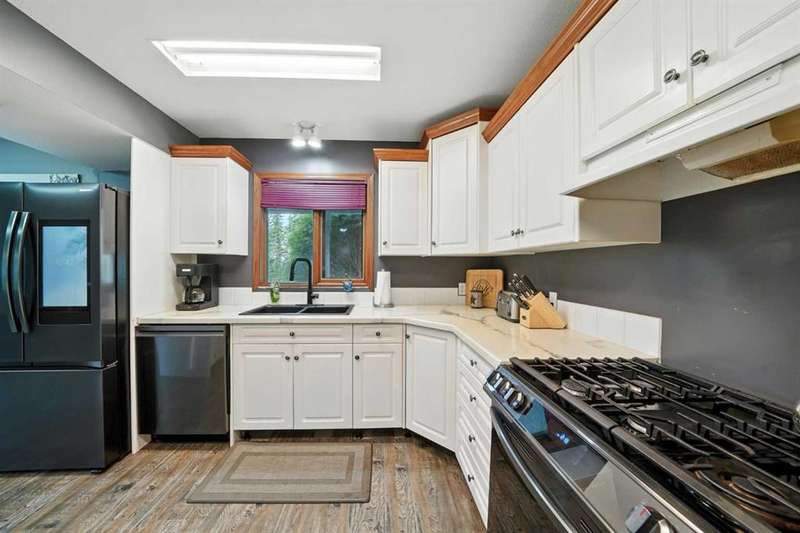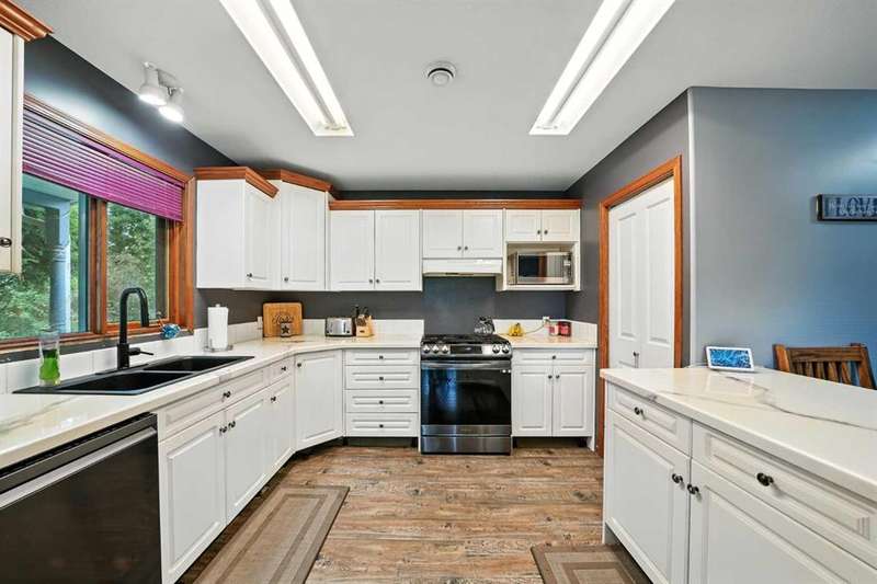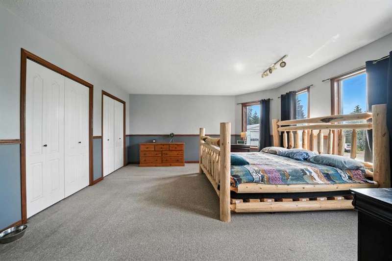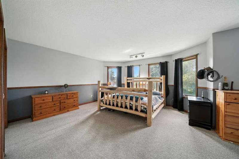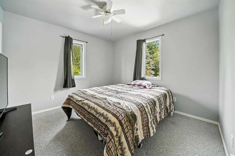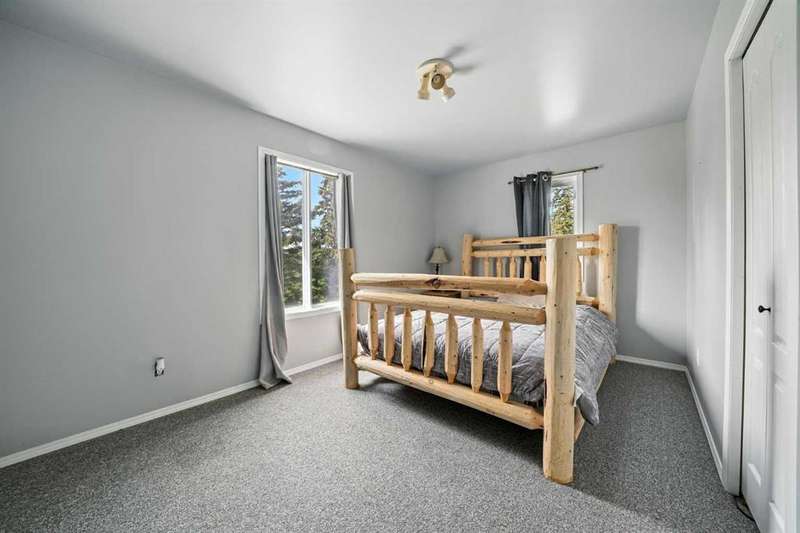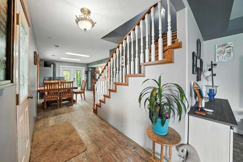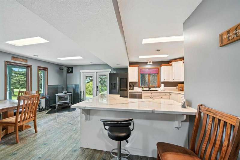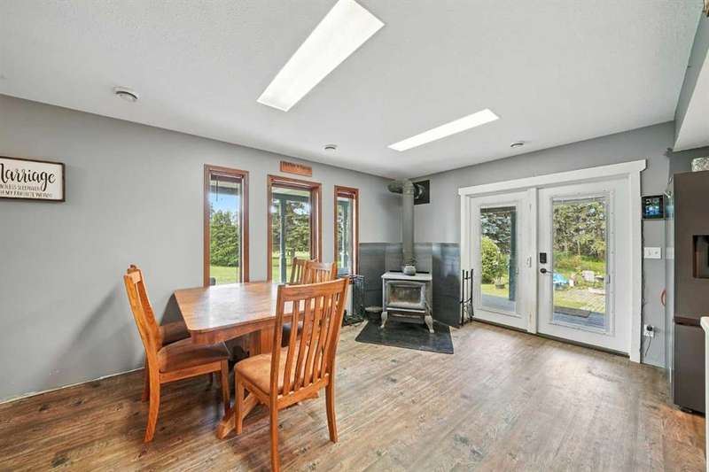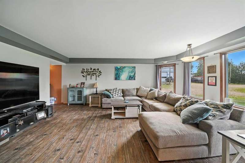 This is it! Set on 5.26 private acres, just 1 mile from Rimbey, this beautifully treed acreage offers the best of both worlds—peaceful rural living with quick access to amenities. Enjoy walking trails, a pond, and a firepit area, all nestled within mature trees for ultimate privacy. The home is set back from the road with a teardrop driveway, creating a welcoming and secluded approach. A covered wraparound deck surrounds the house, and large windows flood the interior with natural light. The heart of the home features a spacious kitchen with brand-new black stainless appliances, vinyl plank flooring throughout main and new epoxy countertops. The massive primary suite includes a full ensuite, while three additional bedrooms and an upper-floor laundry provide space and convenience for the whole family. A triple car garage, connected to the home by a breezeway, includes its own bathroom—perfect for those working outdoors. Need more space? The impressive 44x48 heated shop comes fully equipped with water, a bathroom, auto lift, 220V, and a compressor—a dream setup for any hobbyist or home-based business. Recent upgrades include: Vinyl Plank Flooring throughout main floor (2025), Kitchen appliances, 2023), Woodstove (2023), Hot Tub (2023), Air Conditioner (2023), Hot water tank (2019), Furnace (2019), Shingles (7 years old). This acreage offers tremendous value and endless potential—perfect for families, entrepreneurs, or anyone seeking space, privacy, and country charm just minutes from town.