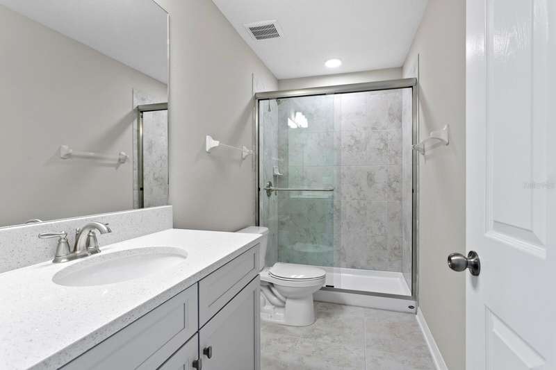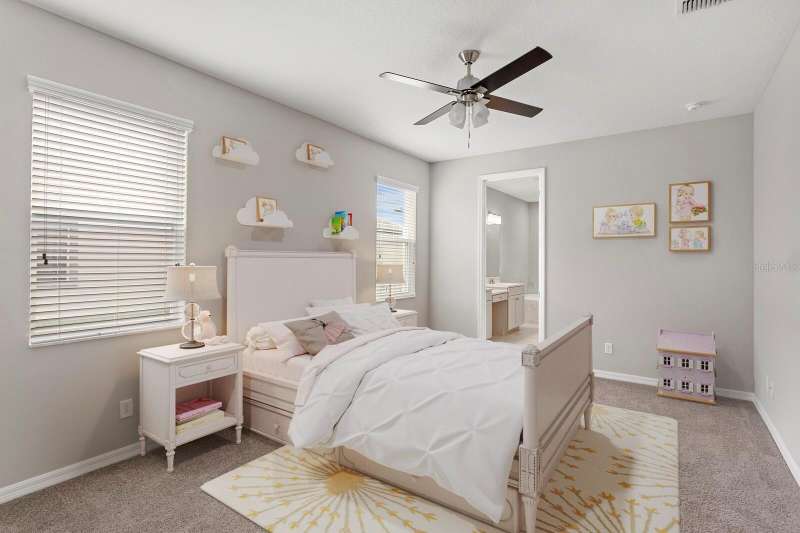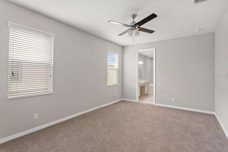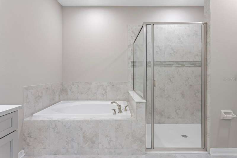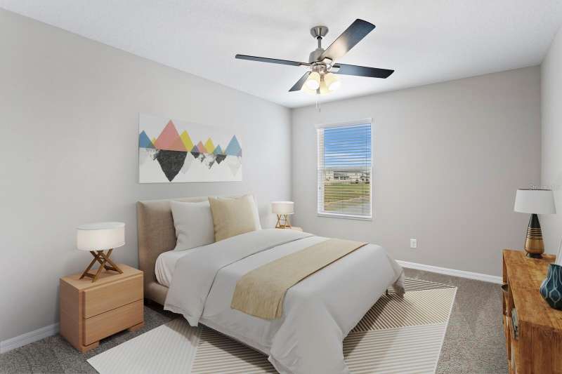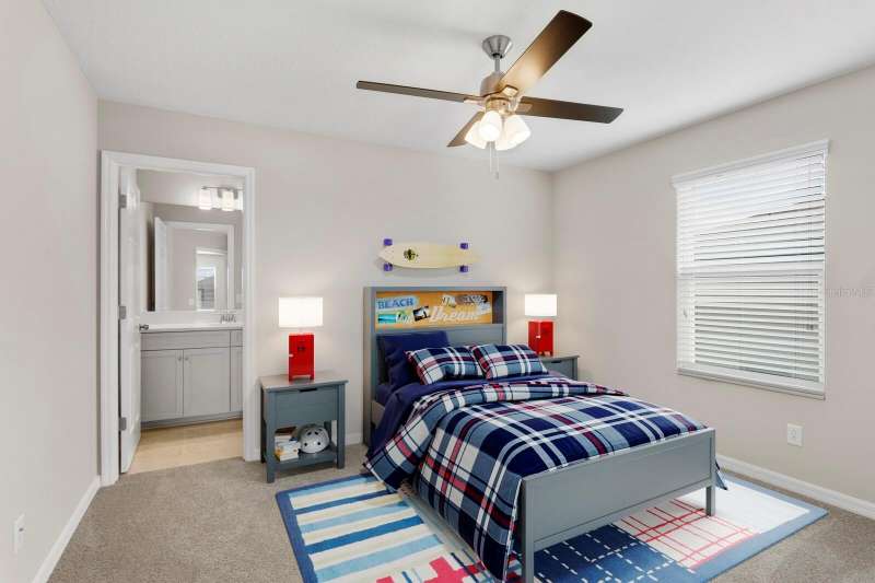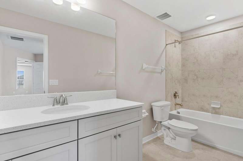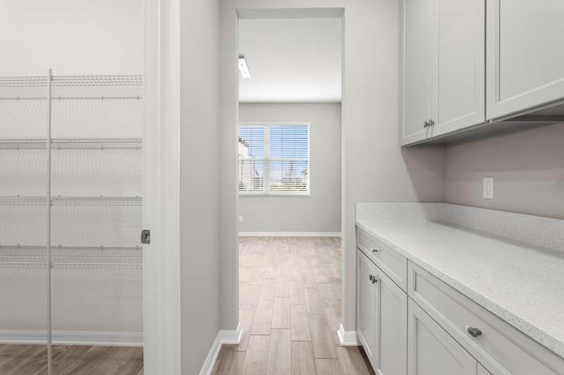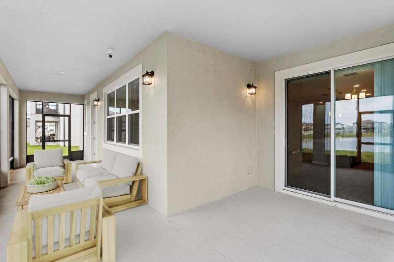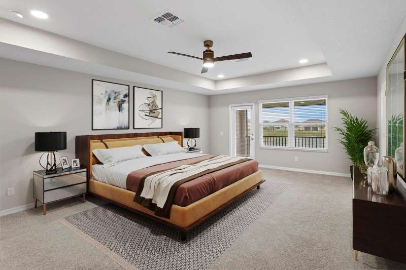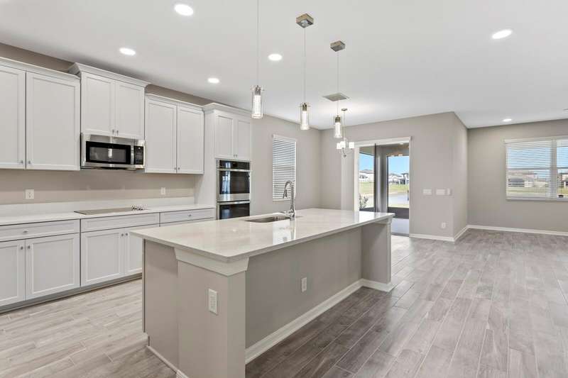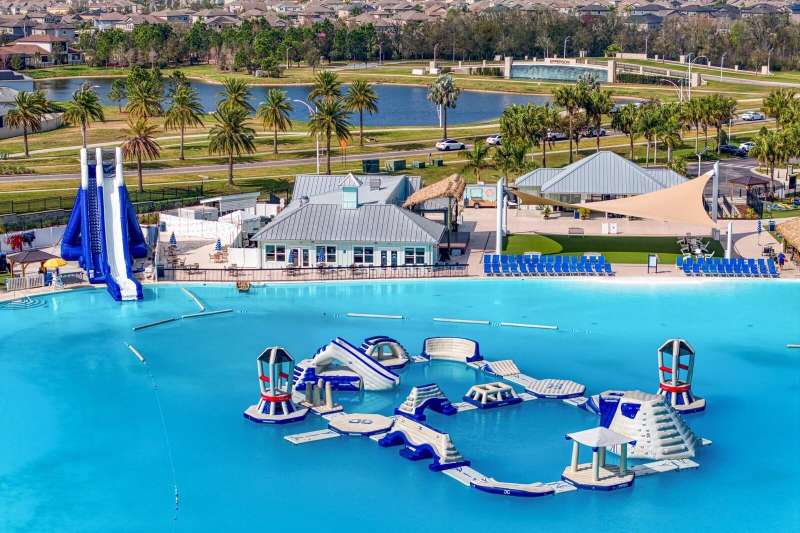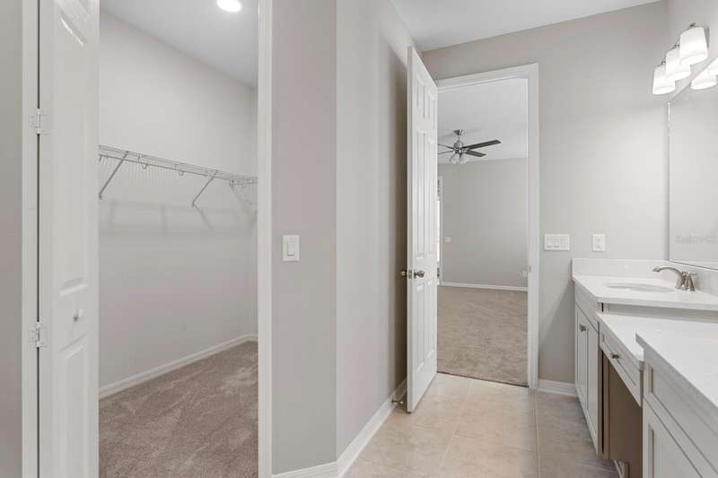 One or more photo(s) has been virtually staged. +++++++This brand-new, never-lived-in home, purchased in 2024, is a true masterpiece featuring over $140K in premium upgrades. Boasting 3,761 sq. ft., this stunning 5-bedroom, 5-bathroom residence is perfectly positioned on a picturesque waterfront homesite in the sought-after Epperson Ranch community. Thoughtfully designed for modern living, this 2024-built home showcases luxury and innovation, including wood plank tile flooring, a 50-amp car charger, a striking 48” electric fireplace, extra LED can lighting, tray ceilings, and a spacious 15x18 balcony. A Smart Home thermostat adds convenience and efficiency. The open floor plan includes two master suites (one upstairs, one downstairs), five full bathrooms, a private den/office, a large family room, and a massive bonus/media room with a pool bath that leads to the oversized screened lanai. The gourmet kitchen is a showstopper with sleek quartz countertops, stainless steel appliances, a large island with drop pendant lighting, double ovens, and a spacious butler’s pantry with custom shelving. A flexible space near the kitchen can serve as a formal dining room or additional office. Upstairs, you’ll find four generously sized bedrooms, a loft, and a versatile bonus room, perfect for movie or game nights. Step outside to your private backyard retreat featuring an extended screened lanai with breathtaking waterfront views, creating an ideal setting for relaxation and entertaining. Additional features include a three-car garage with epoxy-coated flooring, two automatic garage door openers, a 50-amp circuit for electric vehicle charging, pre-plumbing for a water softener, and reclaimed water for irrigation. Located in the highly desirable Epperson Ranch, residents enjoy access to the Crystal Lagoon, a 7-acre tropical paradise featuring swimming, kayaking, paddleboarding, a floating obstacle course, water slides, a rock-climbing wall, and a sandy beach. The community also offers a swim-up bar and Lagoon Café for refreshments. Conveniently located near top-rated schools, shopping, dining, and major highways, this exceptional property offers the ultimate Florida lifestyle. Don’t miss this incredible opportunity—schedule your showing today!