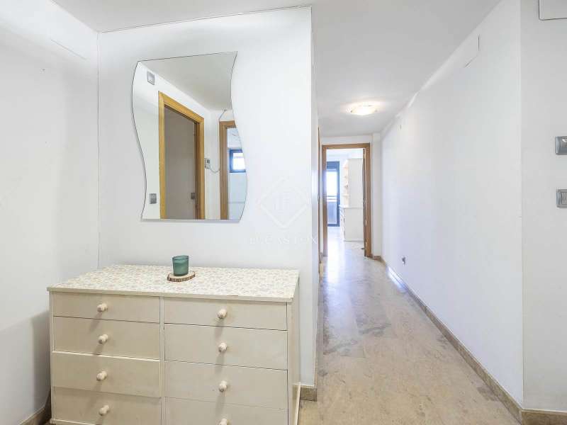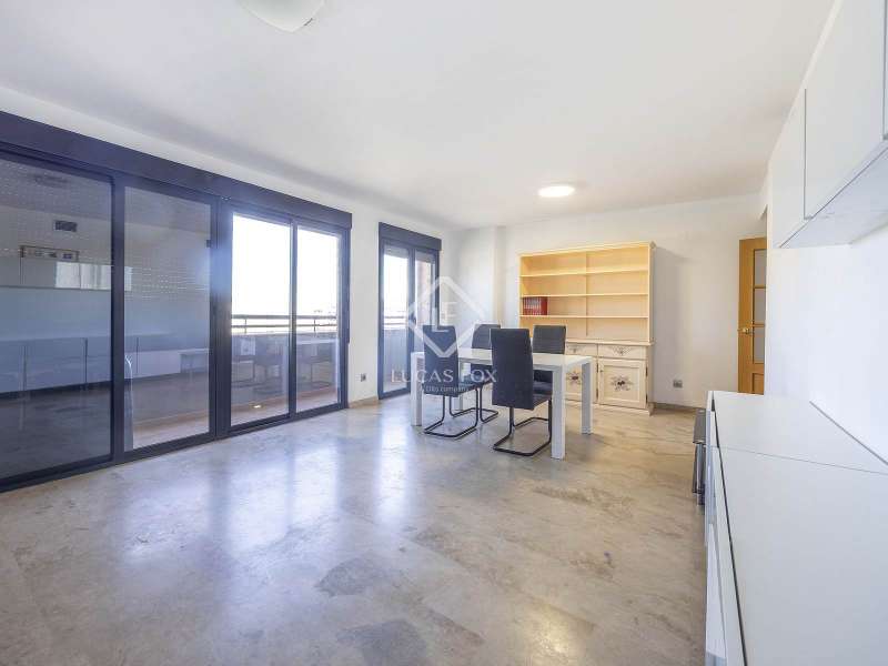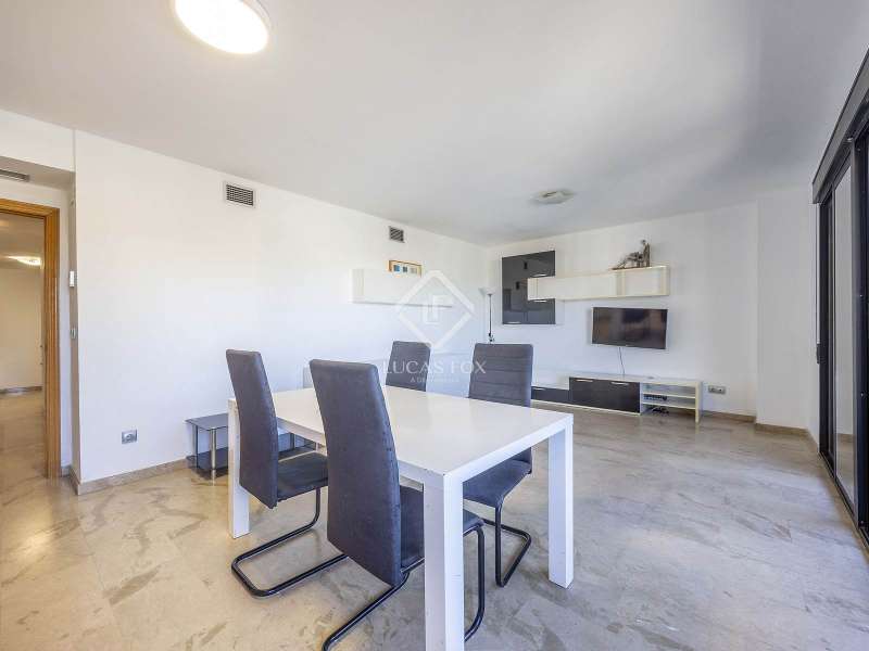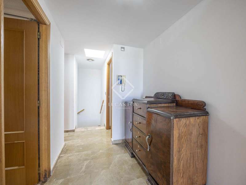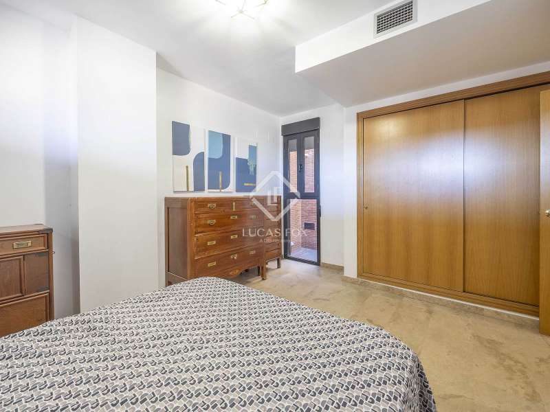 This excellent duplex penthouse is for sale in a residential complex with swimming pool, children's playground and doorman in one of the most modern and sought-after areas of Valencia. It is located opposite the Aqua shopping centre and El Corte Inglés, and just a few steps from the City of Arts and Sciences. The property is accessed through the main floor, where there is a large and bright living-dining room with modern furnishings and access to a balcony. Next to it is a good-sized kitchen with space for a family-sized breakfast table. This floor also has a double bedroom, a bathroom and a gallery next to the kitchen. The second floor offers the master bedroom with private bathroom, 2 single bedrooms with access to the striking sunny terrace, measuring around 25 m², and another bathroom. All bedrooms have fitted wardrobes, and the apartment has hot/cold air conditioning throughout and ivory-coloured marble floors. In addition, the price includes a parking space in the same building. In short, this is a fantastic home that is ideal for a family thanks to its size, location and excellent residential facilities.