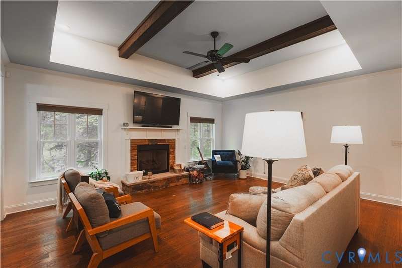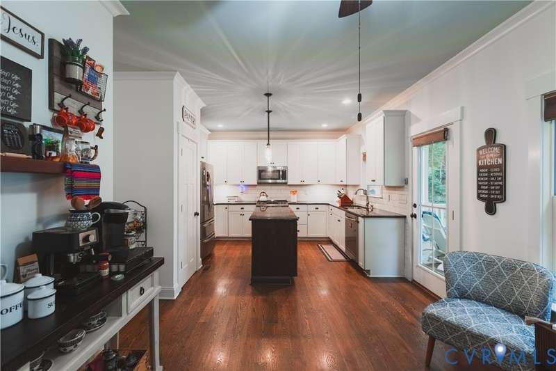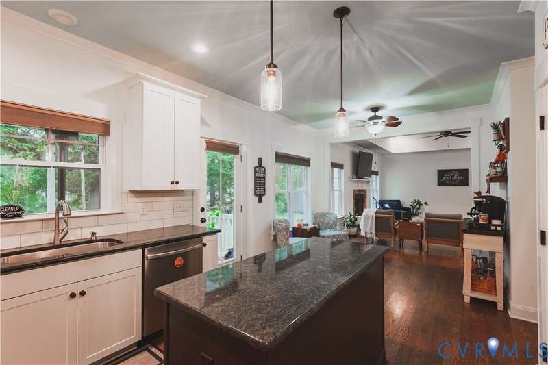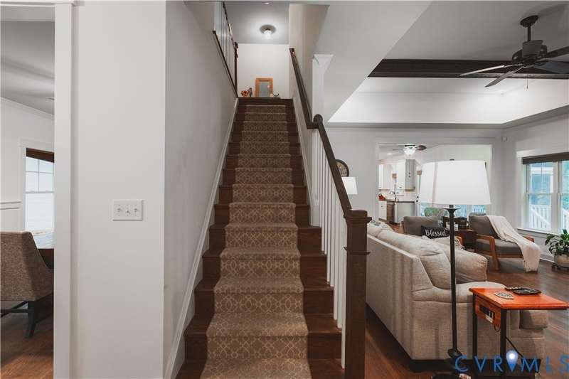 A Danrich custom built home! Beautiful waterfront views! First floor primary! Open concept and gorgeous wood floors! This home is a must see! A one of a kind craftsman style home in this community with a full front porch and wood front door. Walk in to a spacious foyer and formal dining area or flex space for an extra sitting room. The living room has a tray ceiling and wood beams, open to the kitchen with SS appliances, gas cooking, granite countertops and subway tile backsplash. Down the hall is the half bath and laundry room. The first floor primary bedroom features a walk-in closet and private ensuite with a separate soaking tub and walk-in shower. There are 3 spacious bedrooms and a full bathroom upstairs, along with 2 separate, large walk-in attic spaces that could possibly be finished off to add more living space. Out back you can relax on the screen porch, overlooking the lake. Welcome home!