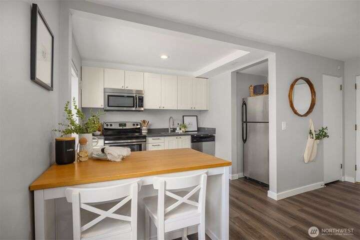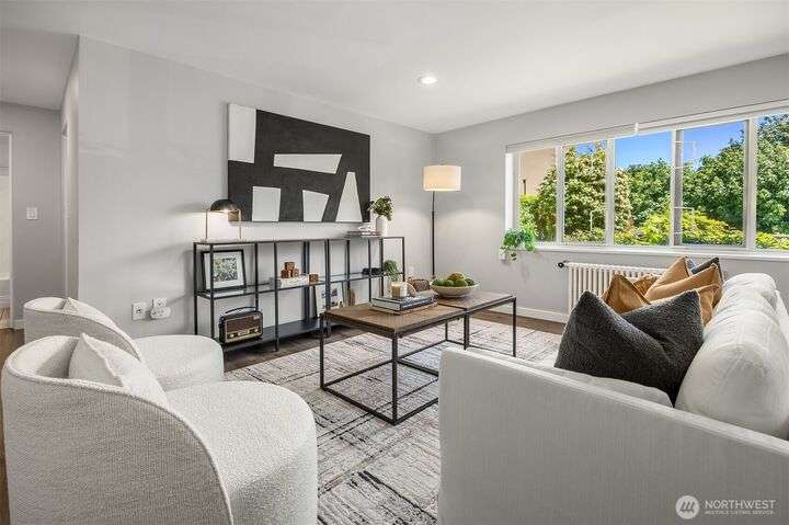 Be a part of the city scene while living in both peace & privacy tucked away on a quiet, dead-end street. This ground level 1 bed/1 full bath condo has an abundance of natural light & views of well-maintained lush green grounds. Bedroom has space for a home office/flex area. Thoughtful & modern updates include - white cabinets, cool tone quartz countertops & shiny fixtures. Complete w/ newer floors & fresh paint so you can move right in! Enjoy living in this cute pocket of quintessential East Queen Anee neighborhood & being within minutes from SLU - Amazon, Facebook, Google & Downtown. A commuter's dream & has investment value w/ no rental cap! Stroll down local trails to Trolley Hill Park, Maclean Park, or around Lake Union!