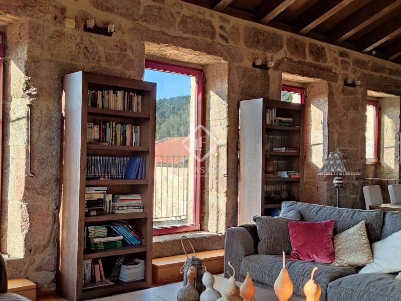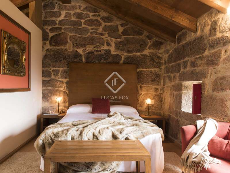 The property is completely private, tranquil and peaceful, overlooking the valley towards the Portuguese border and the mountains. It includes a little over 1 hectare of private land, a large Galician stately stone home and two small stone cottages. Dating back to 1880, the original building was restored respectfully, preserving the original walls and stone enclosures and unique elements such as the magnificent "Lareira" (All stone fireplace in Galician) and its exterior patios. It consists of a set of buildings around a courtyard forming an L shape on its north and east sides, and in the south, there are two small stone cottages. The main home is an excellent example of the architecture of the area, unique in its structure with large blocks of granite masonry stone. The entrance hall welcomes us with a bright inner patio that connects to all levels of the home. This area links to the common spaces for the sleeping section and the living areas. We find the grand lounge with its large all-stone fireplace and ceiling height of almost 5 metres on the main level. This area links to the dining room, with a gallery overlooking the valley and offering stunning views. One exit leads to the south terrace, connecting the two small cottages, the wine bar and the cellar. Another entry leads towards the east section of the home, with access to the garden. On this level, we will find four ensuite bedrooms. A staircase leads to the first floor, in which there is a living room, a library and a bedroom with a bathroom overlooking the valley. On this same level, on the north side of the house, is an independent apartment with two bedrooms and two bathrooms, a living room and office area and a private terrace overlooking the valley. We find the common area for in-house staff and kitchen on the ground floor. There is a large kitchen, a pantry room and an ensuite bedroom with its entrance. This section offers an exit towards the east of the property garden and exterior porch. The two stone cottages offer two additional ensuite bedrooms for guests with an independent entrance, a wine bar and a cellar. Outside we have the garden section with lovely chill-out areas, the pool section for entertaining and dirt paths that lead to the private forest. Suitable property for large families looking for a unique property in the inner section of Galicia, investors or entrepreneurs looking to purchase this property and maintain it into a small boutique hotel (currently in place) or various families looking to invest in it a timeshare purpose.