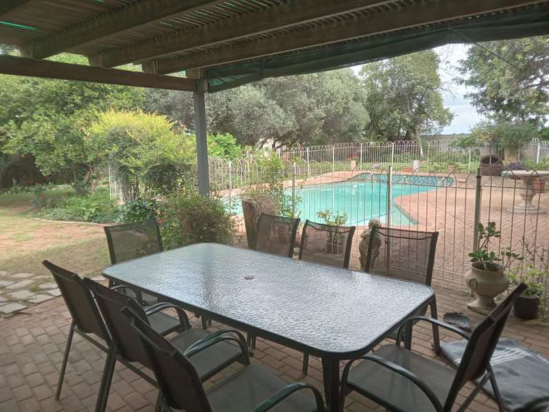 Charming 4-Bedroom Farm with Exceptional Amenities – A Perfect Blend of Comfort and Country Living Welcome to this expansive and well-appointed 4-bedroom farmstead, offering the perfect blend of rural tranquility and modern convenience. Set on generous grounds, this property is ideal for family living, entertaining, and even potential income opportunities. The main house features four spacious bedrooms, including a master suite with a private en suite bathroom. Two additional bathrooms service the remaining bedrooms, ensuring comfort for the whole family. The heart of the home includes a well-equipped kitchen, a cozy lounge, a formal dining area, and a dedicated entertainment space—perfect for hosting guests or enjoying quiet evenings. For the working professional or hobbyist, there's a private office, a large workshop shed, and a separate garden shed for tools and equipment. A double garage with automated doors adds convenience and security. Additional buildings include a generous storage structure with the potential to convert into a flat or guest accommodation, plus two backrooms complete with a shared toilet and shower—ideal for staff quarters or extended family stays. Outdoors, enjoy the sparkling swimming pool and a covered entertainment area, ideal for relaxing on summer days. The property also includes a borehole with eight water tanks, a dedicated household water tank, and two dog kennels, supporting a self-sufficient lifestyle. This versatile and well-maintained property offers everything you need for comfortable farm living with ample space to grow and create your dream rural lifestyle.