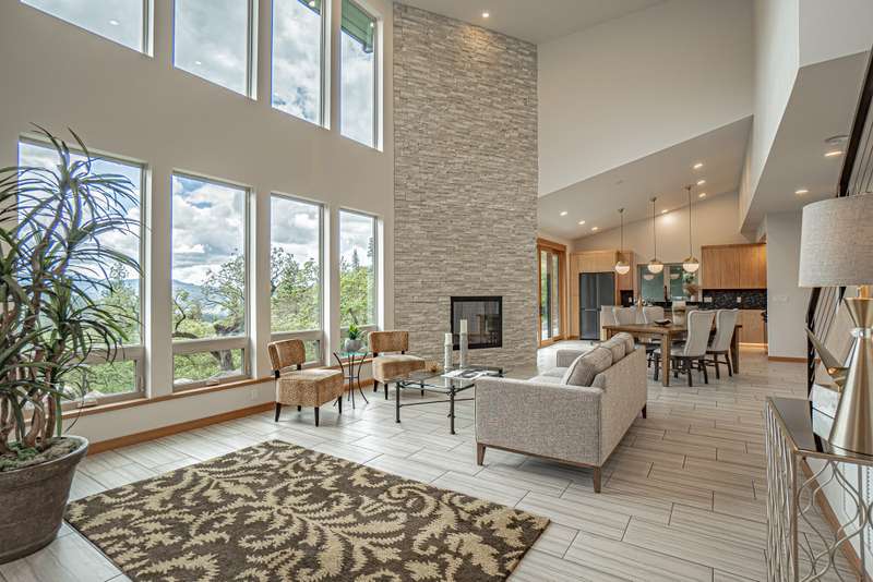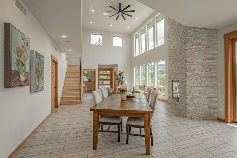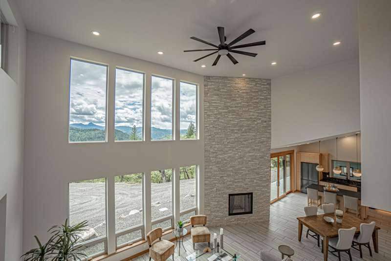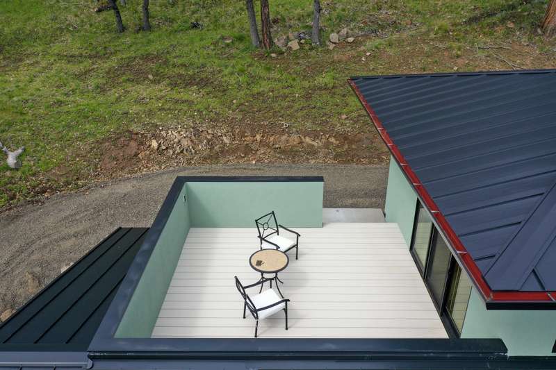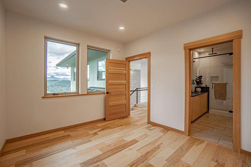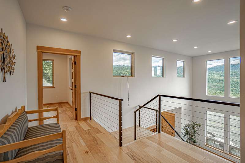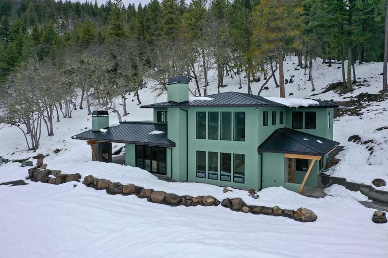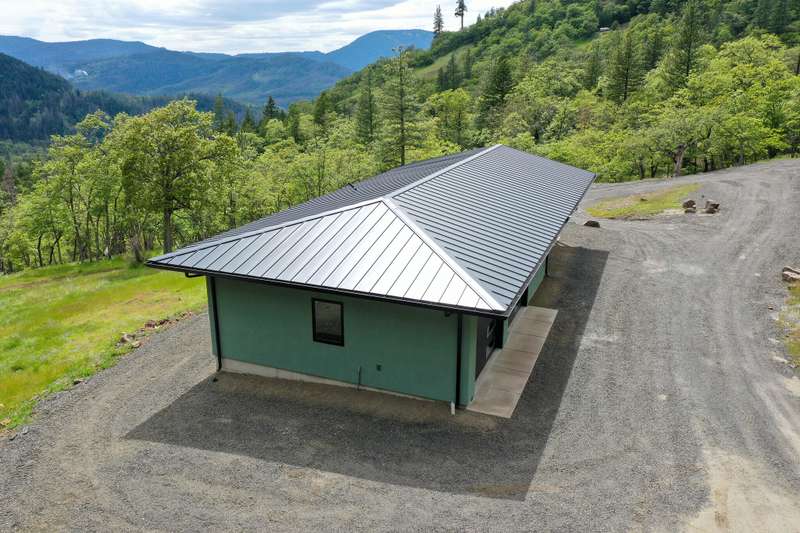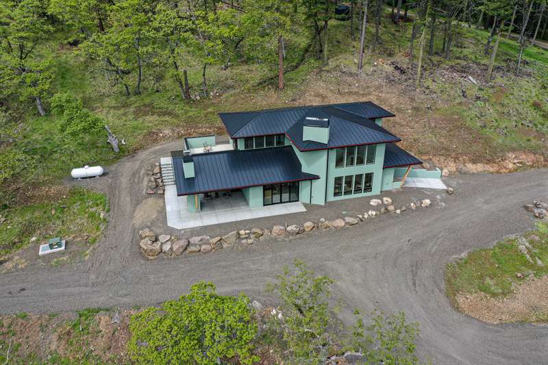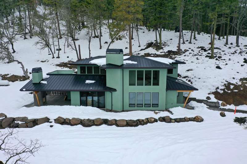 Stunning new contemporary home with mountain views on 20+ private acres! Interior highlights include natural hickory and maple hardwood floors and steps; porcelain tile in kitchen, bathrooms and great room, granite counter tops, washer and dryer in upstairs primary bedroom closet and connections for a second set up downstairs, windows wired for electric blinds or shades, beautiful stone fireplace all the way to the ceiling, all Dacor appliances. The exterior has stucco siding, and a metal roof on both the main house and detached garage. The oversized garage has enough space for 2 cars plus a shop area with ample lighting, EV charging outlet, and a heated full bathroom. The garage also has an attached 2 car carport. The covered patio boasts an outdoor fireplace and the upstairs balcony off of the primary bedroom is a perfect place to accommodate a hot tub and enjoy the views. There is also a 200 amp service to the home and an additional 200 amp service for future construction.