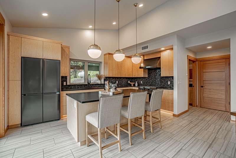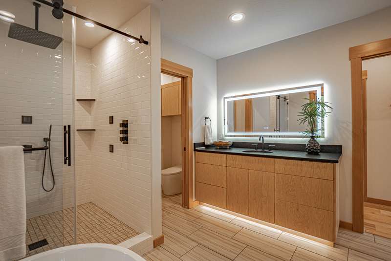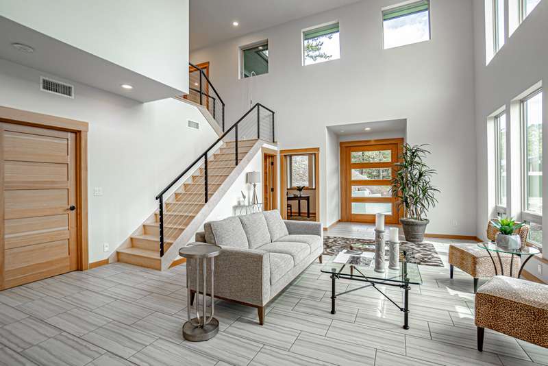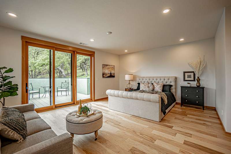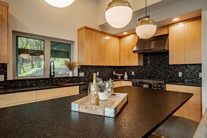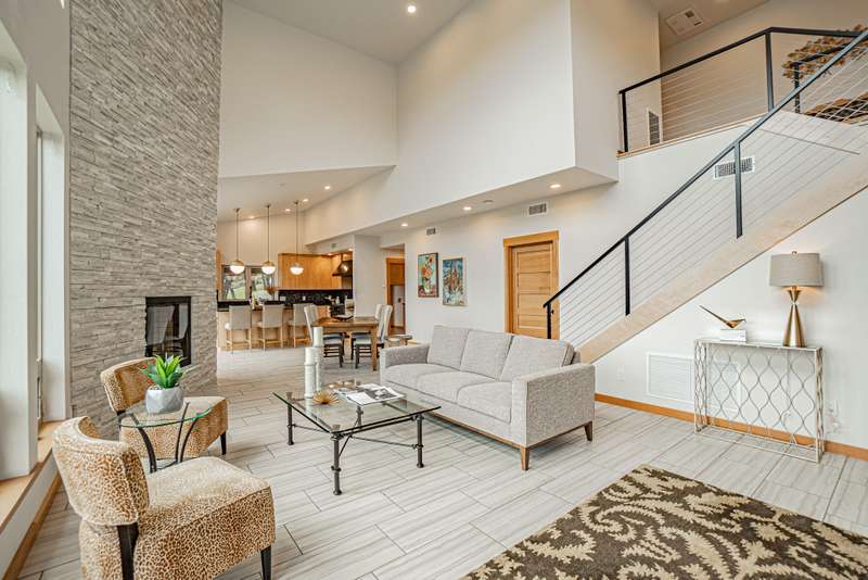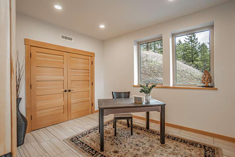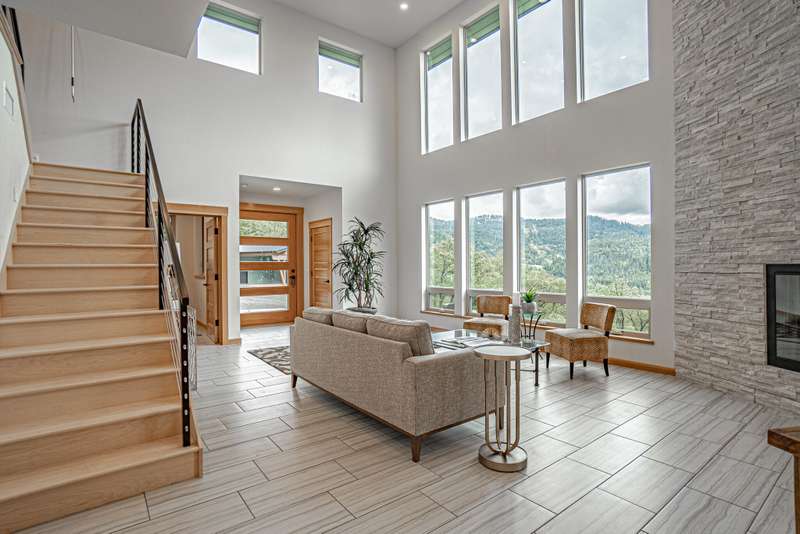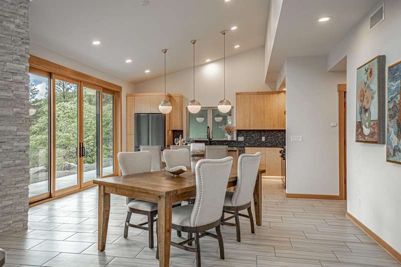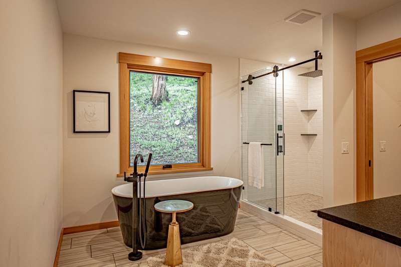 Stunning new contemporary home with mountain views on 20+ private acres! Interior highlights include natural hickory and maple hardwood floors and steps; porcelain tile in kitchen, bathrooms and great room, granite counter tops, washer and dryer in upstairs primary bedroom closet and connections for a second set up downstairs, windows wired for electric blinds or shades, beautiful stone fireplace all the way to the ceiling, all Dacor appliances. The exterior has stucco siding, and a metal roof on both the main house and detached garage. The oversized garage has enough space for 2 cars plus a shop area with ample lighting, EV charging outlet, and a heated full bathroom. The garage also has an attached 2 car carport. The covered patio boasts an outdoor fireplace and the upstairs balcony off of the primary bedroom is a perfect place to accommodate a hot tub and enjoy the views. There is also a 200 amp service to the home and an additional 200 amp service for future construction.