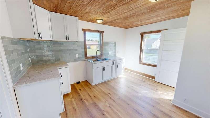 Step into a world of endless possibilities in this beautifully renovated home. Sunlight cascades through large windows, illuminating the perfect canvas for your life's masterpiece. The kitchen, a true culinary haven, boasts sleek white cabinetry, modern appliances, and a stunning wood-paneled ceiling that adds warmth and character. Plush carpeting in the bedrooms ensures comfort, while the bathroom's elegant tile work and rustic wood accents create a spa-like retreat. With multiple levels connected by charming staircases, this home offers both space and intimacy. Here, every day feels like an opportunity to live your best life.