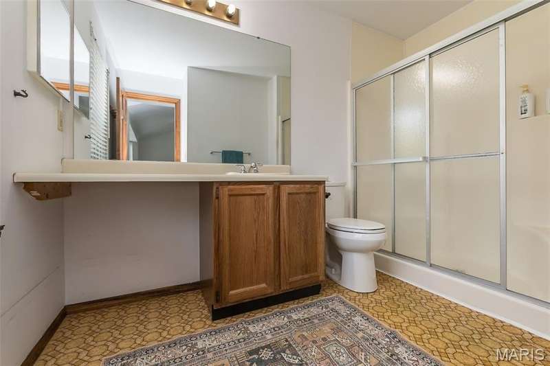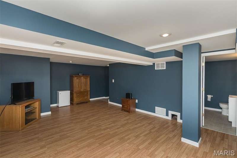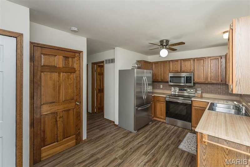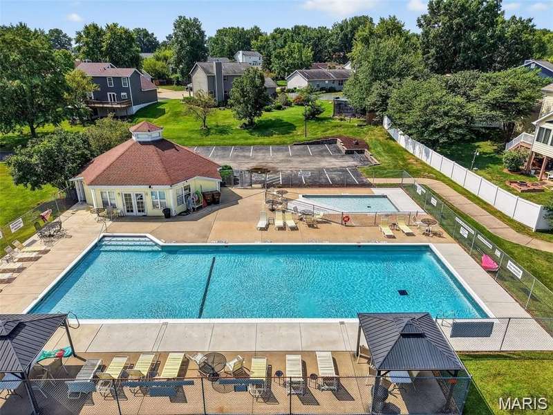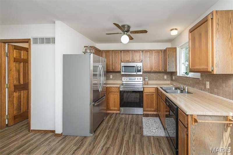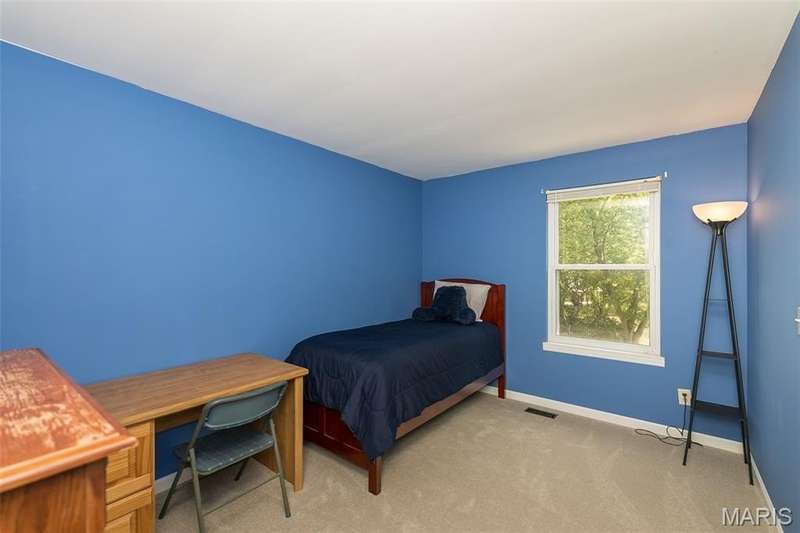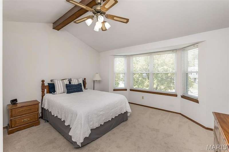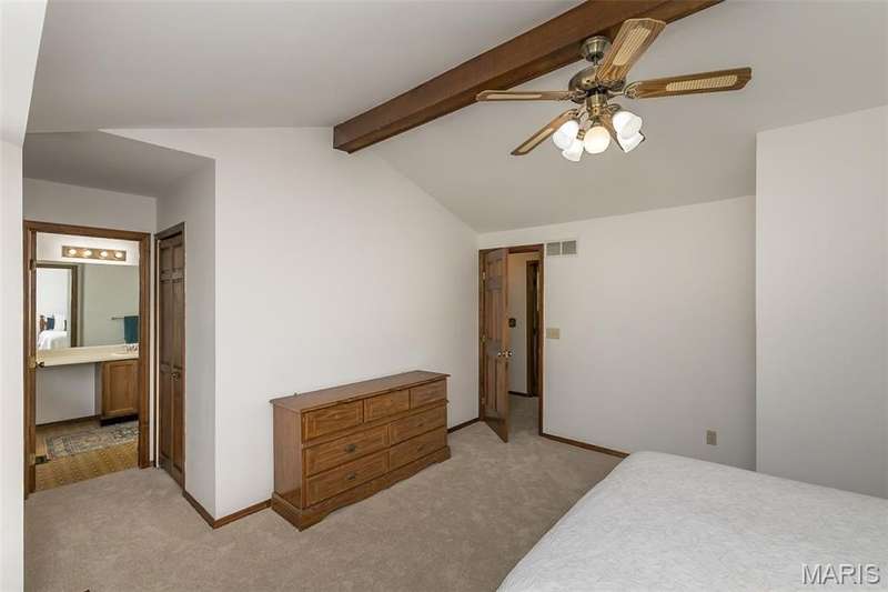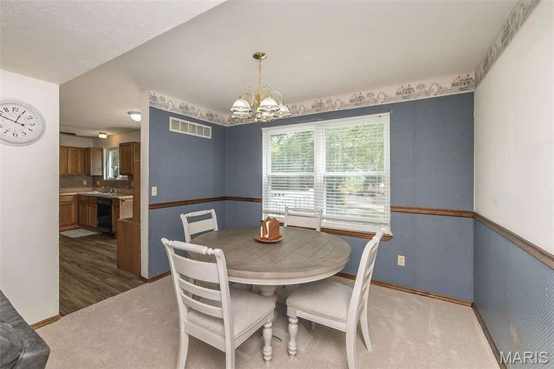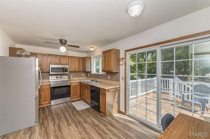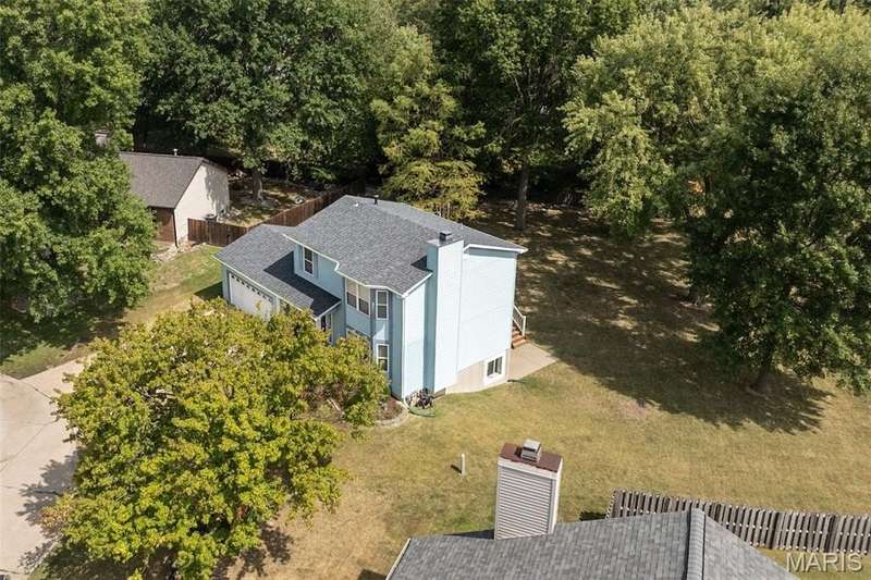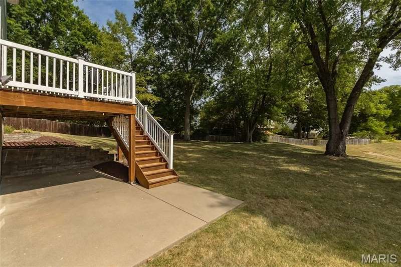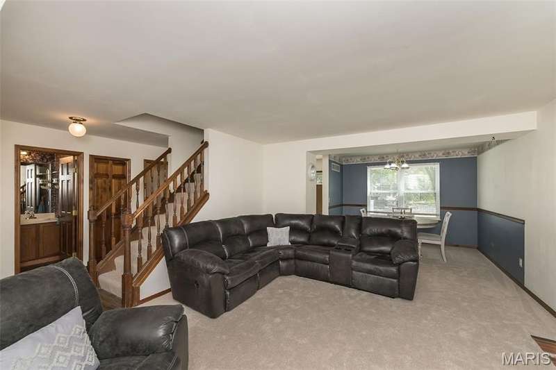 Welcome to this lovingly maintained 2-story gem in the heart of St. Peters! Nestled at the end of a quiet cul-de-sac in a desirable neighborhood with pool access and top-rated schools, this home has been cared for by the same owners for nearly 30 years, and it shows. Situated on a spectacular 0.3+ acre lot backing to peaceful common ground, the setting offers both privacy and space to enjoy the outdoors. Step inside to discover new flooring throughout — luxury vinyl plank on the main level and plush new carpet upstairs. The inviting family room features a cozy wood-burning fireplace and bay window, while kitchen shines with stainless steel appliances, tile backsplash, pantry, and sliding door that opens to the deck overlooking the yard. Upstairs, the vaulted primary suite offers a relaxing retreat, and additional bay windows fill the home with natural light. The walkout lower level expands your living space with a half bath and easy access to the patio. Additional updates include newer windows and doors, HVAC system, garage door and opener, plus an architectural roof. The finished 2-car garage with service door, handy outbuilding/shed, and beautifully landscaped yard complete this move-in ready home. Enjoy comfort, character, and convenience—all in one perfect St. Peters location!