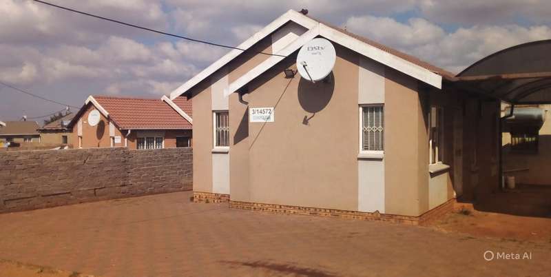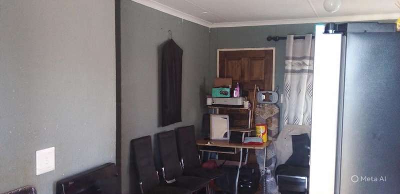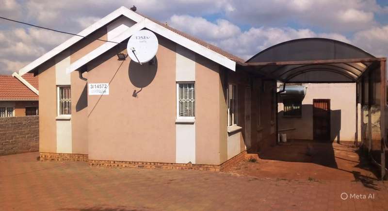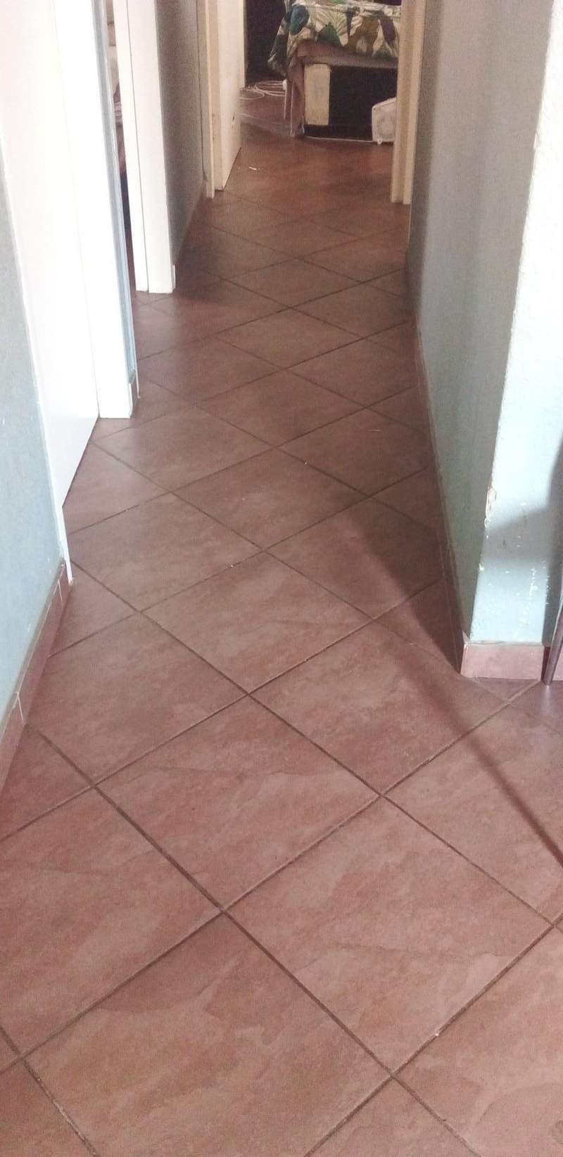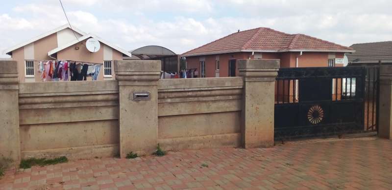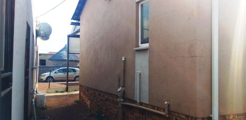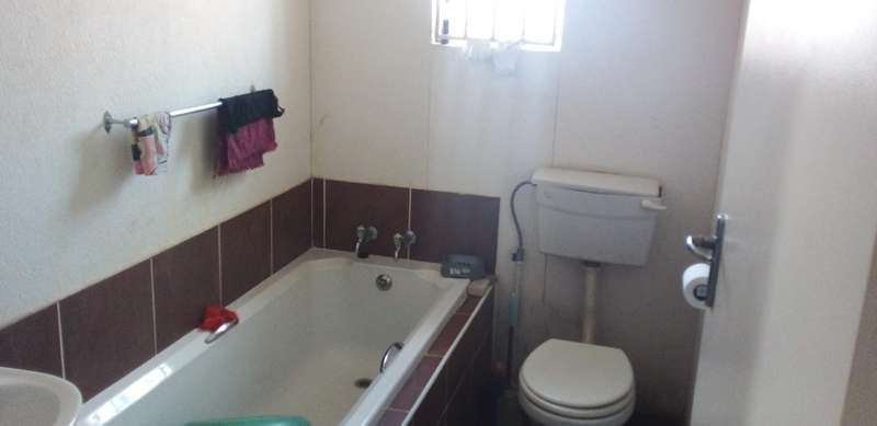 - Open plan kitchen and lounge. Bathroom with bath, toilet and basin. - Three bedrooms - no built in cupboards. - Main bedroom with en-suite, shower and basin. - Three flat-lets - each with shower, toilet & basin. - Carport covering 2 cars - Burglar bars on all doors and windows - Tiled flooring throughout - Paving a third of the yard except by the washing line.