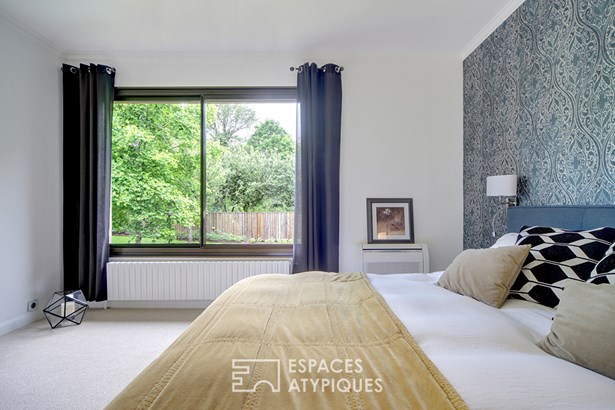 114 km from Paris and just 3 minutes by car from Montargis train station, this architect-designed villa of 310 sqm stands on land of more than 2200m2, in the quiet of a cul-de-sac with a view of the forest.